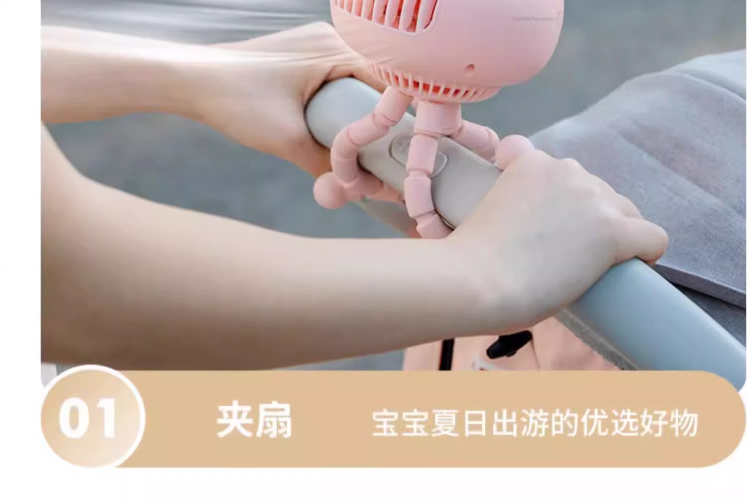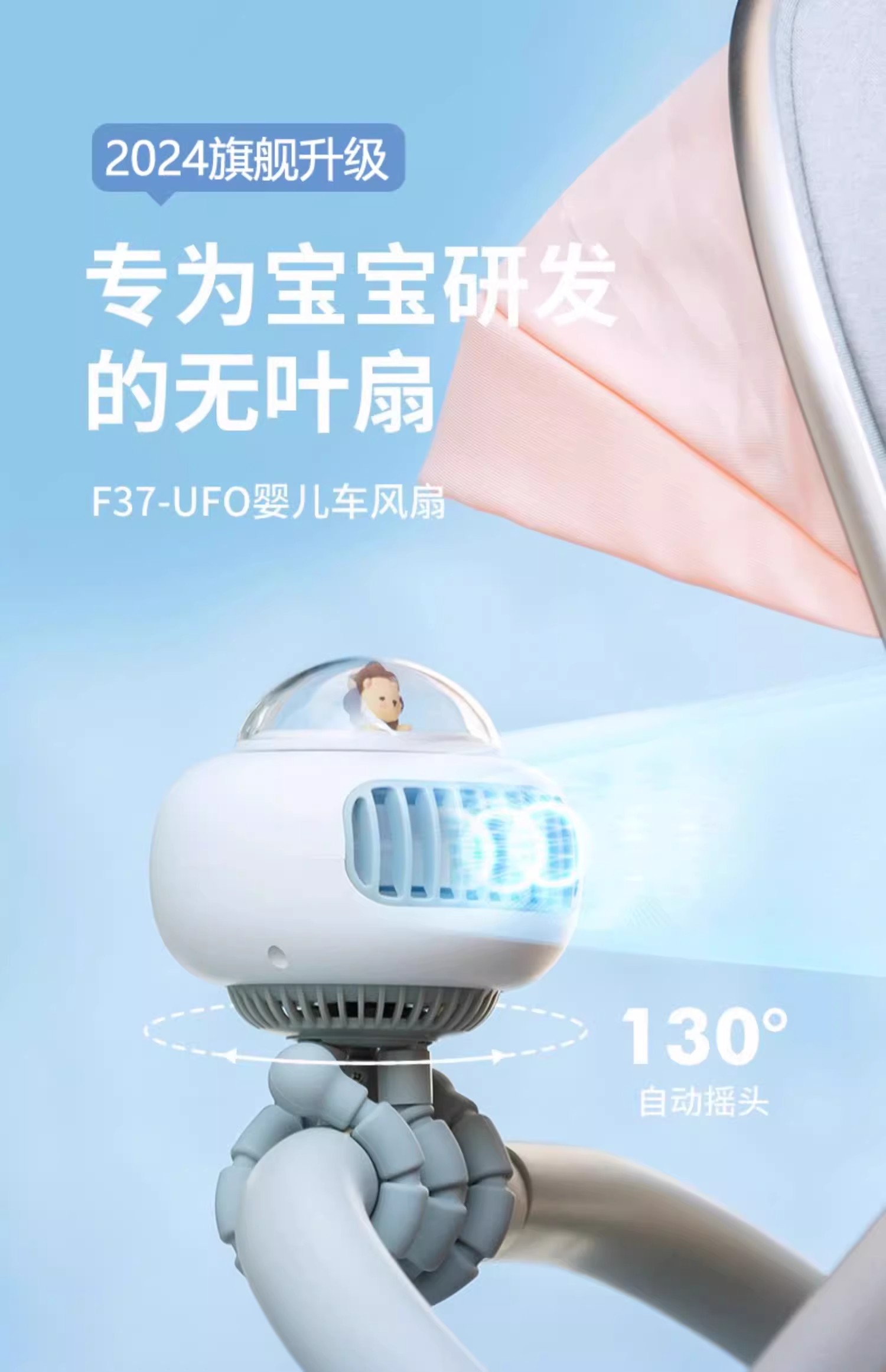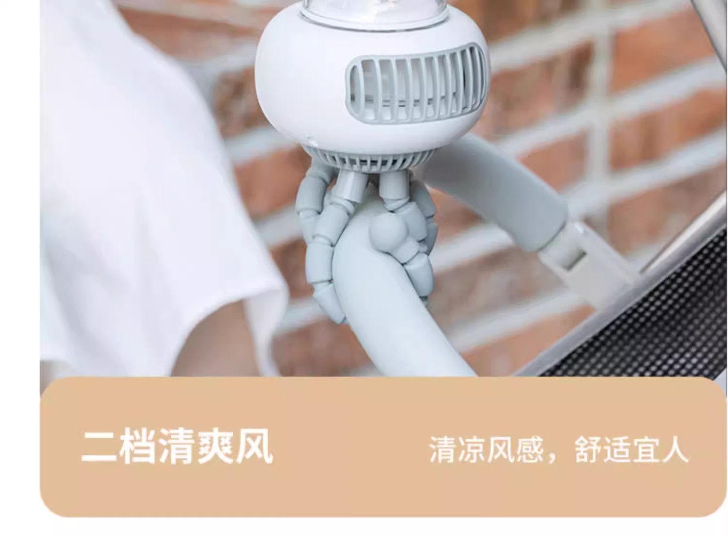 【溜娃!防夹手专用电风扇】婴儿车小风扇八爪鱼,无叶可摇头宝宝bb手推车电扇,儿童静音充电水母随身便携式-QA