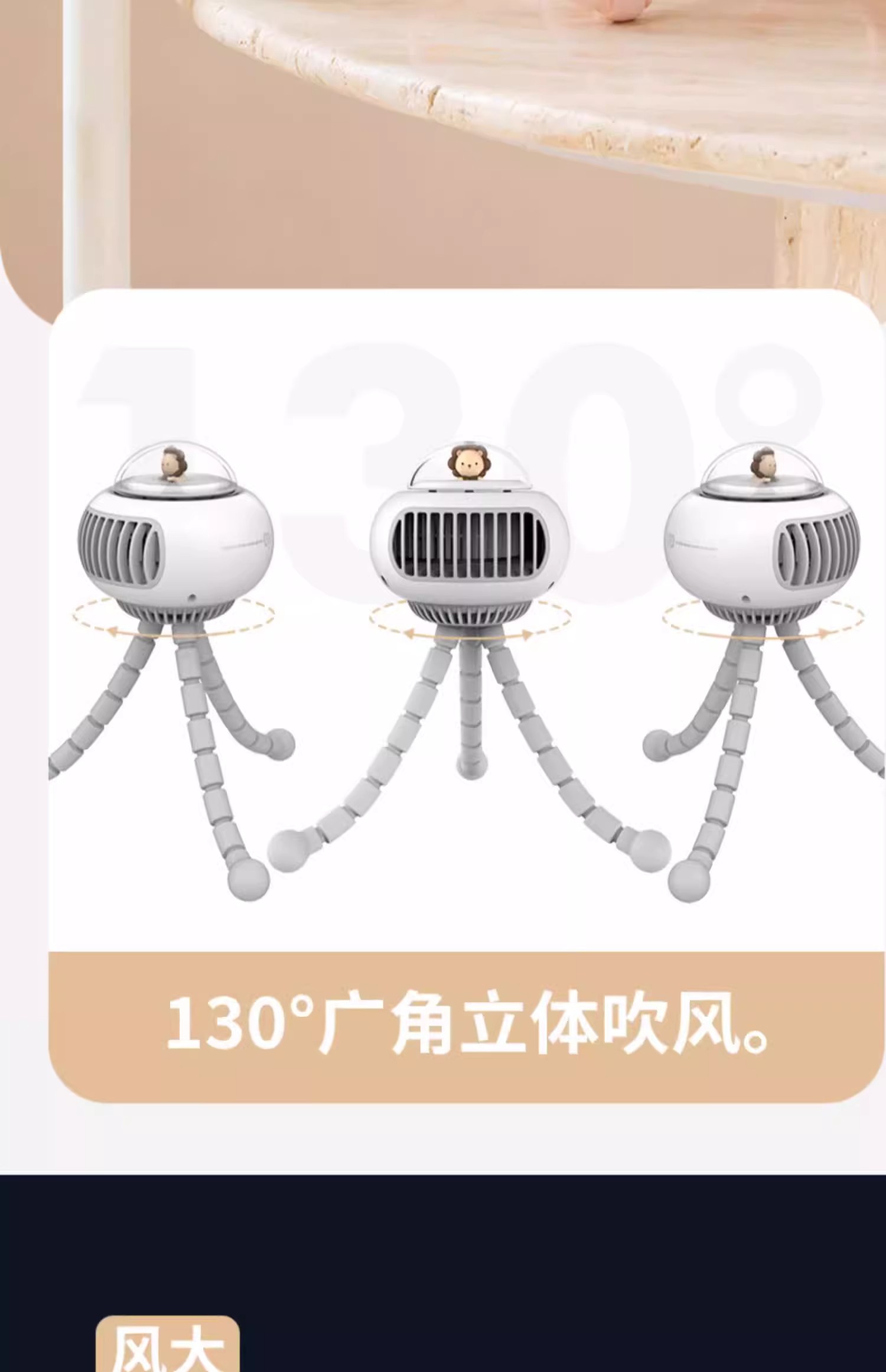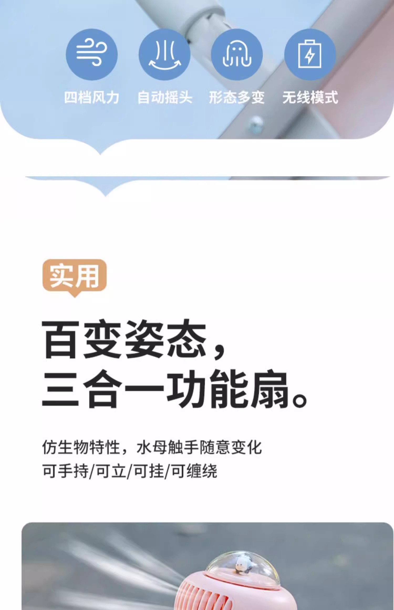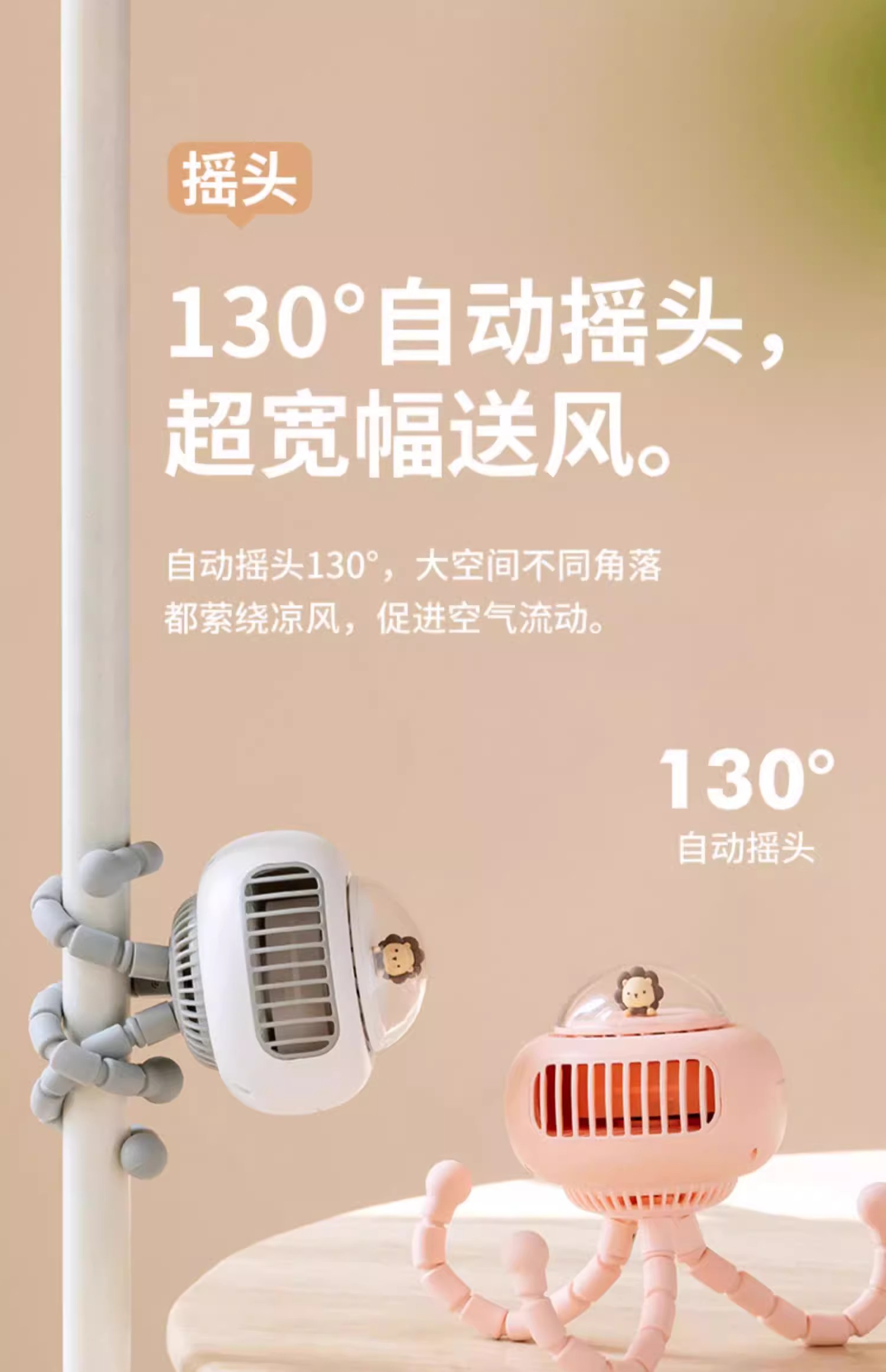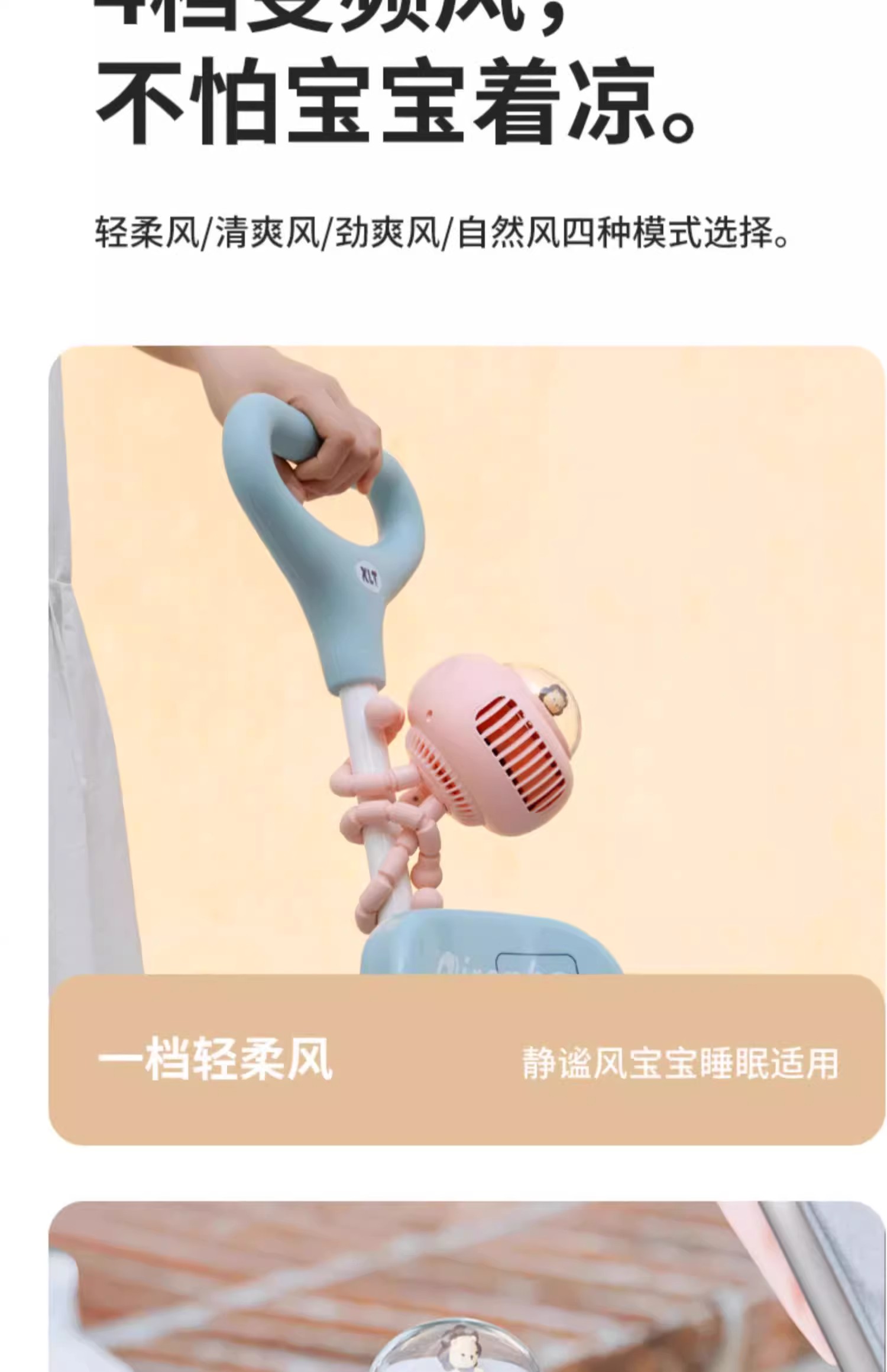【溜娃!防夹手专用电风扇】婴儿车小风扇八爪鱼,无叶可摇头宝宝bb手推车电扇,儿童静音充电水母随身便携式-QA