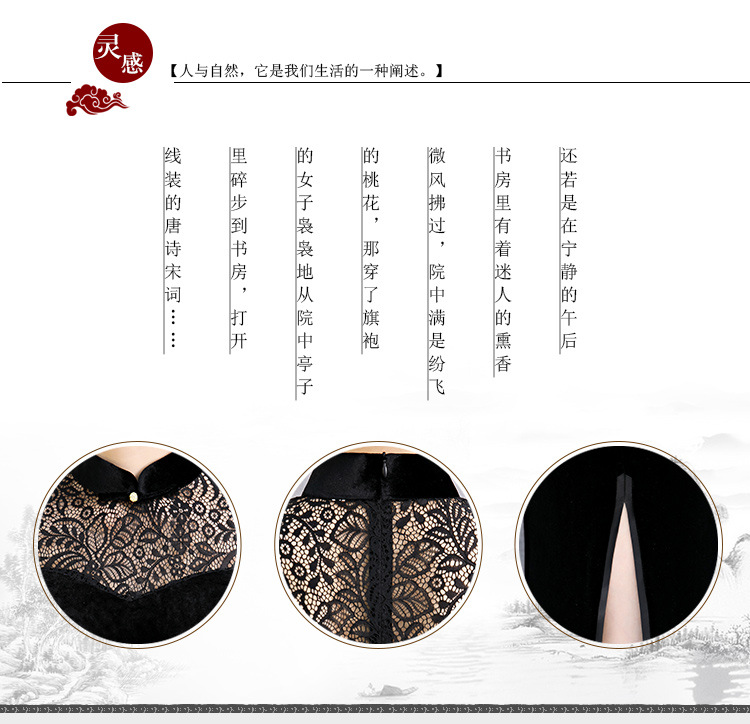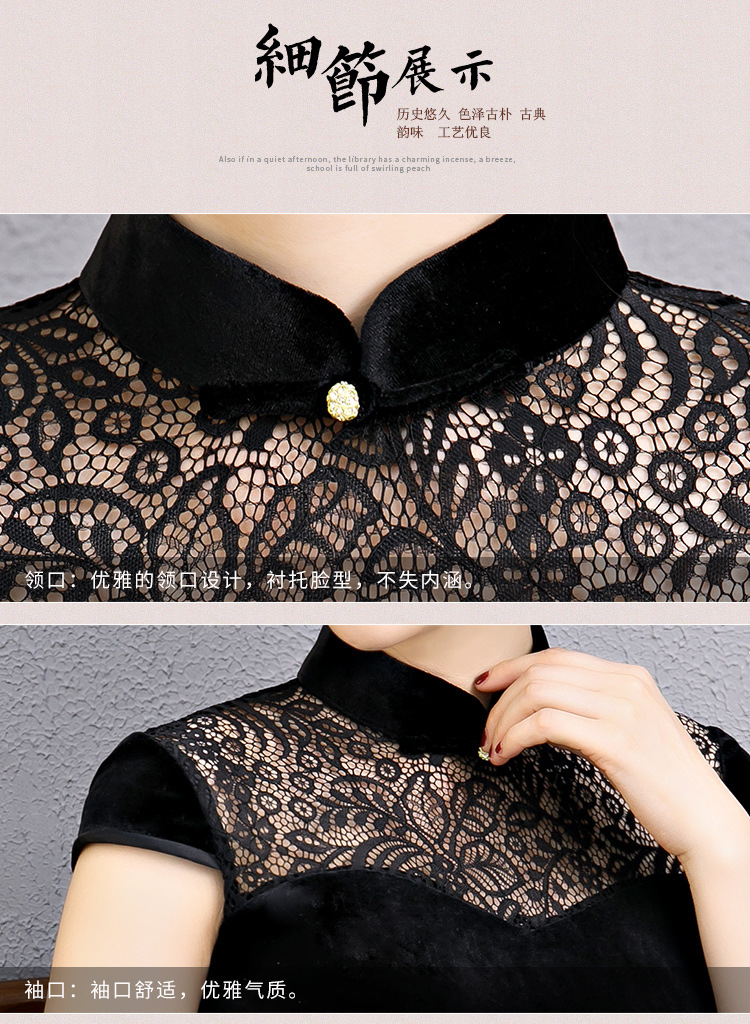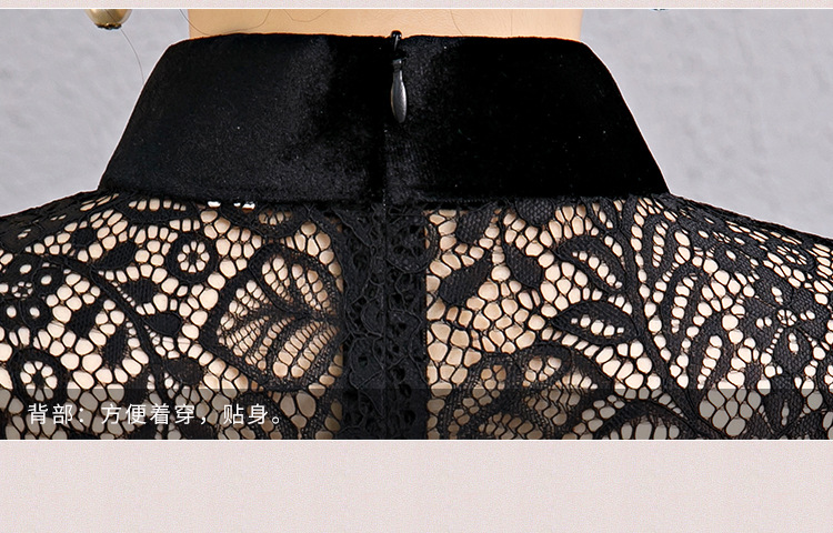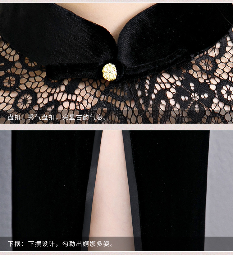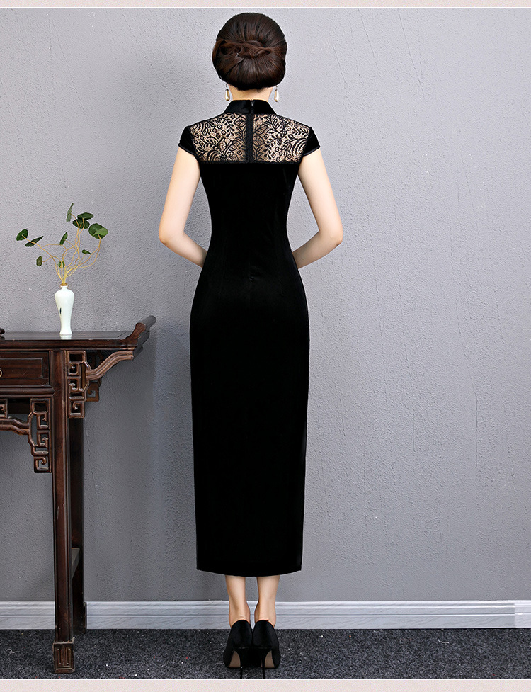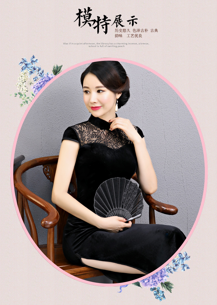 上海旗袍厂BJ-180197新款改良旗袍 长款高开衩复古镂空丝绒旗袍连衣裙