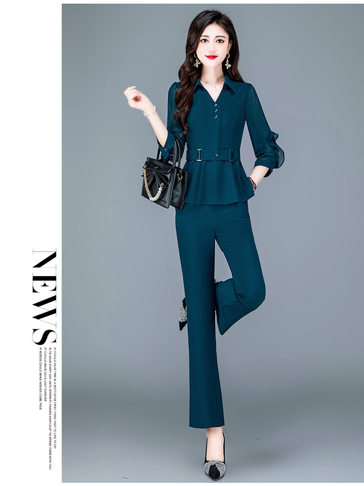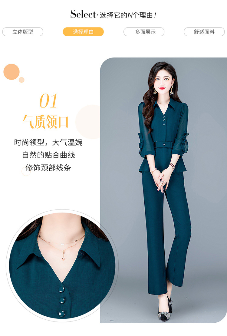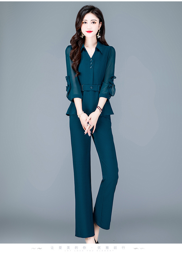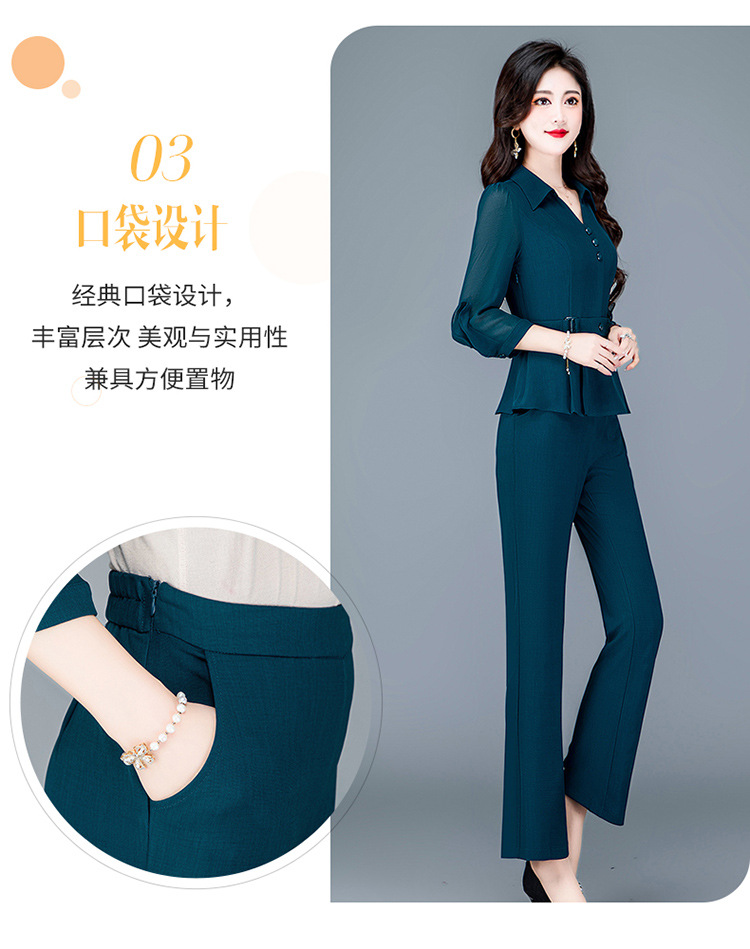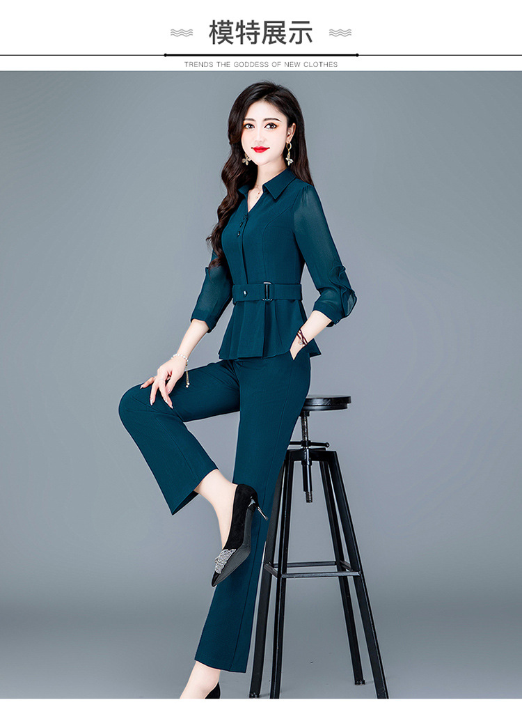 QYMTYH-236067-Y职业女装两件套春夏七分袖收腰打底衫长款直筒裤时尚新款套装女