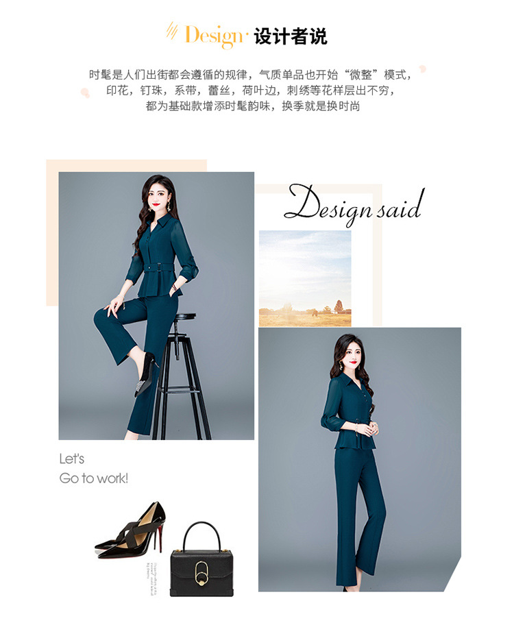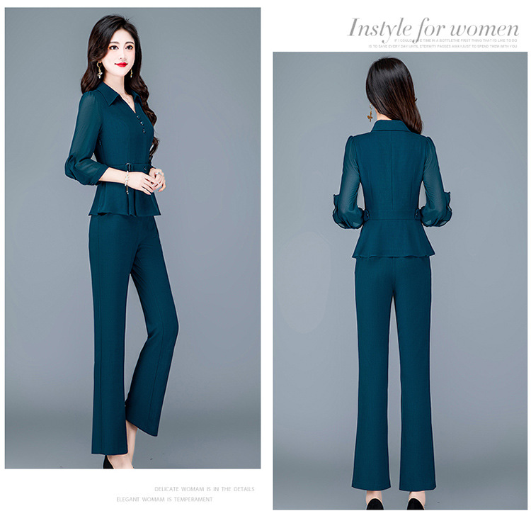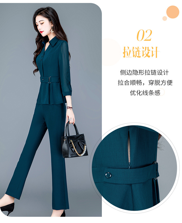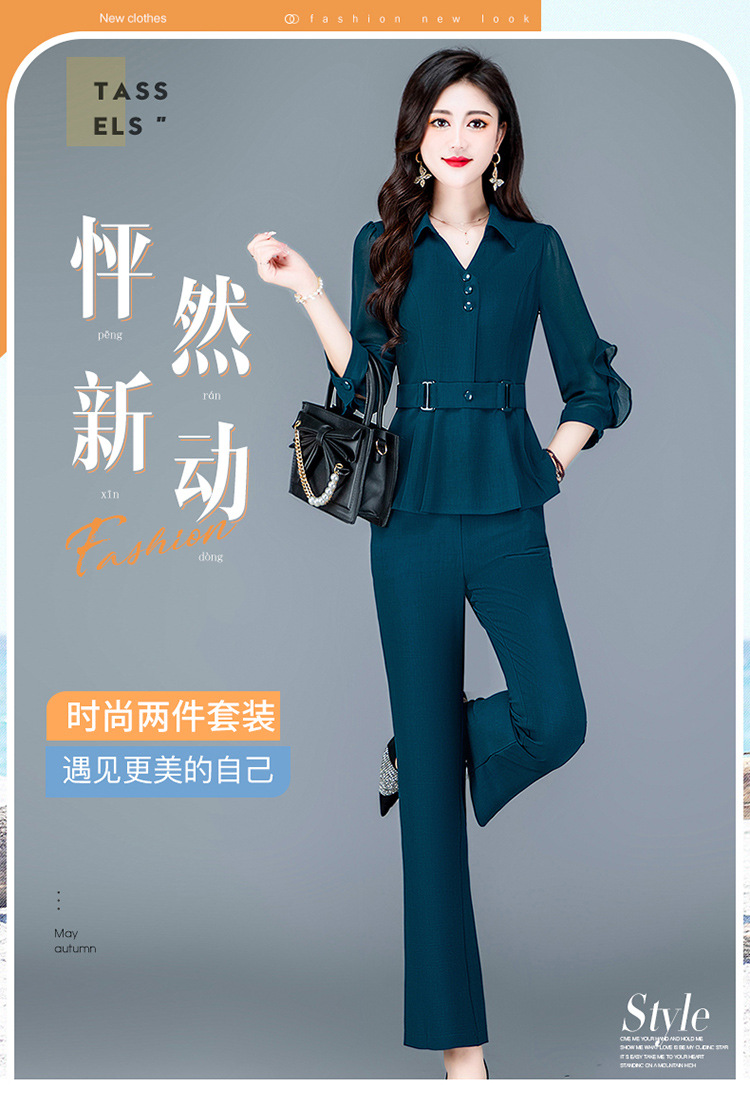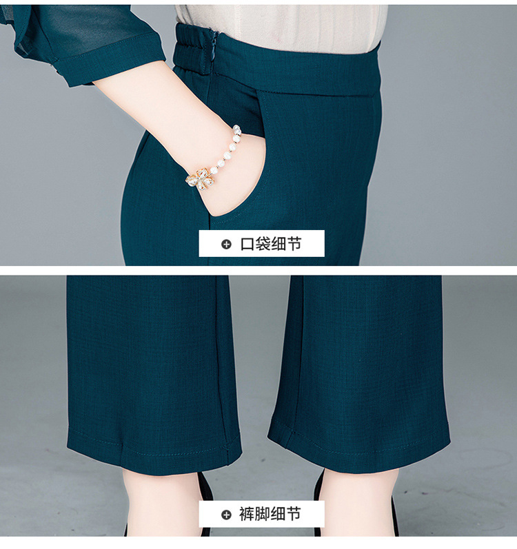 QYMTYH-236067-Y职业女装两件套春夏七分袖收腰打底衫长款直筒裤时尚新款套装女