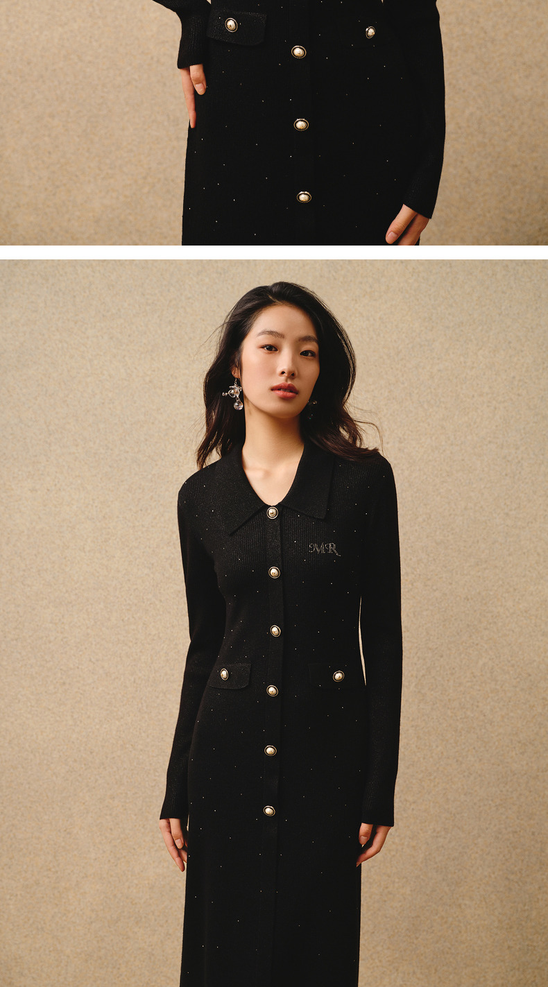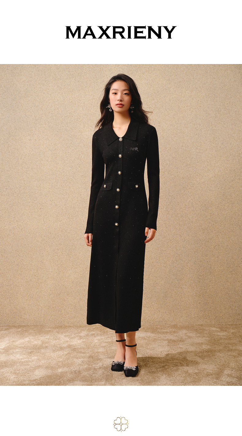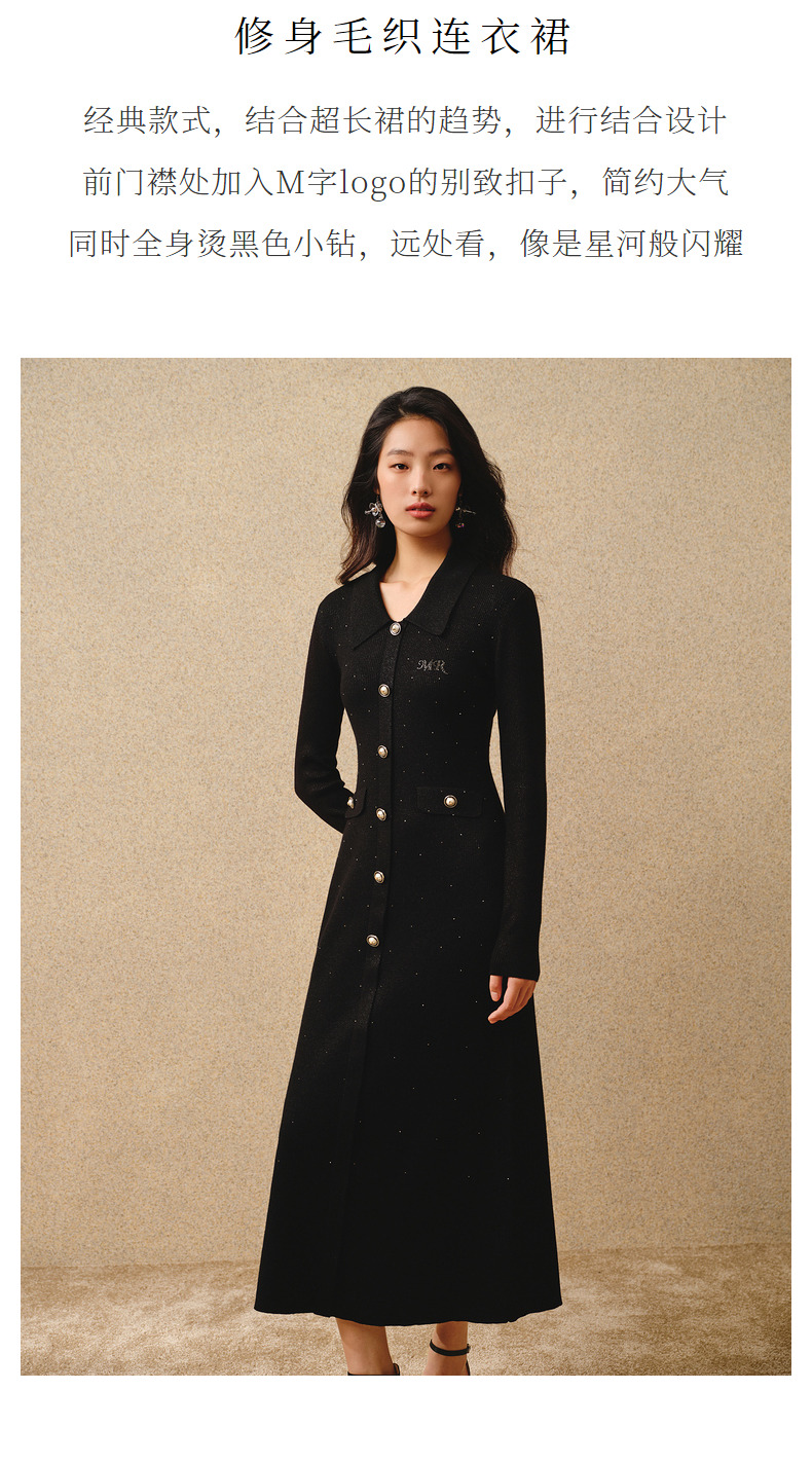 MAXRIENY*复古感毛织连衣裙秋冬羊毛针织长裙(货号:MS88DR763)