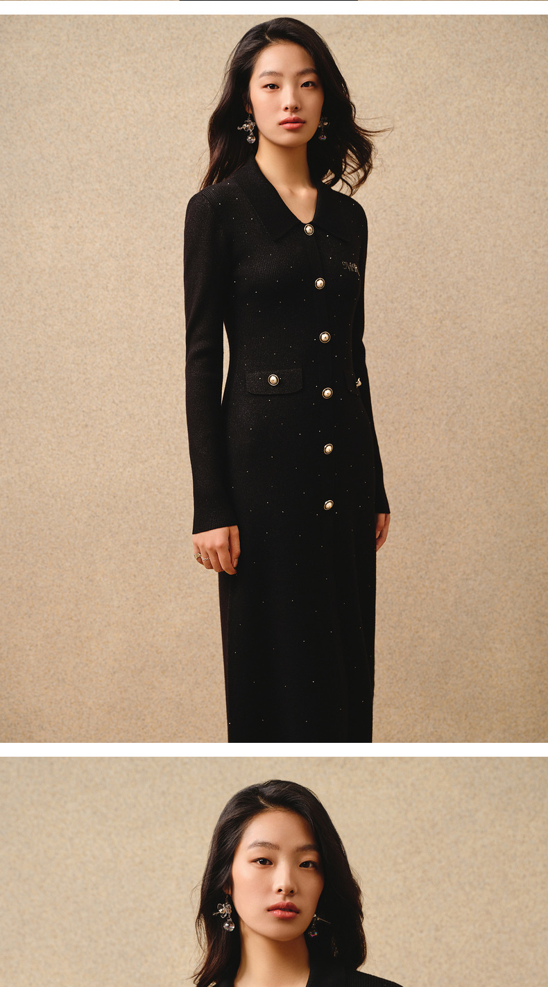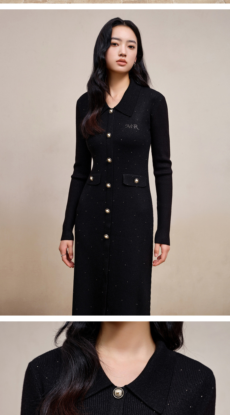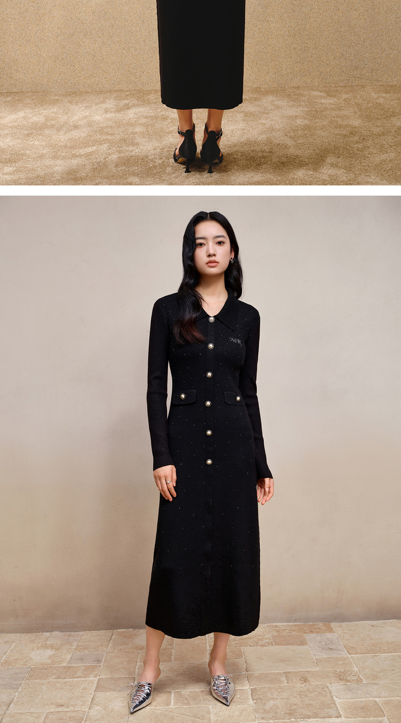 MAXRIENY*复古感毛织连衣裙秋冬羊毛针织长裙(货号:MS88DR763)