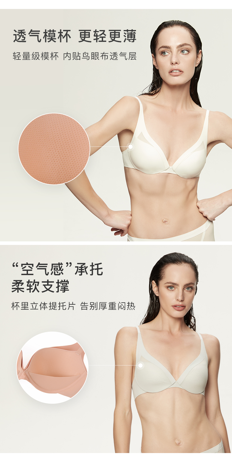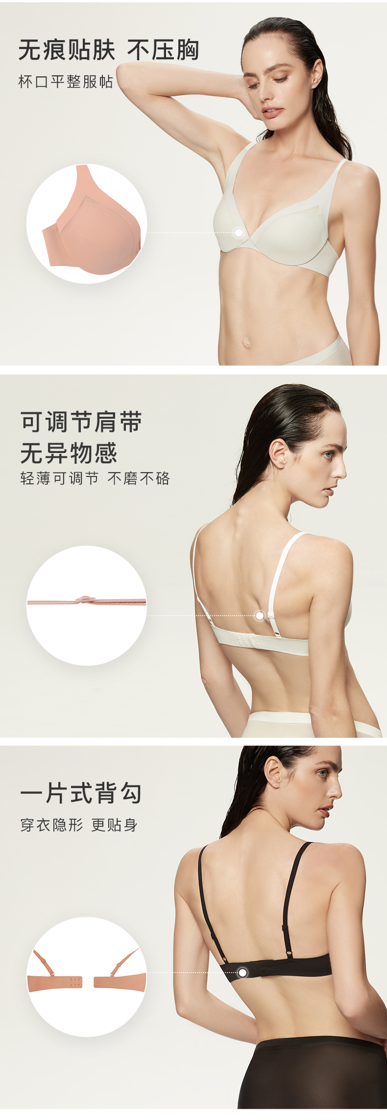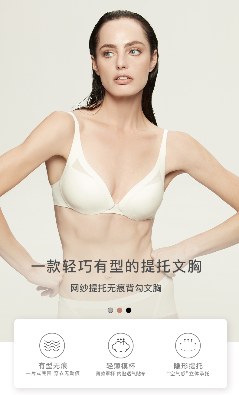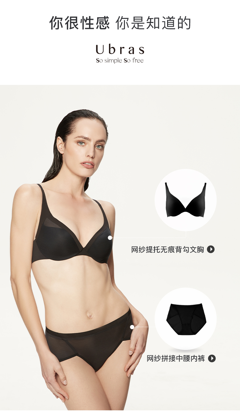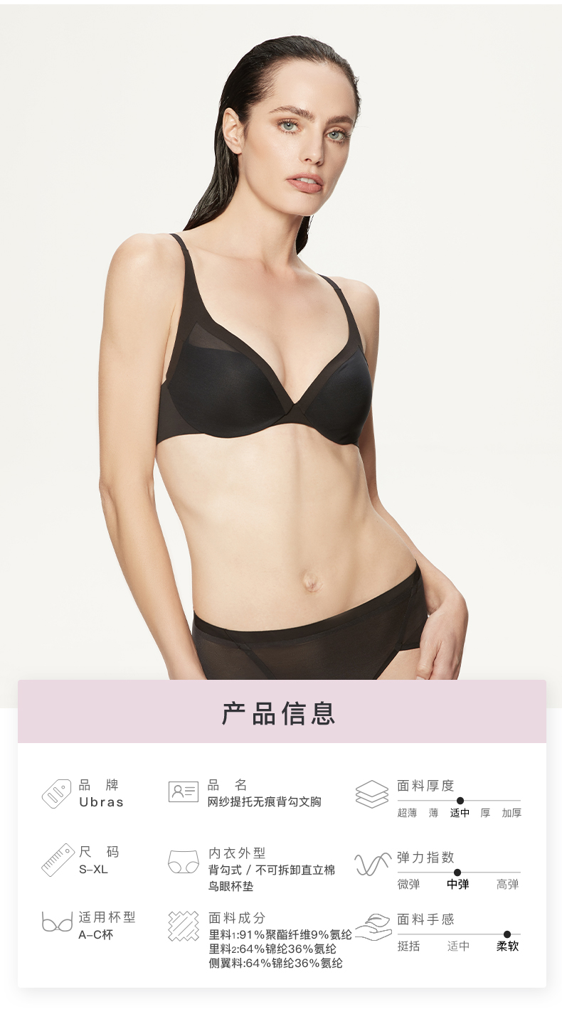 Ubras网纱提托无痕背勾文胸内衣女无钢圈胸罩无痕透气美背文胸