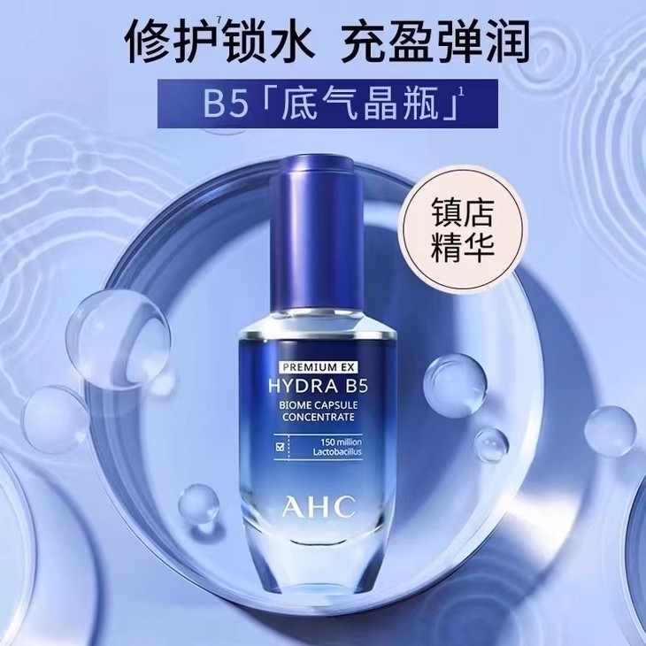 👑AHC透明质酸B5精华30ml 23版 👍全新的AHC B5底气晶瓶,熬夜星人救星! 💦添加98%高纯度B5和95%高纯度玻尿酸,两者结合达到1+1>2的效果 🌚补水修护一步到位! 🧐每滴含有1亿5000万个益生菌,肉眼可见一颗一颗的蓝色益生菌微珠。 💙可有效调节肌肤微生态,强韧肌底,修护肌肤屏障,超级适合敏感肌。 🙌以后再也不怕肌肤突发的小问题了,跟爆痘起皮说bye!