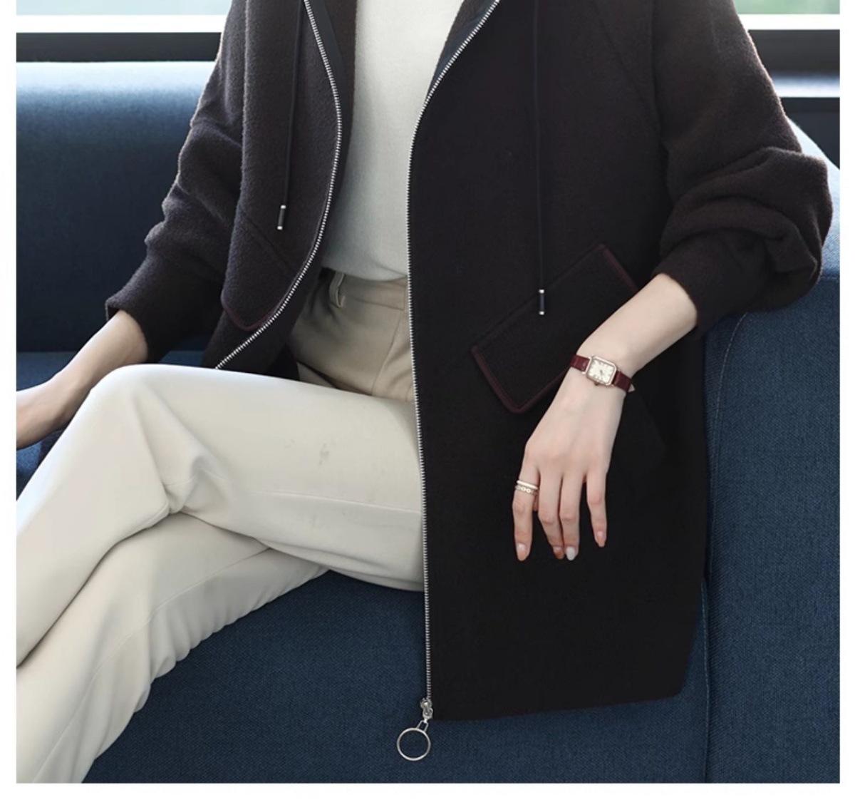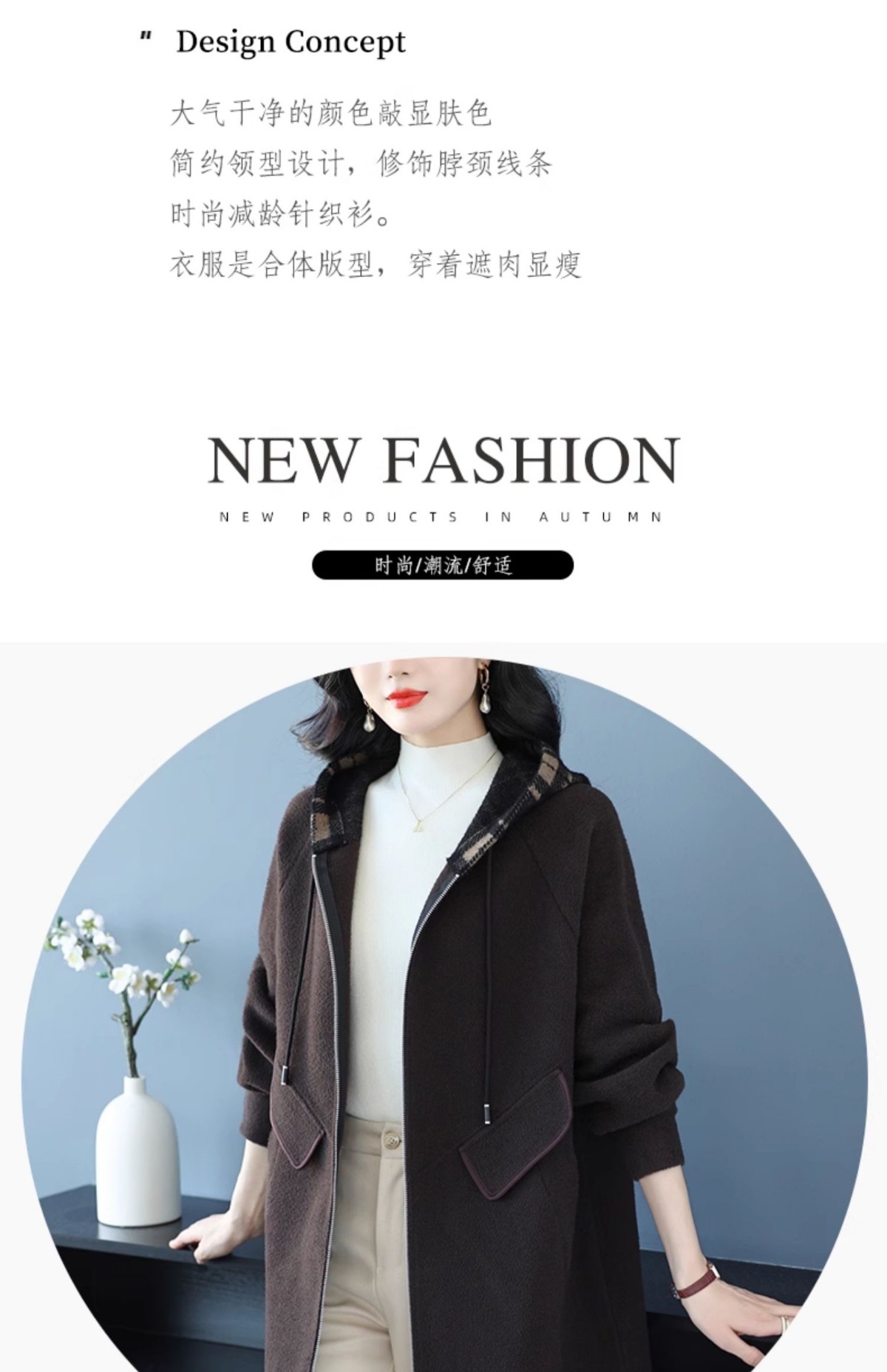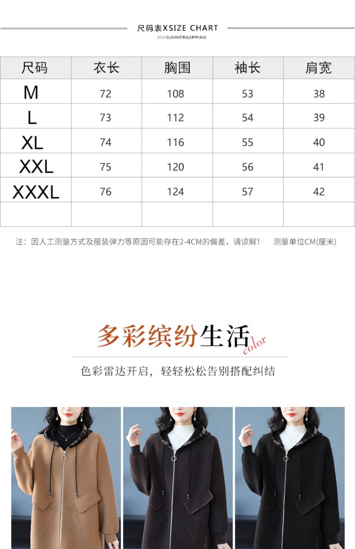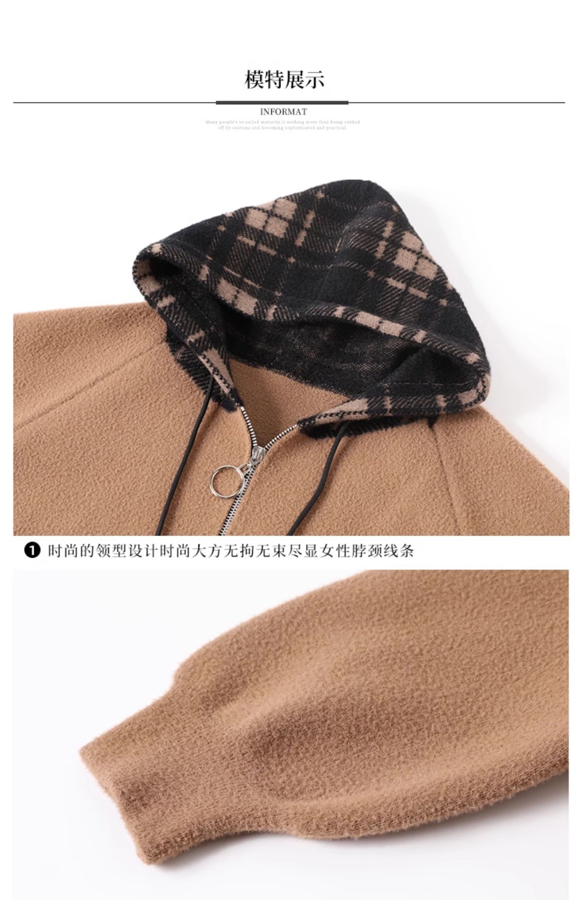 CC-10-5752连帽毛呢外套韩版宽松拉链开衫女士秋冬季时尚休闲大码胖MM上衣潮