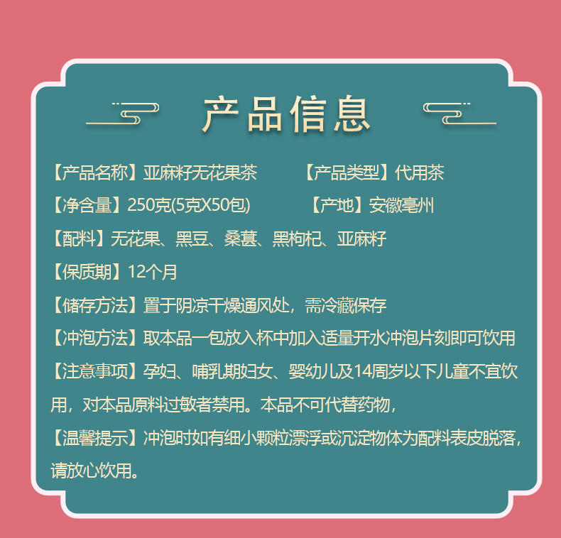 【甄选】泷御堂 亚麻籽无花果茶 人工挑选 干净放心 配方纯粹 250g/袋(5g*50包)