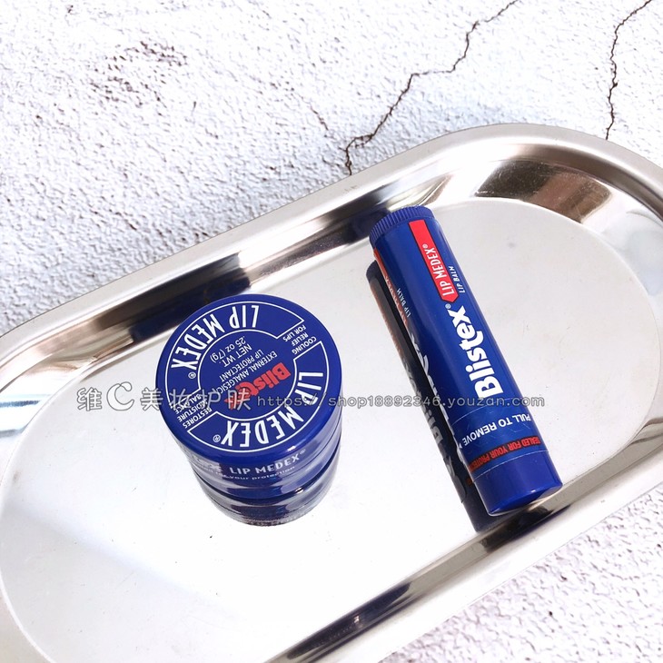 Blistex号称平价的润唇膏专门户,小蓝罐则算是Blisetex家族里的大明星!主打"修护,滋润,保湿"。跟别的润唇膏不同的是ta除了保湿润唇强悍,还有一定修护的作用。一方面针对起泡等唇部,淡淡的薄荷凉意可以快速起到冷却的作用, 另一方面可以帮助唇部回到自己的天然水份平衡,有天然乳木果油和珍贵蜜蜡,可以持久保湿修护,抵御外界伤害,让唇部在没涂唇膏的情况下也不会干燥到脱皮。膏体半透明,涂在手上带点粘度,使用感和Rosebud家的花蕾膏类似,也有点薄膜的感觉。但擦在嘴唇上能完全是透气的水润,很好吸收,涂上去双嘴很轻盈。冰冰凉的薄荷味,只要不吃东西滋润性能很持久。适合厚敷做唇膜过夜。唇部问题比较严重或者需要唇部急救的MM效果更显著。第一天晚上涂抹,第二天起来唇部会变得相当柔软,拿毛巾轻轻一擦,可以擦掉一些老化的死皮,嘴唇就会变得嫩嫩滑滑的,去唇纹的效果也很棒。