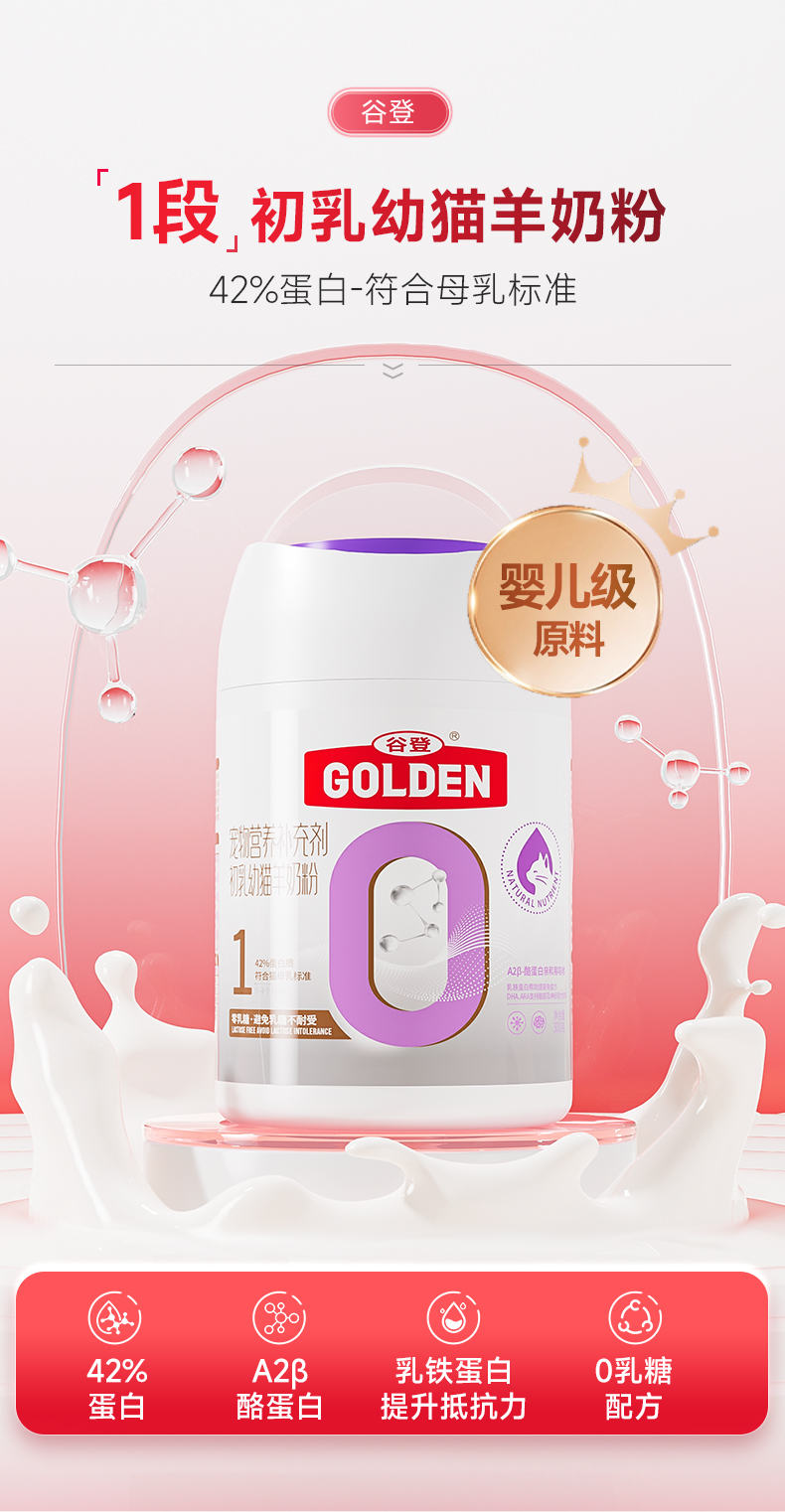 【2罐加送赠品 需要奶瓶下单备注】谷登0乳糖1段初乳幼猫羊奶粉300g