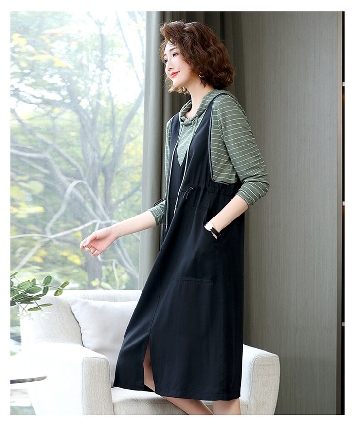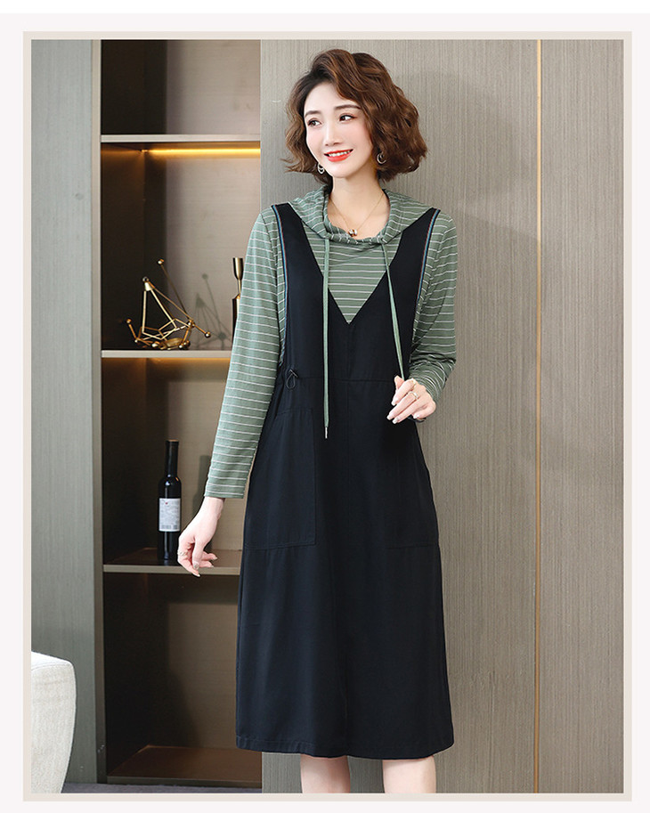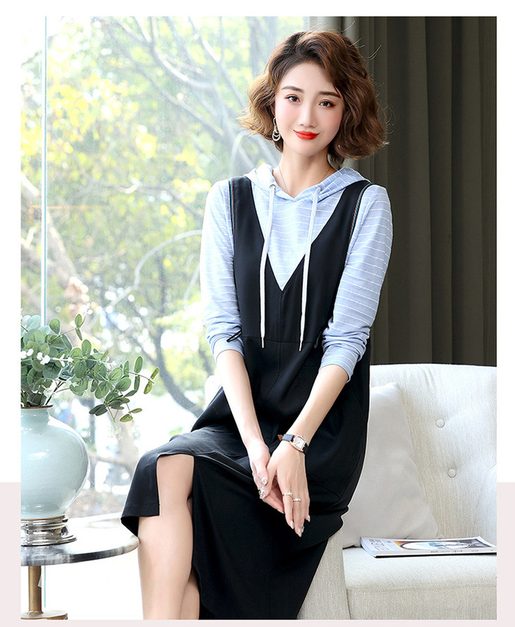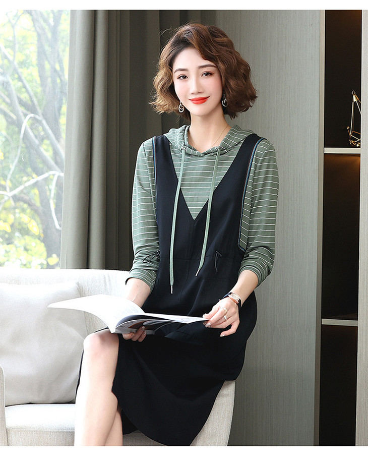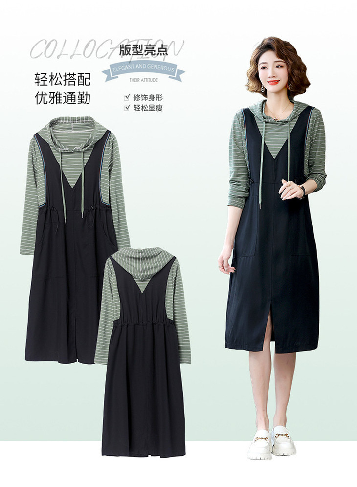 2023年春季连帽假两件条纹舒适高腰显瘦潮流简约时尚HR-WL10029