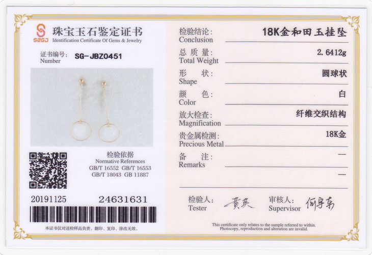 18K玫瑰金和田玉(白玉)玉珠耳饰