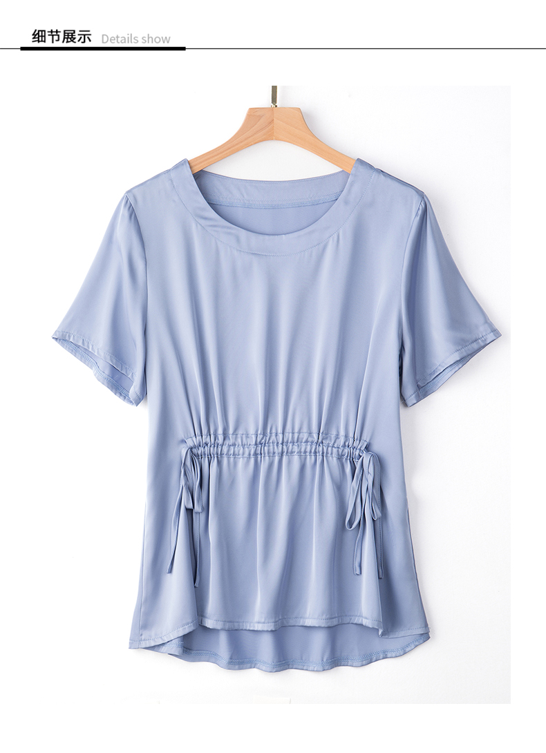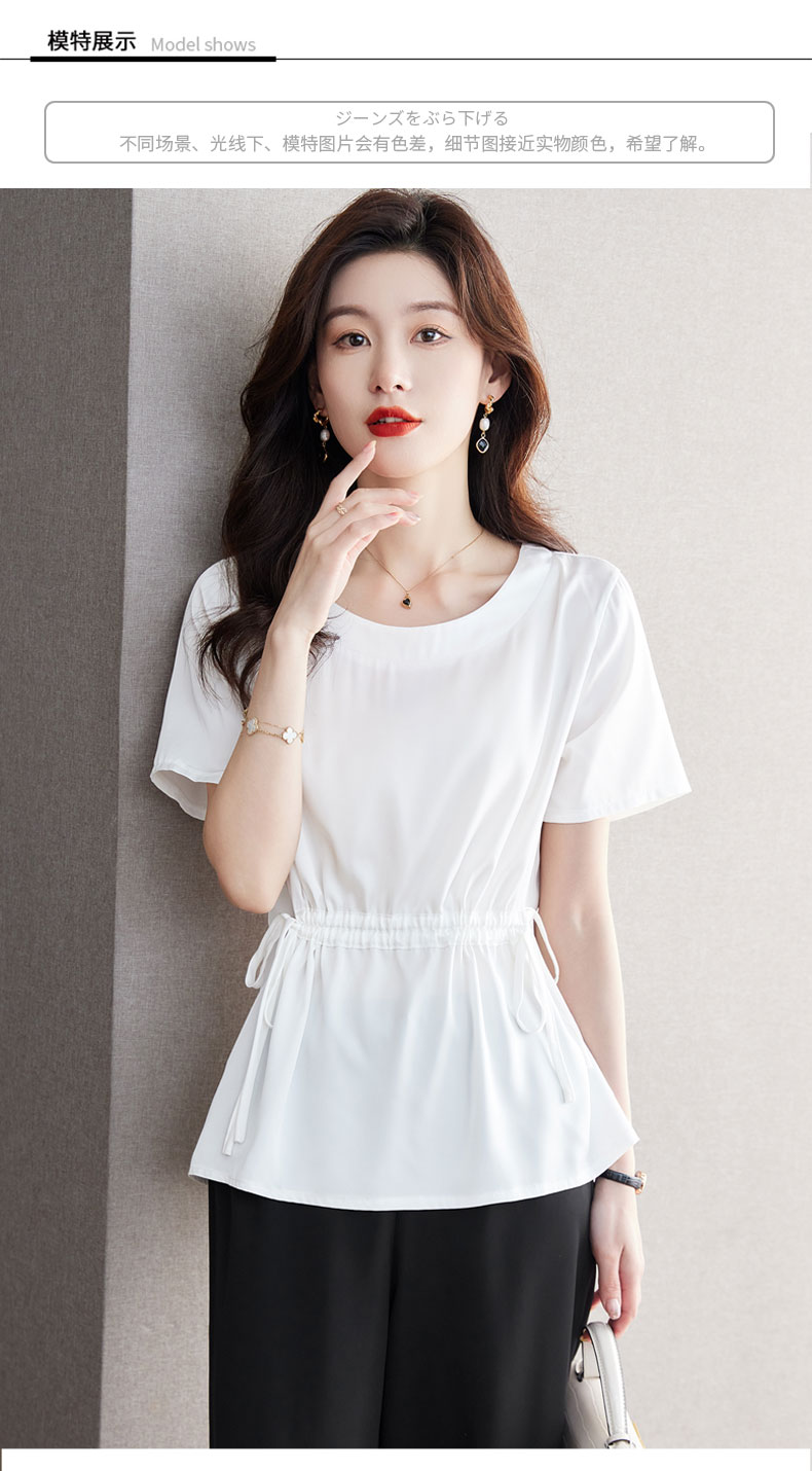 收腰显瘦,短袖t恤女新款雪纺衫遮肚子上衣系带洋气减龄小衫CC-JA5001