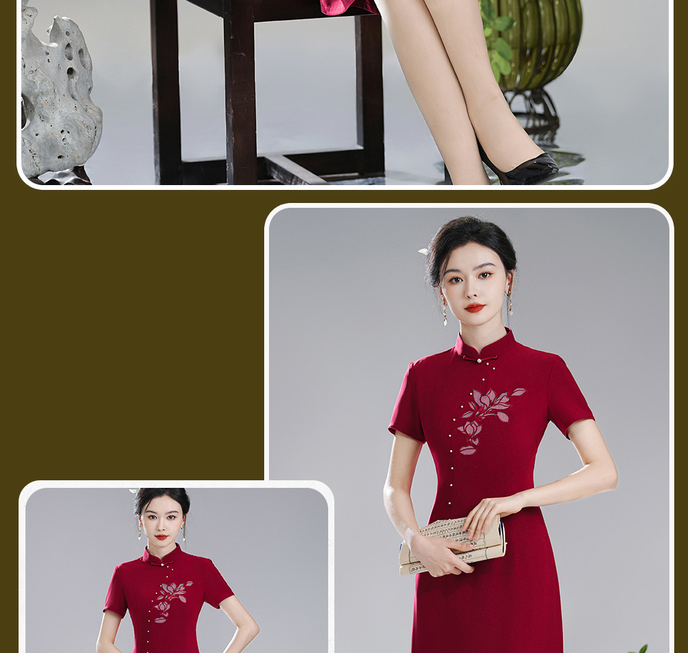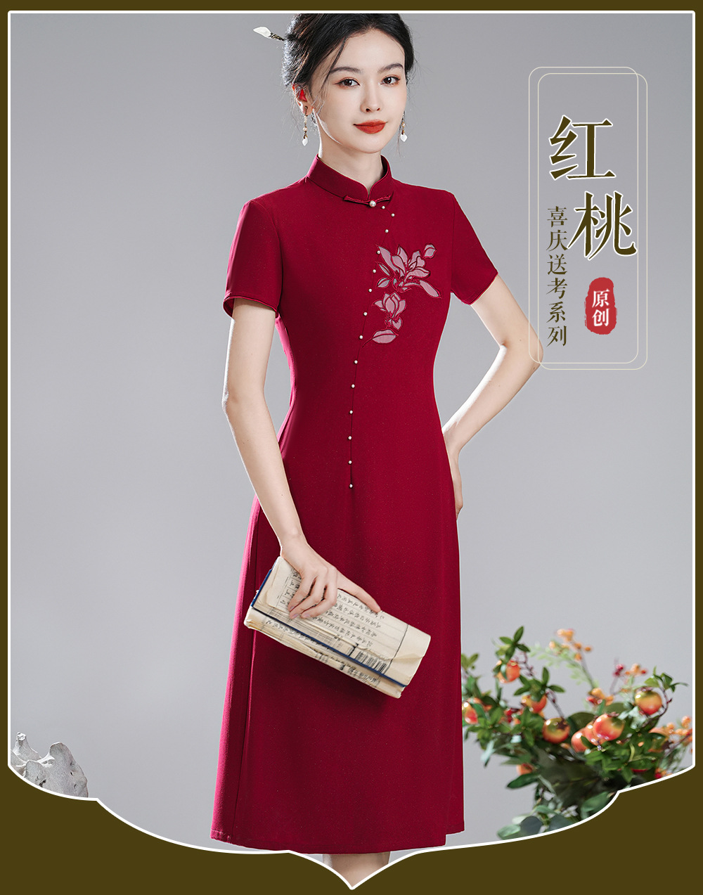 【红桃】改良国风,喜庆婚宴礼服送考旗袍裙XGT-Q24029