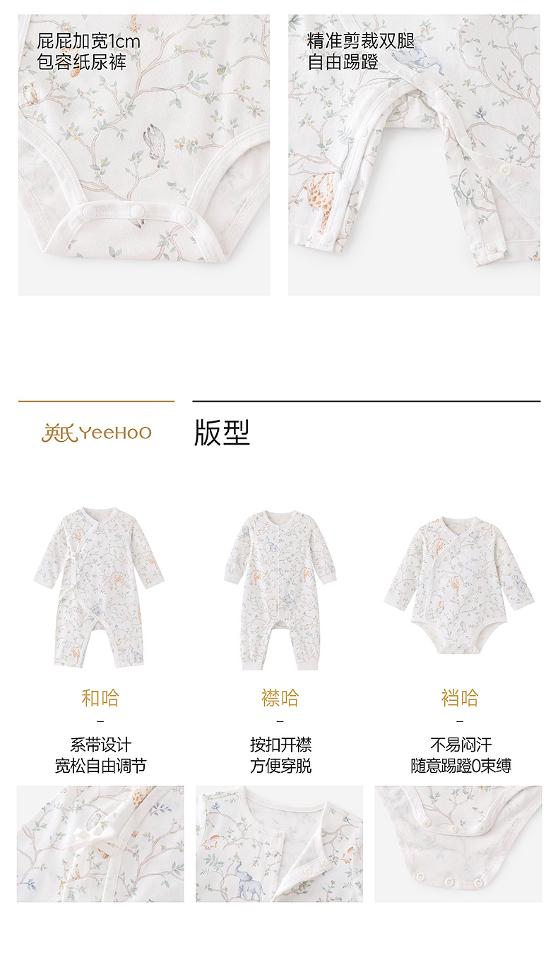 【商场同款】英氏婴儿宝宝裆蛤四季新生儿长袖哈衣包屁衣新品