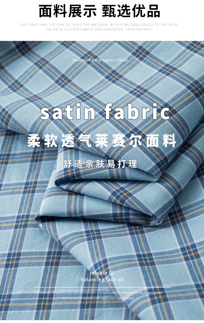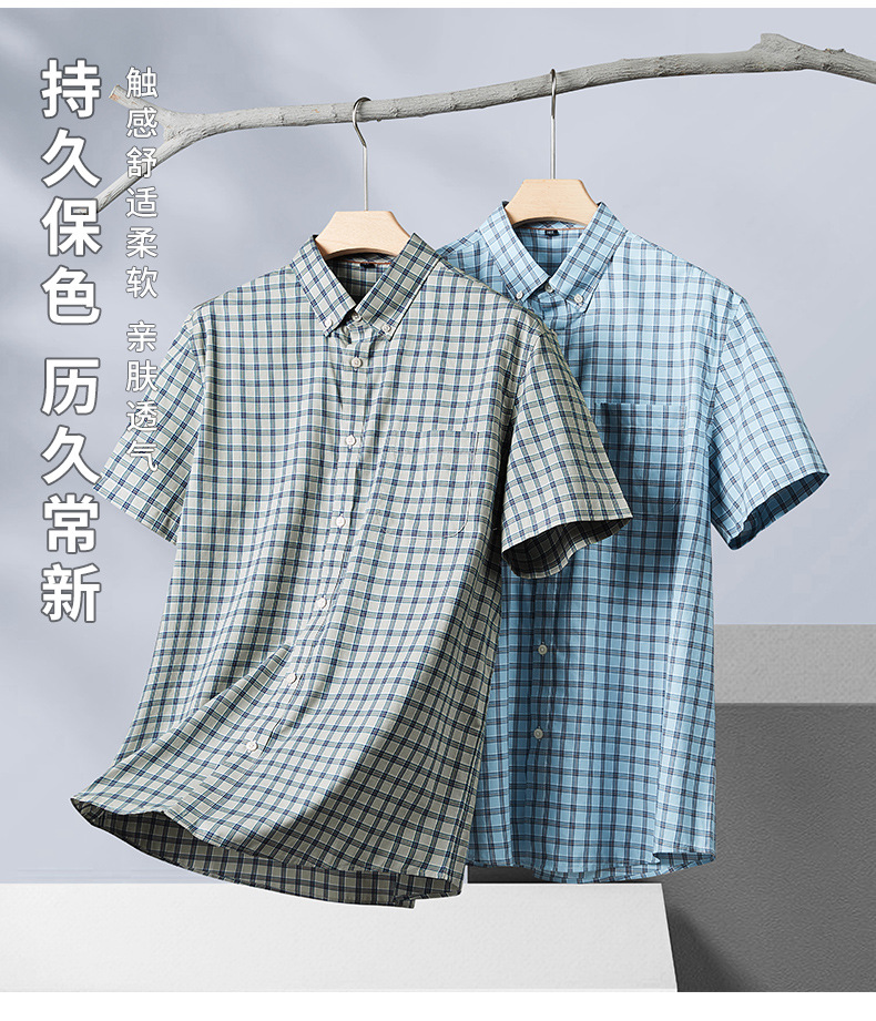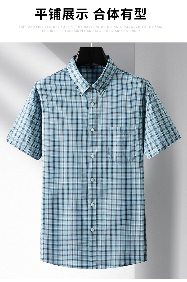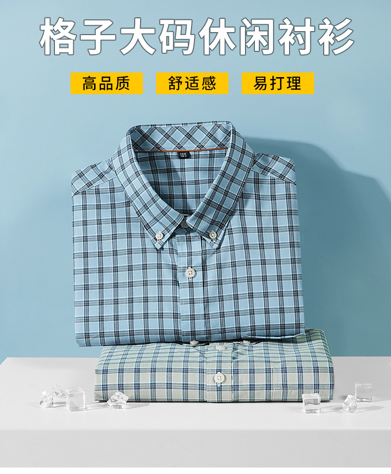 【莱赛尔棉】【DM】大依优型大码短袖衬衫格子半袖衬衣加肥大码上衣胖子休闲莱赛尔棉男士