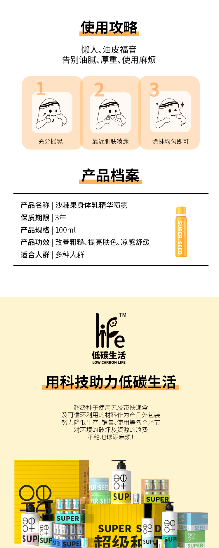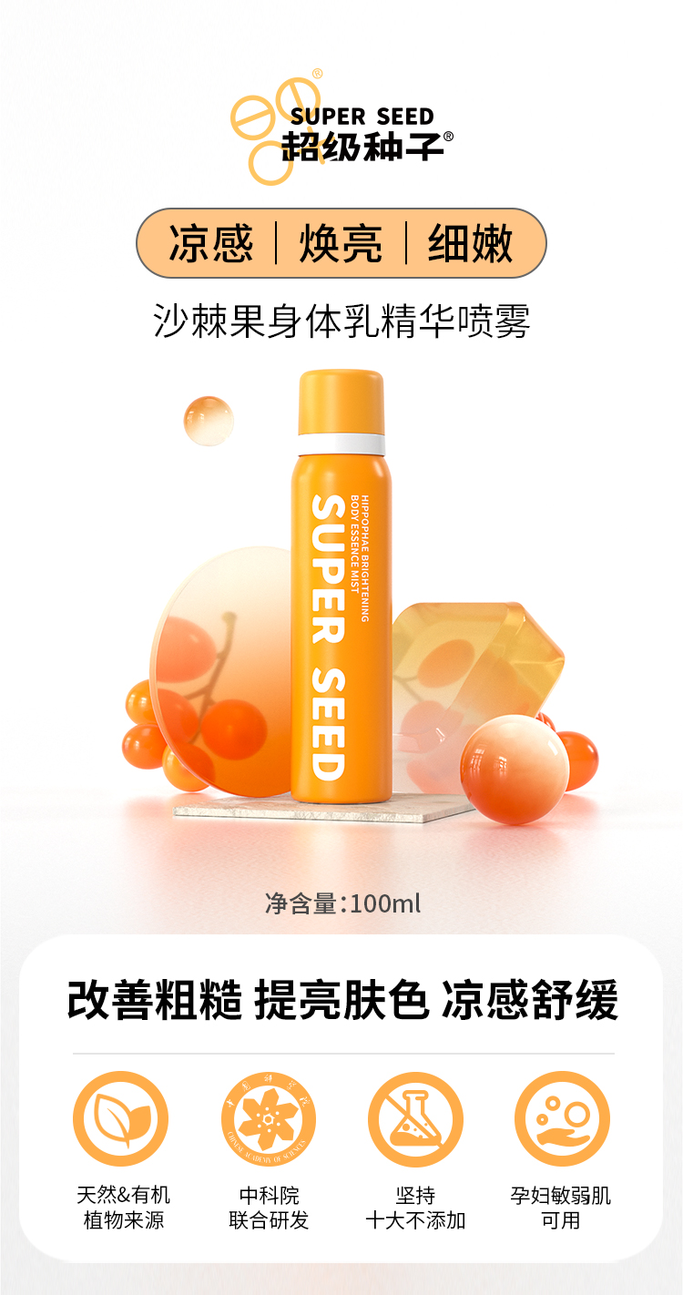 沙棘果光感身体乳精华喷雾