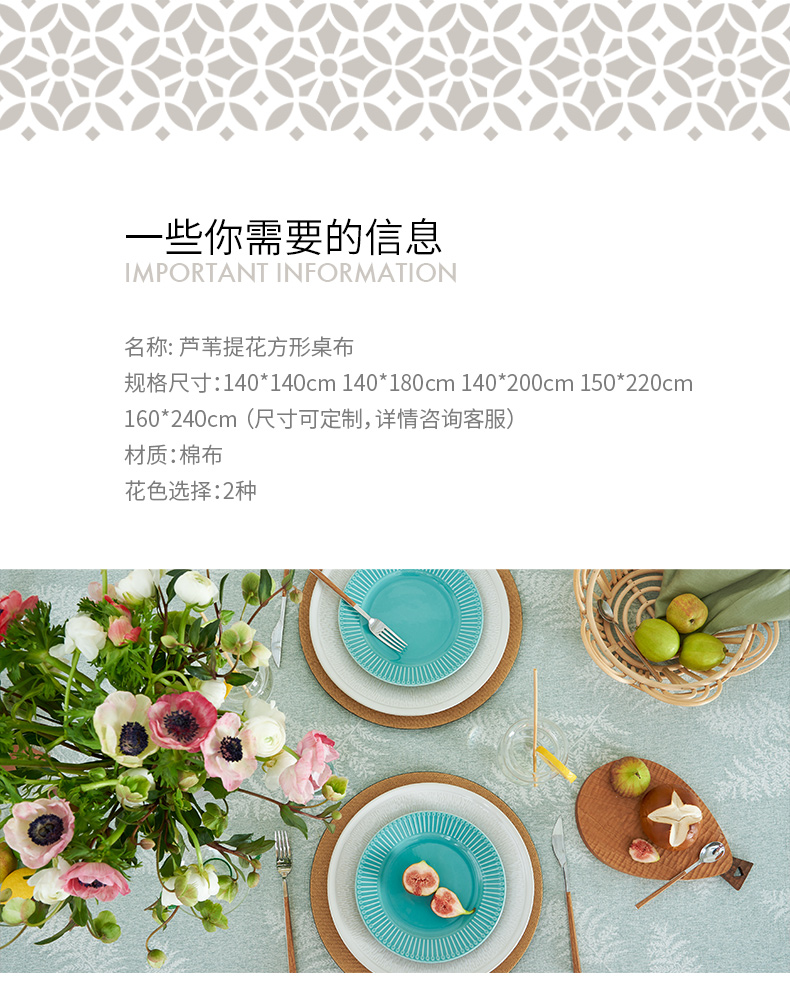 芦苇提花轻奢高级感中式棉布餐桌布