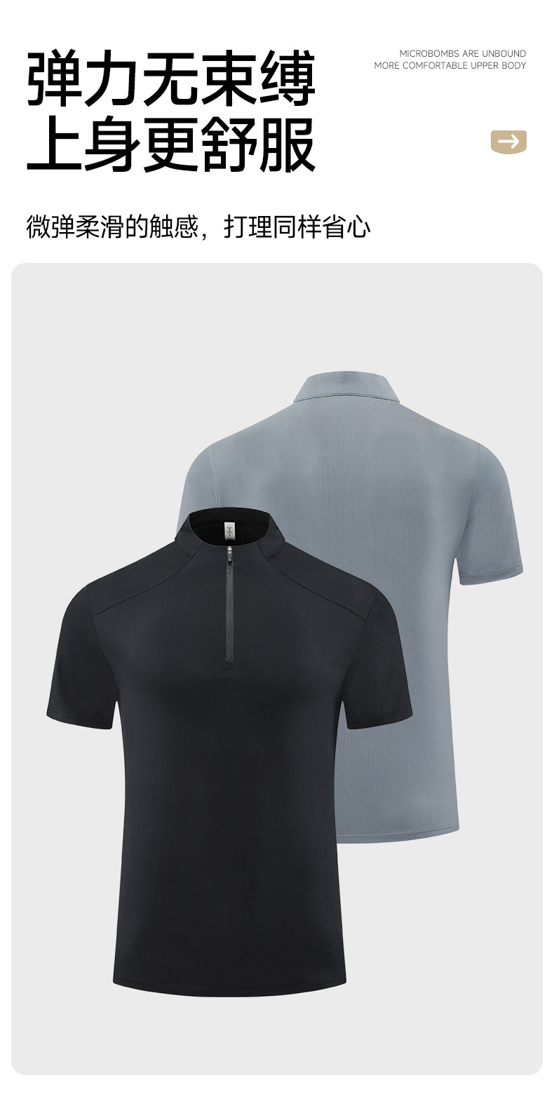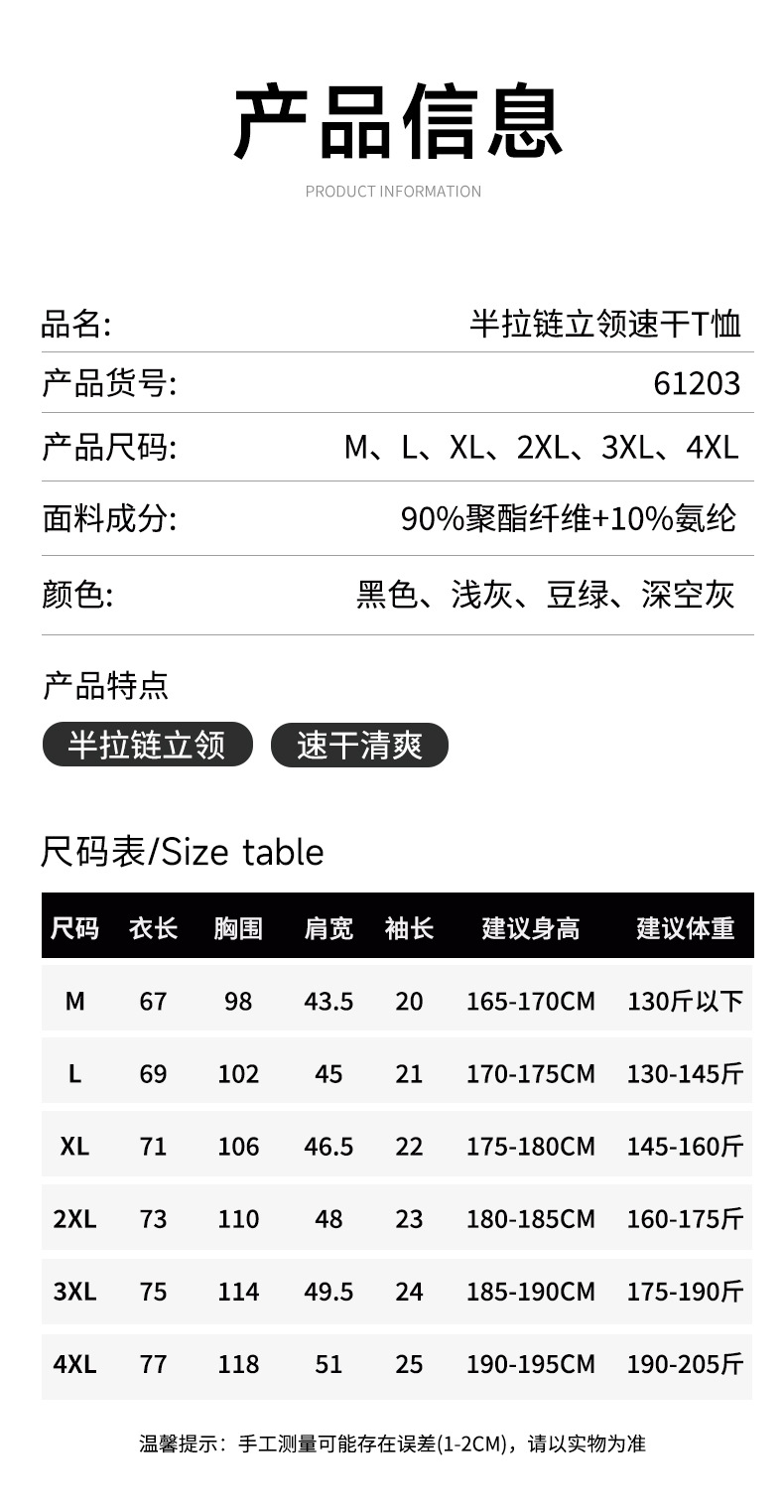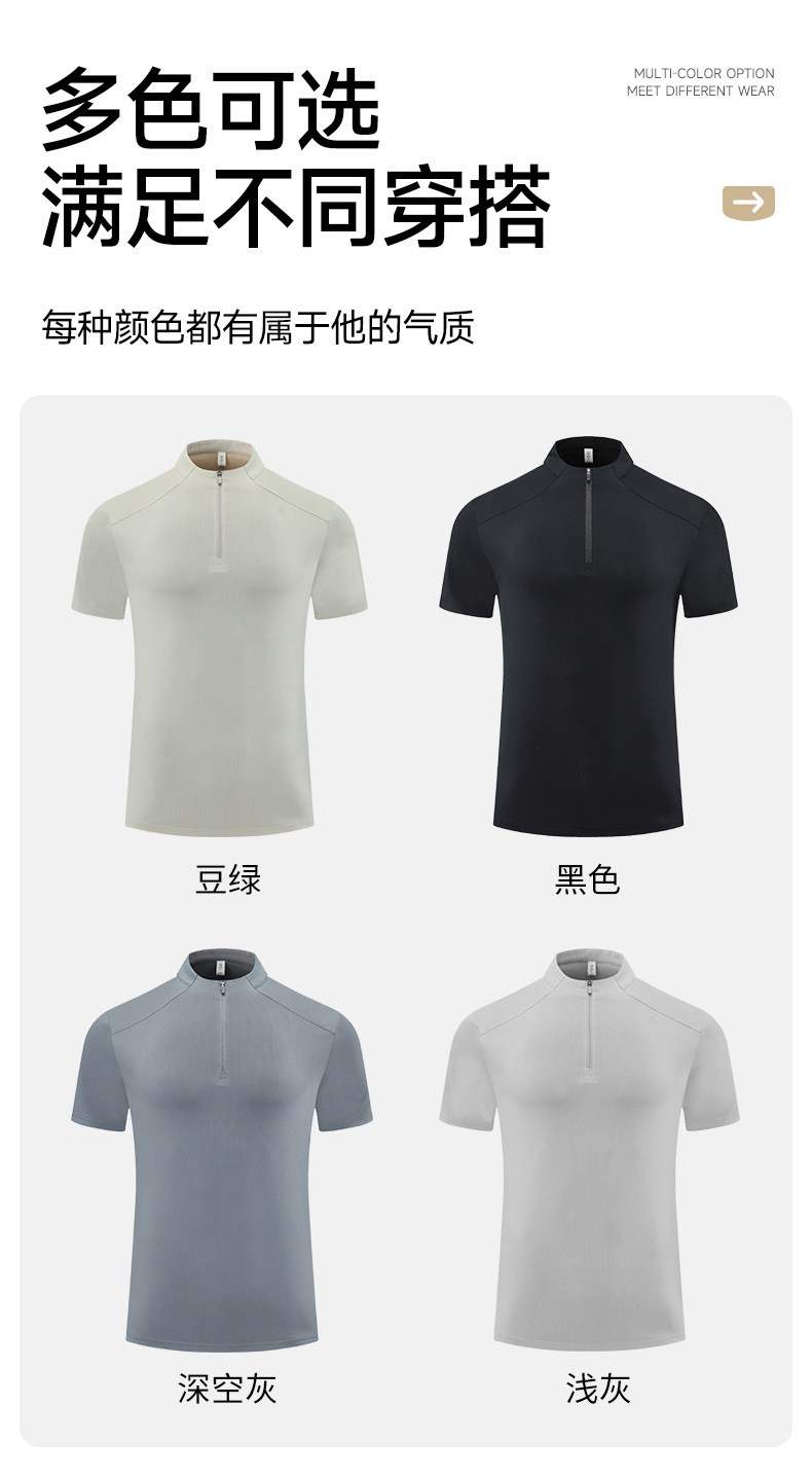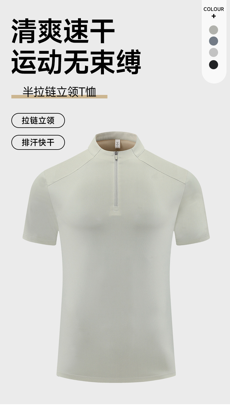 跃牌【PF系列】2025新款半拉链短袖男高弹力专业速干衣跑步健身服男休闲运动T恤61203