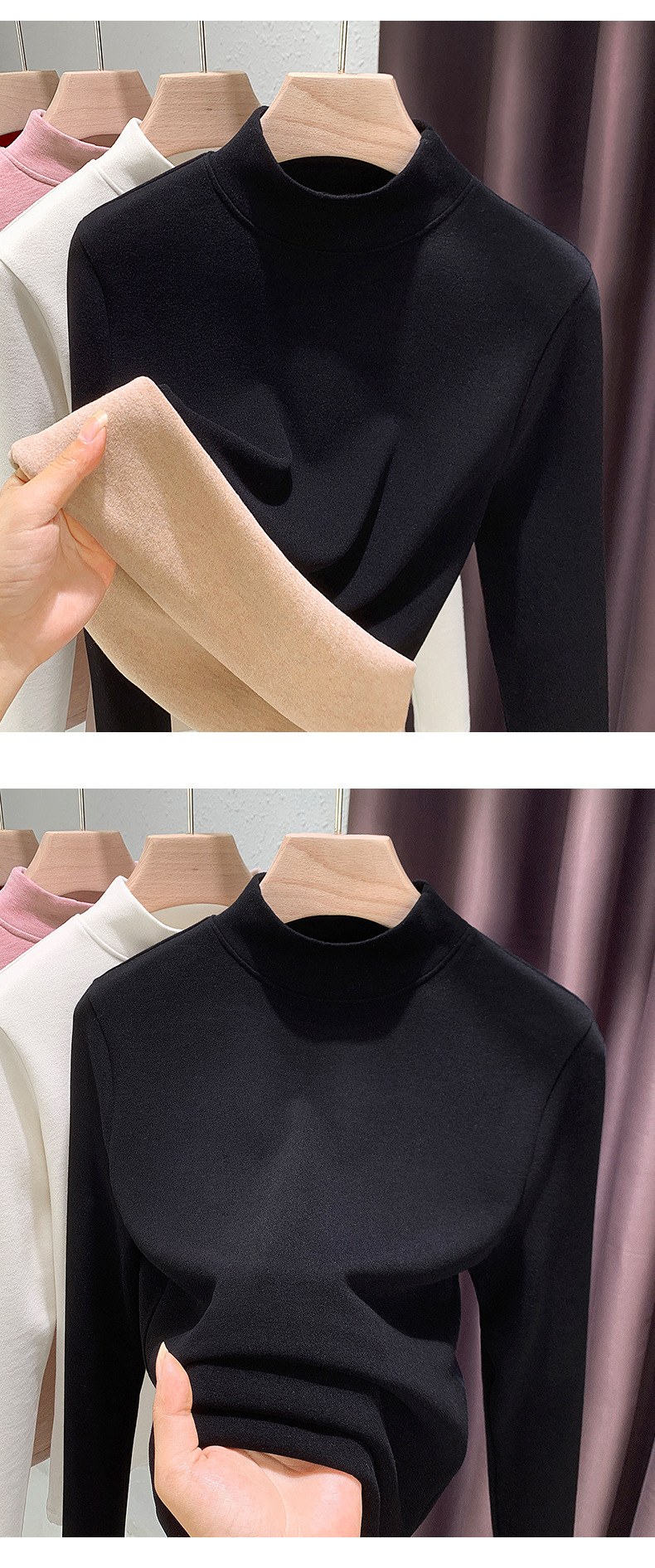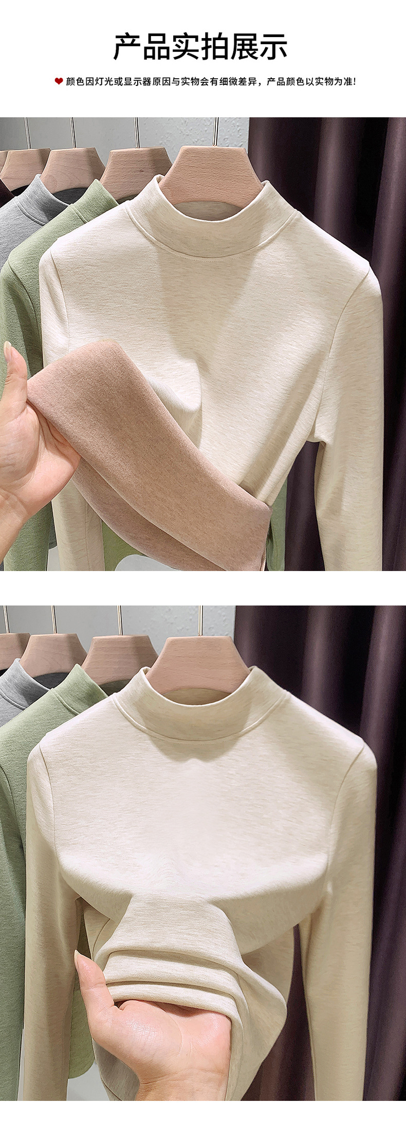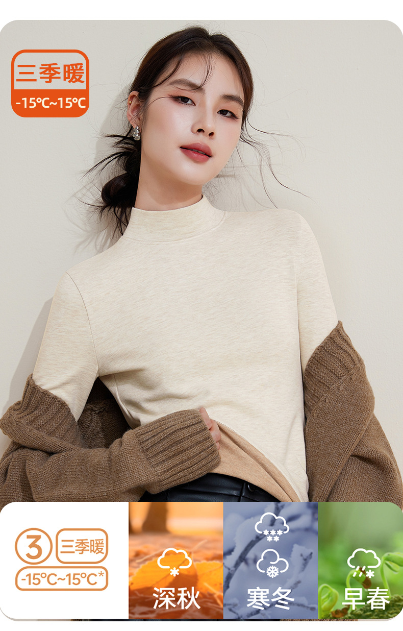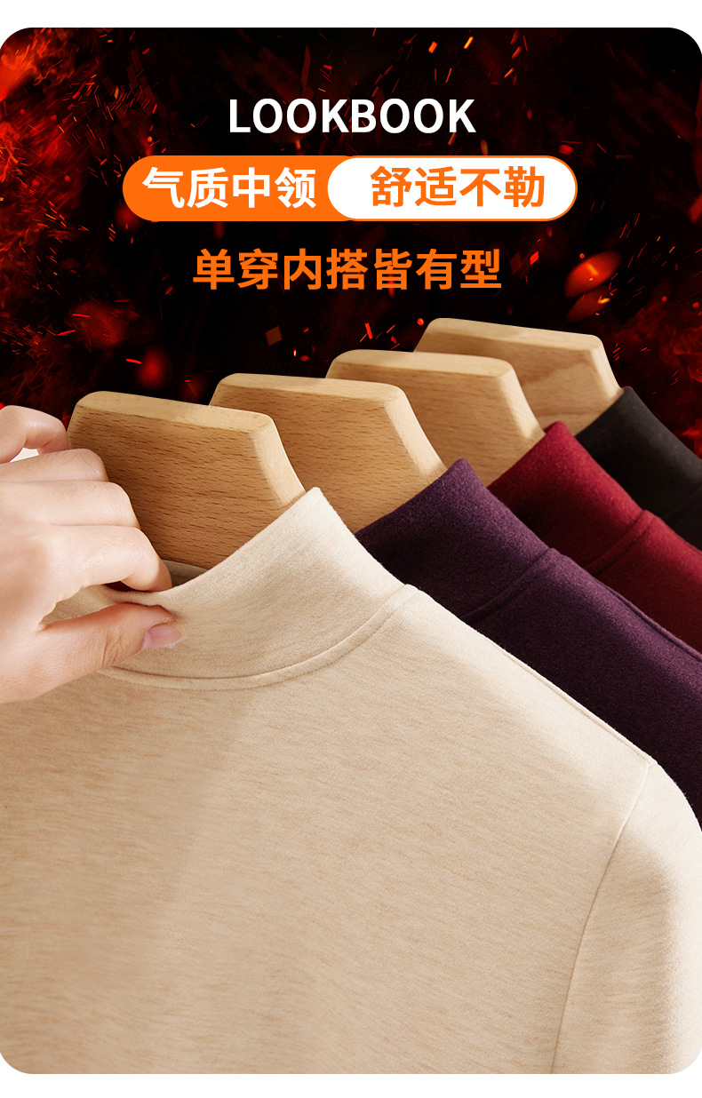 丁摩 中领发热绒打底衫女内搭秋冬羊毛蚕丝修身保暖加绒加厚上衣服5ZF-J406