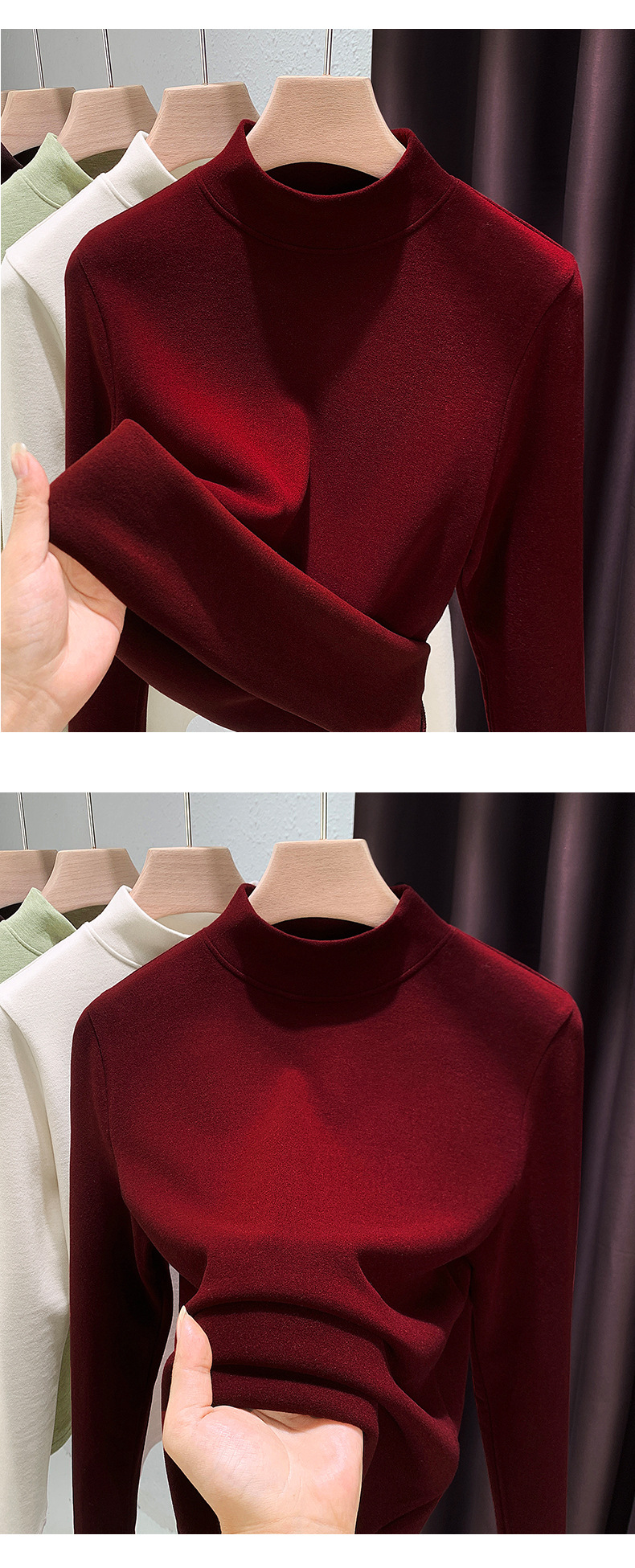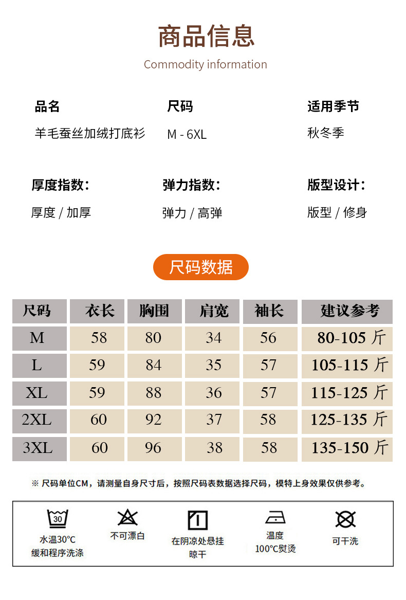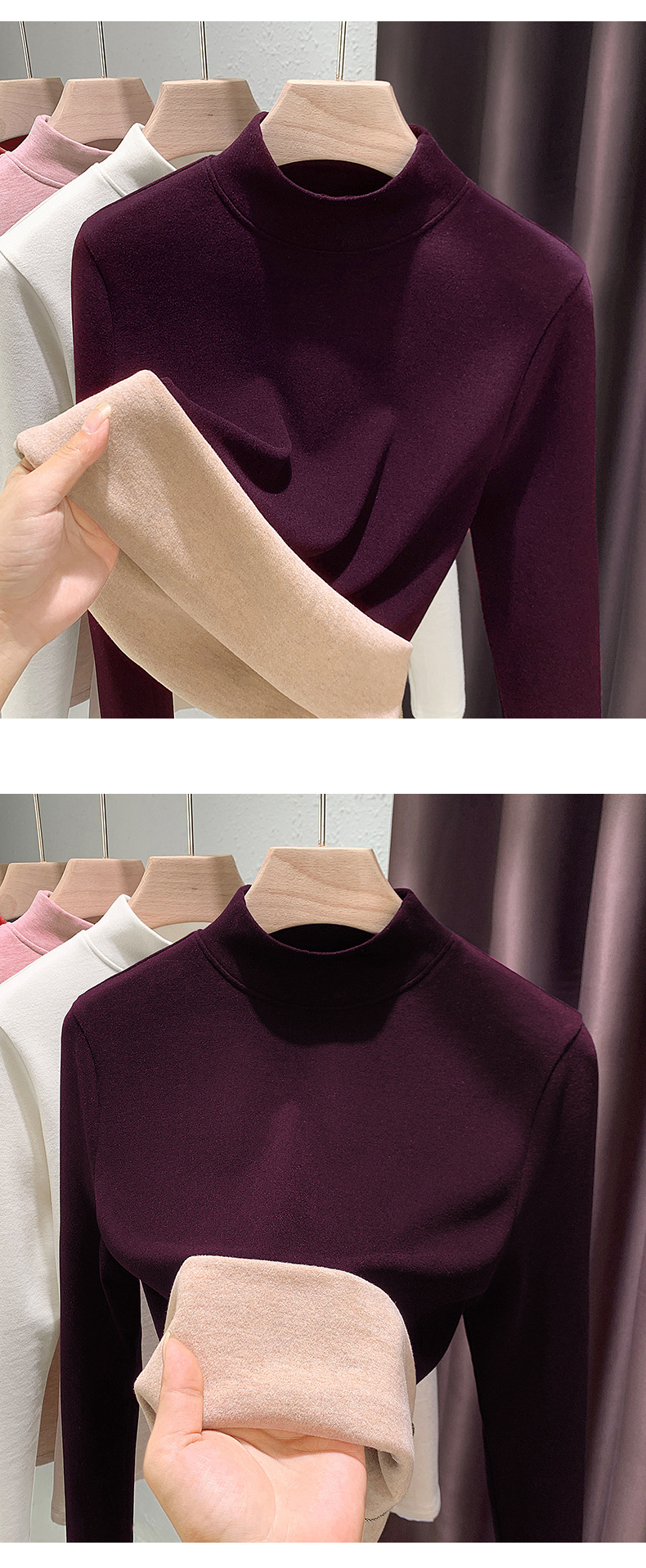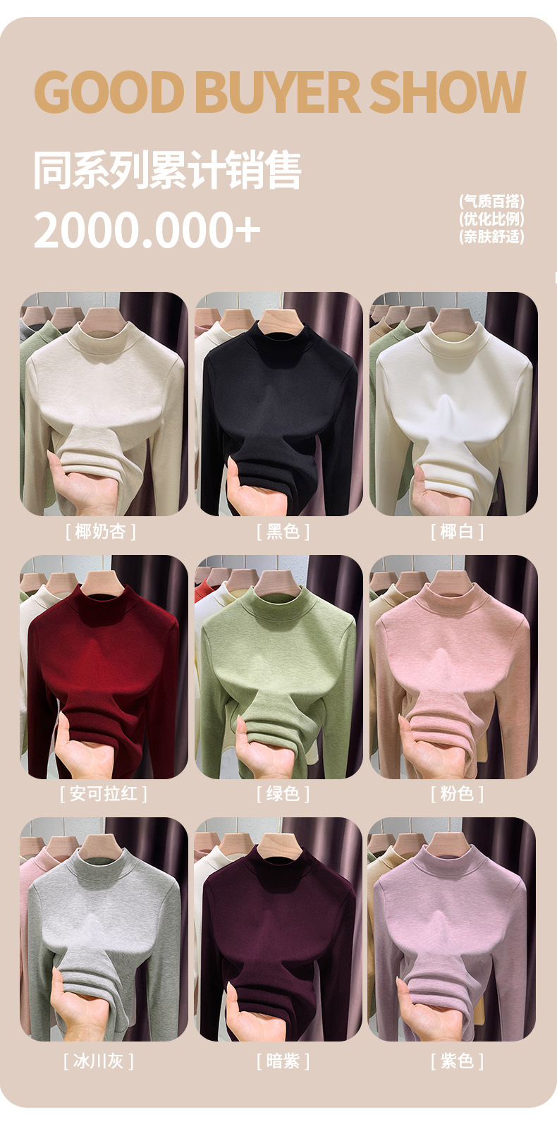 丁摩 中领发热绒打底衫女内搭秋冬羊毛蚕丝修身保暖加绒加厚上衣服5ZF-J406