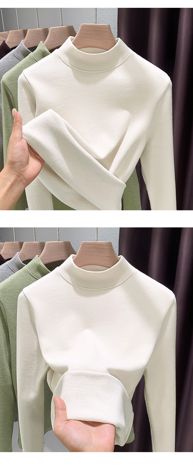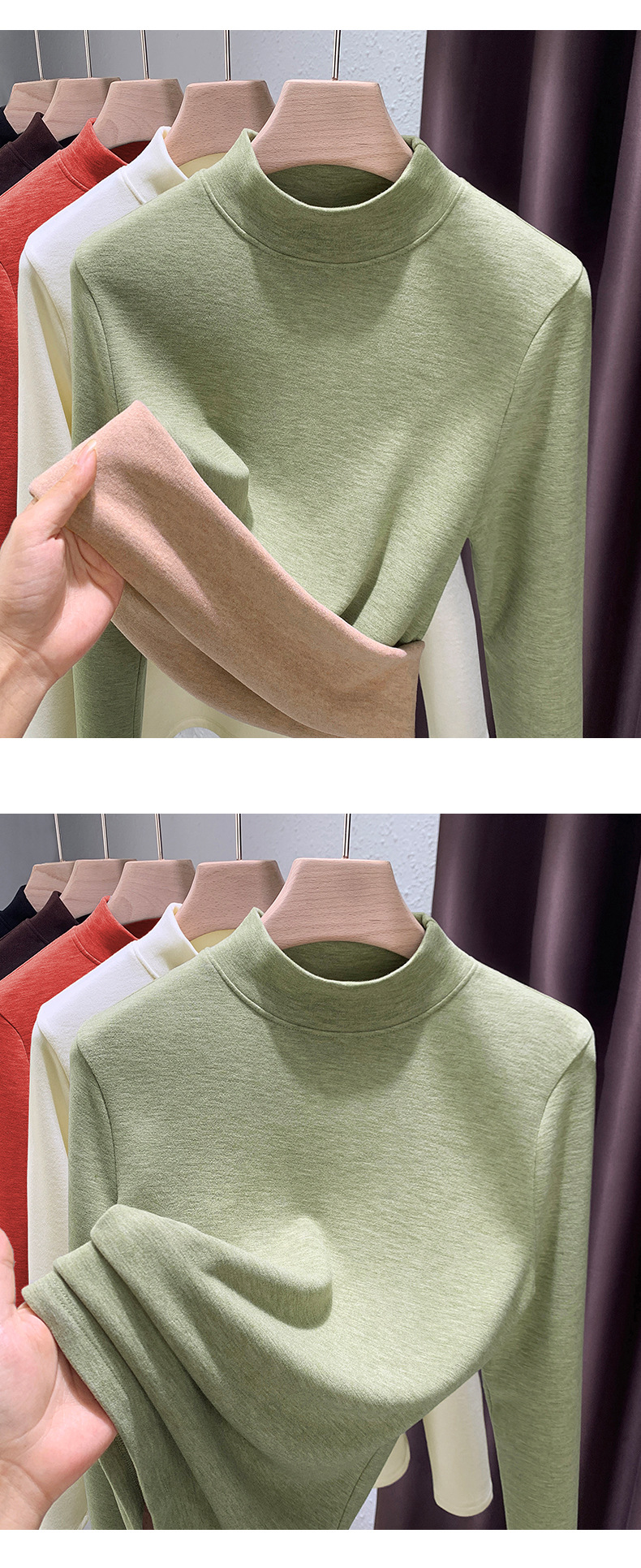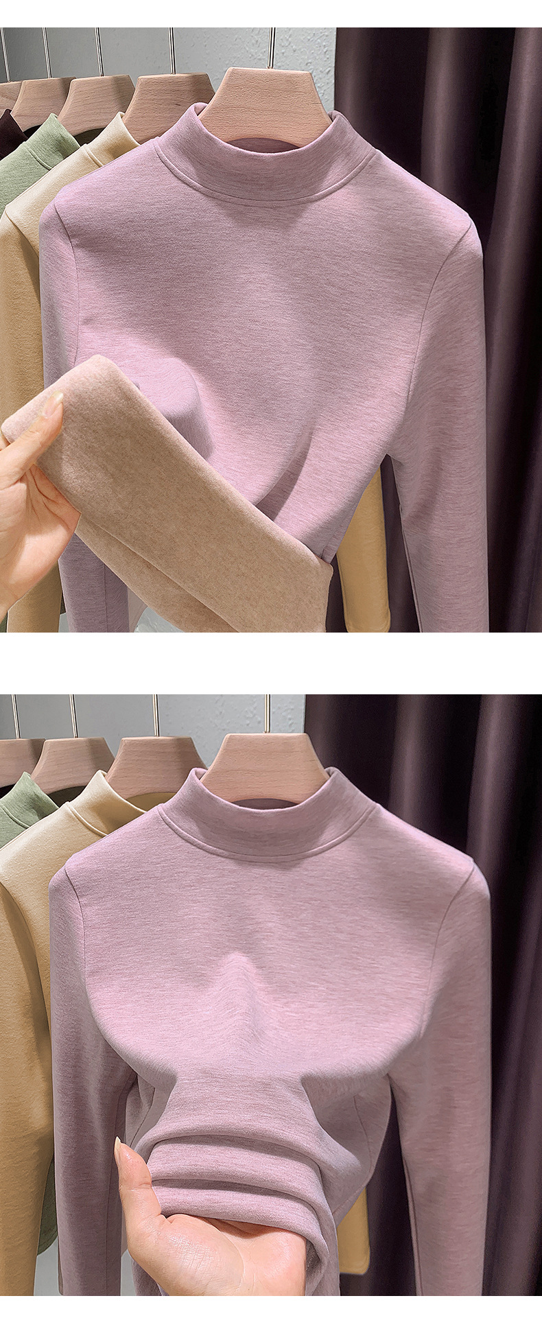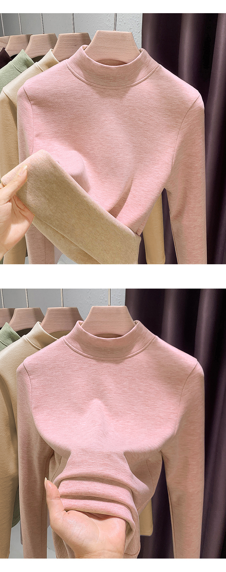 丁摩 中领发热绒打底衫女内搭秋冬羊毛蚕丝修身保暖加绒加厚上衣服5ZF-J406