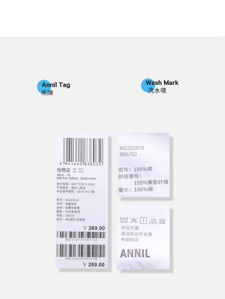 【实体店同款】女童半身裙夏季新款宝宝运动彩虹裙子安奈儿童装XG323613