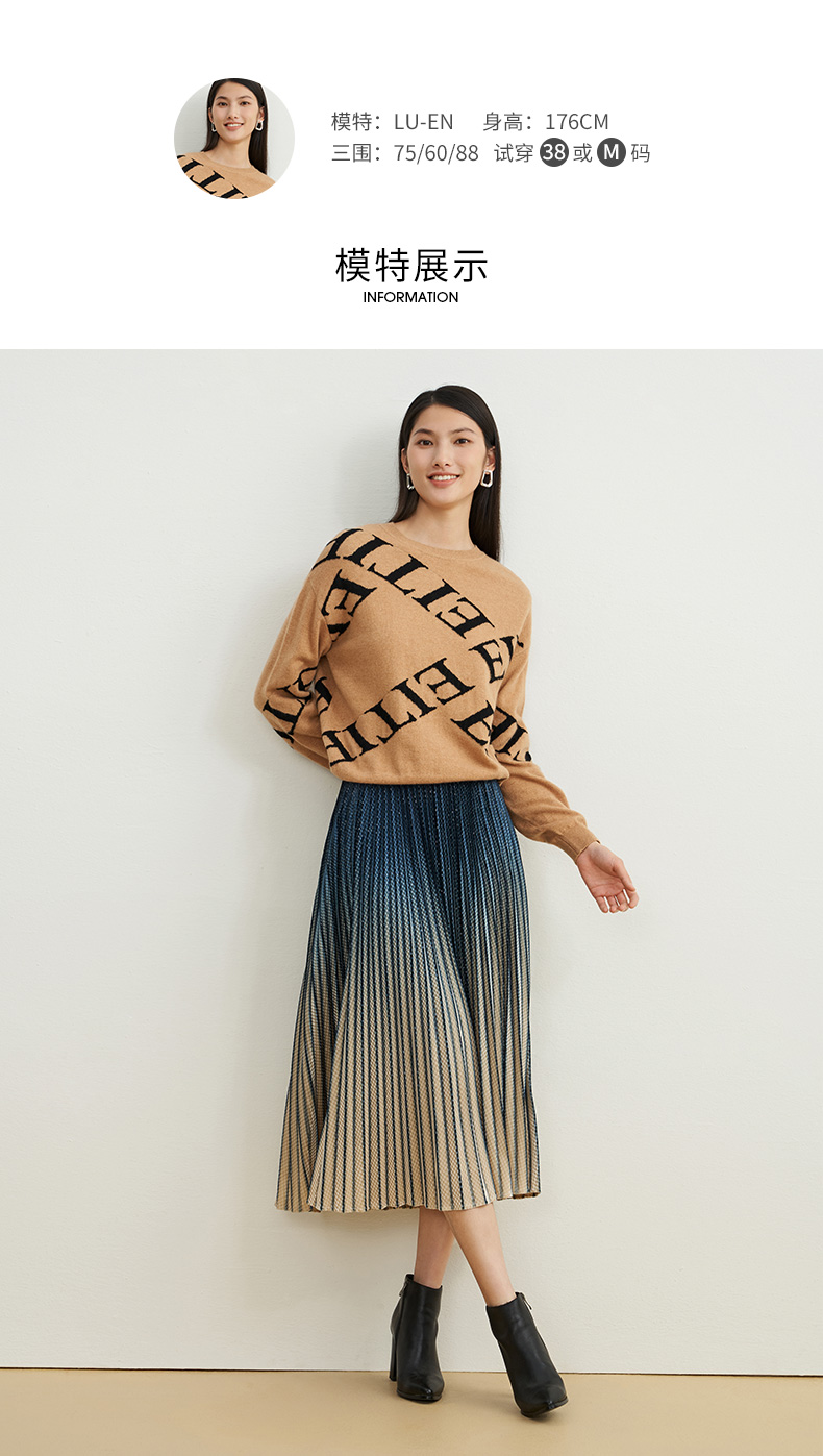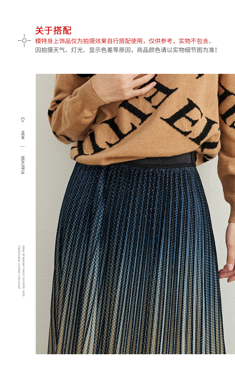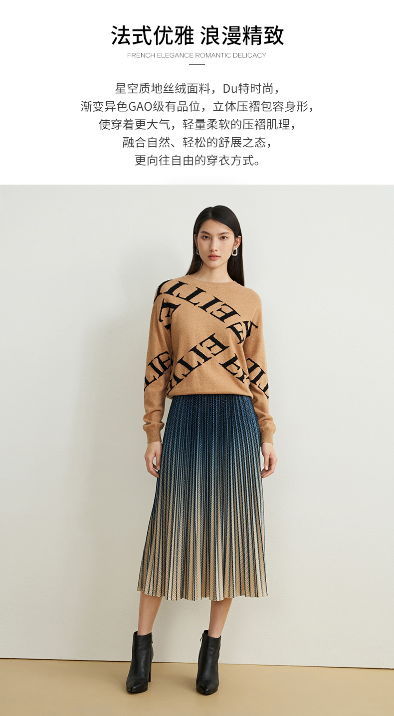 EITIE爱特爱冬季新款高腰显瘦气质渐变小众设计半裙6806507