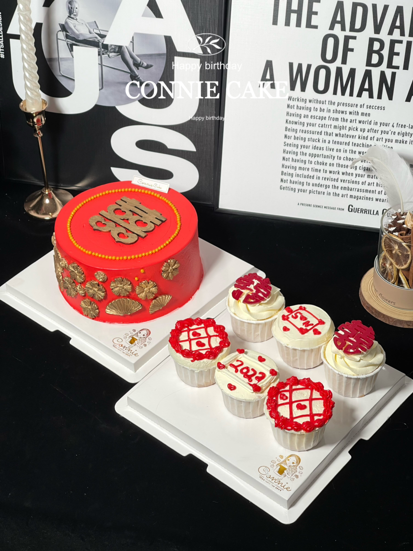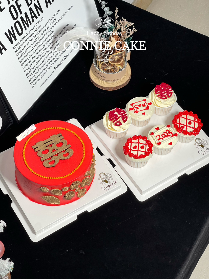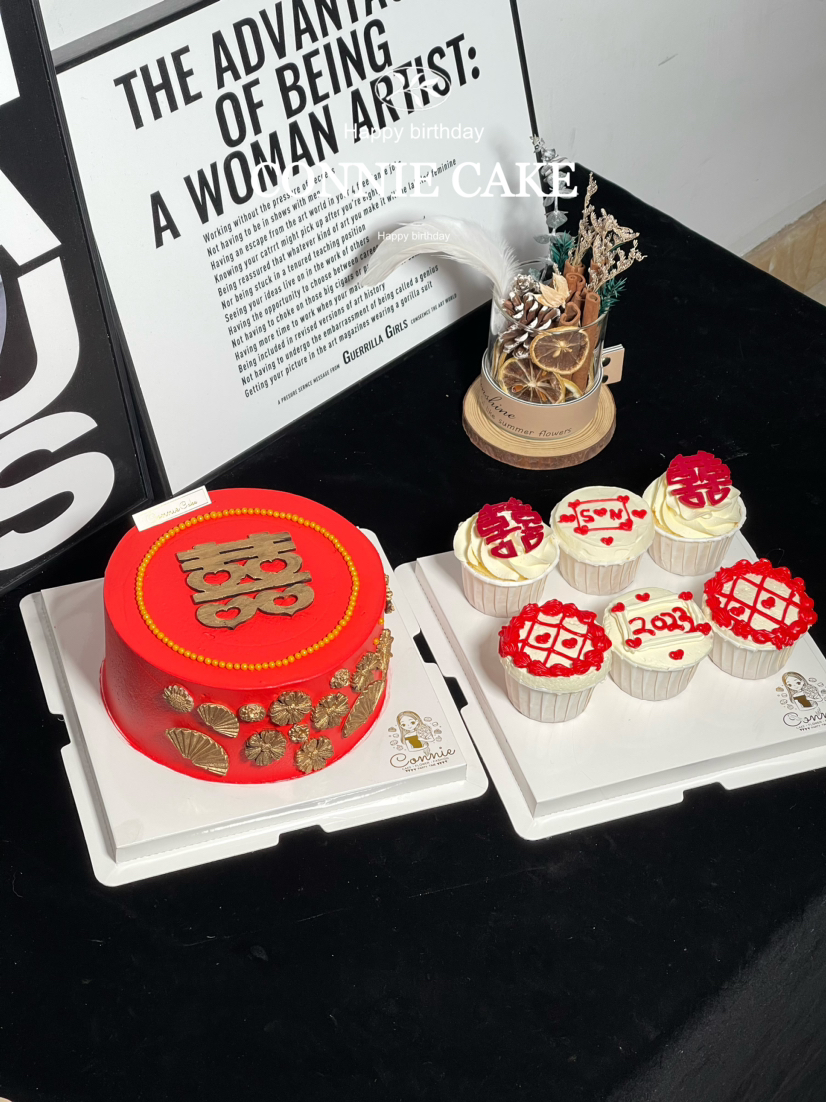 【1363】红色系订婚蛋糕+纸杯组合