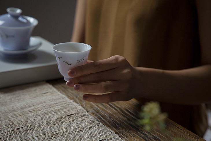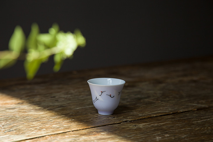 同时,「粉彩仙鹤盖碗」的坯体轻、薄、透。