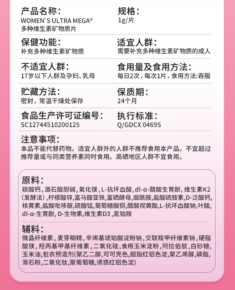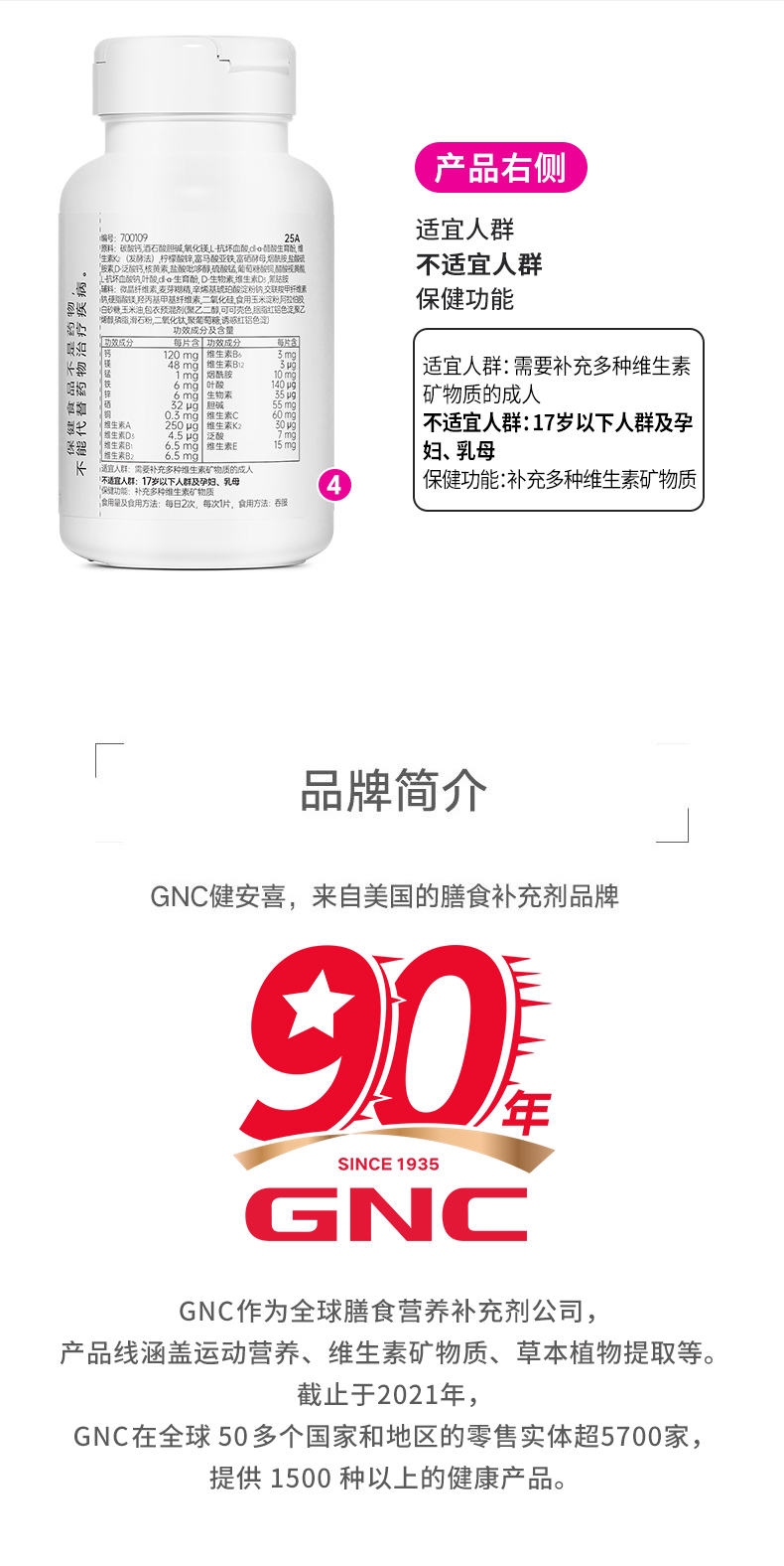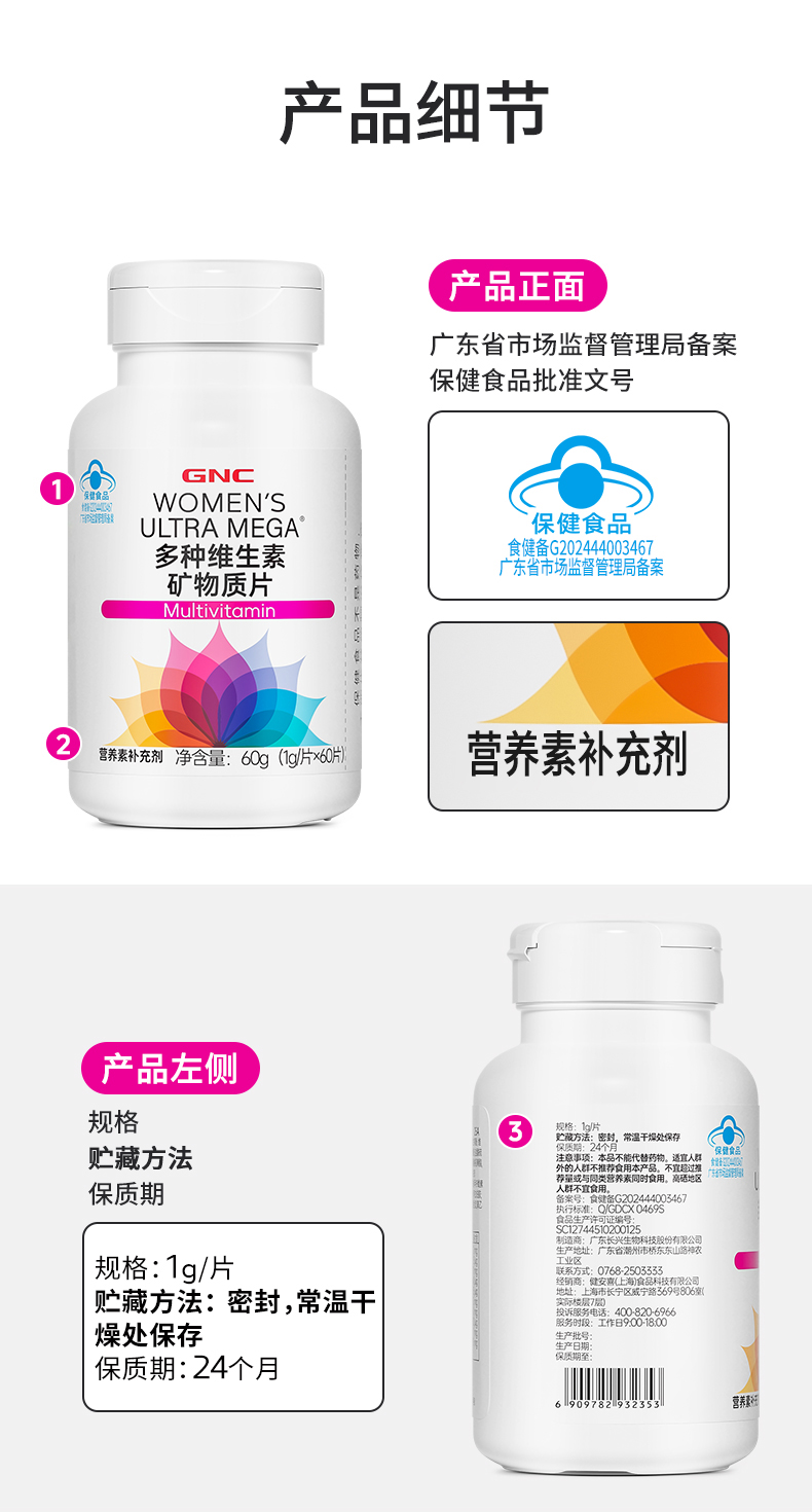 【一般贸易】GNC/健安喜 ULTRA MEGA牌多种维生素矿物质片 (女款)两瓶装(非组套)