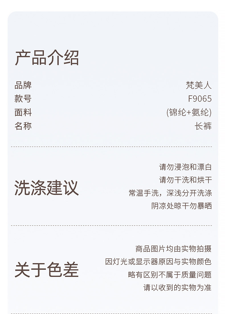 梵美人 F9065 直筒长裤 有松紧 有口袋 肌理冰肤防晒