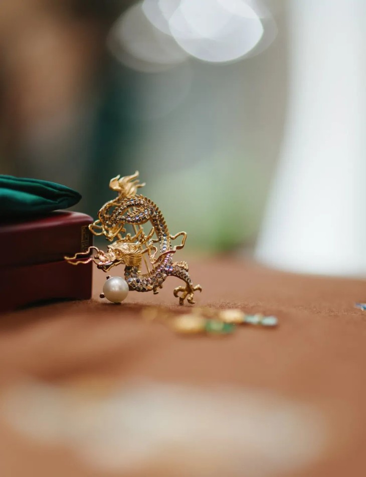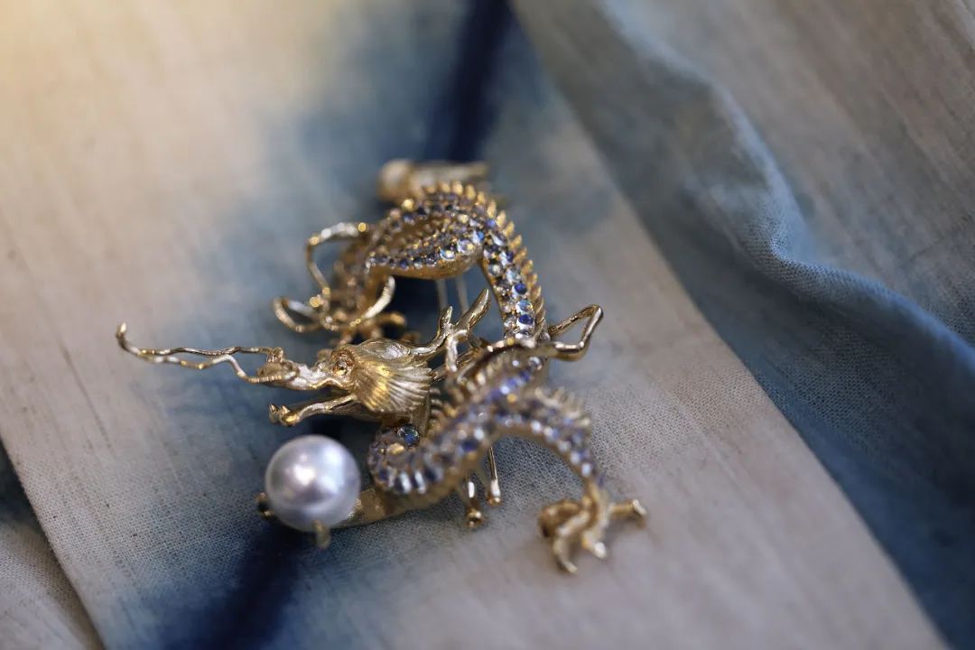 我不由得想起这个作品,握着“澳白”宝珠的龙胸针。