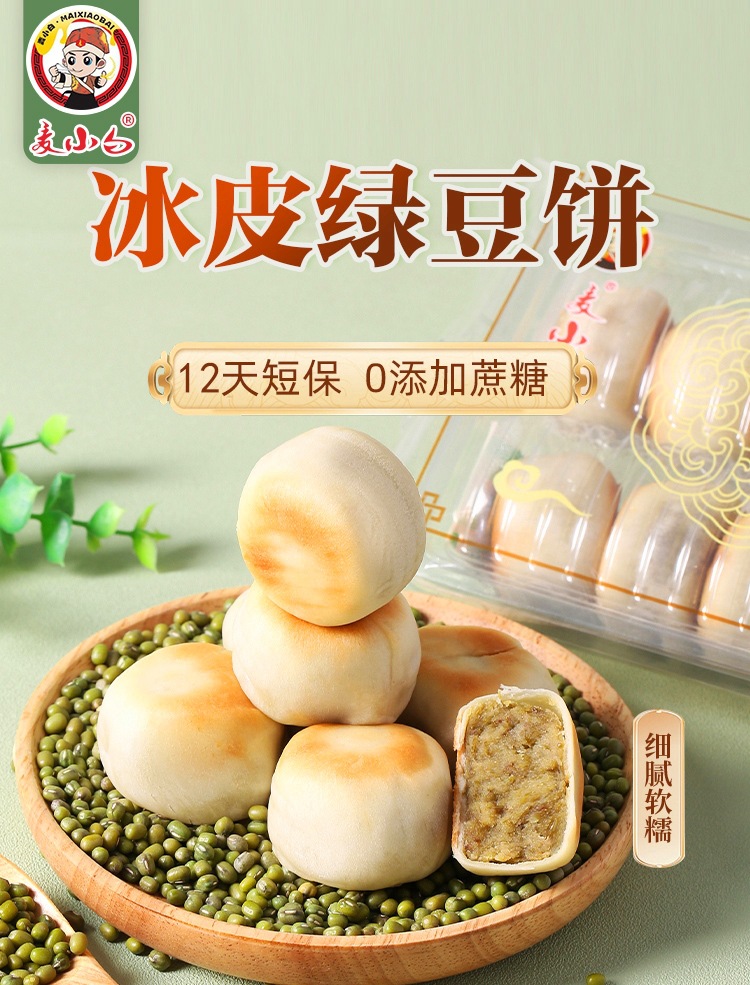 糖友精选,皮薄馅多【0添加蔗糖!0反式脂肪】麦小白冰皮绿豆饼无蔗糖老式传统糕点下午茶点心零食低糖甜品。ha