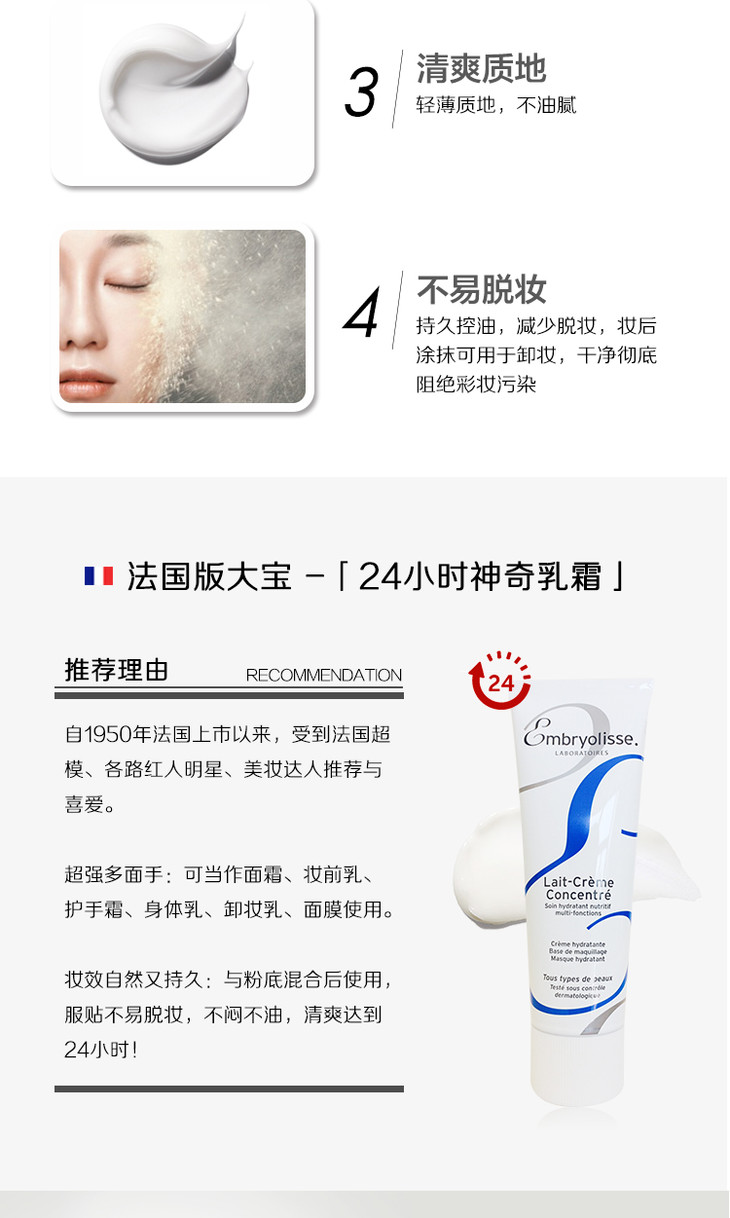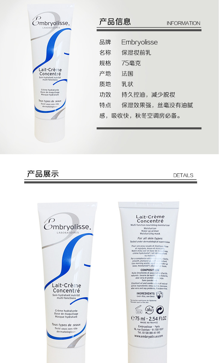 法国Embryolisse 保湿妆前乳 75ml 范冰冰推荐