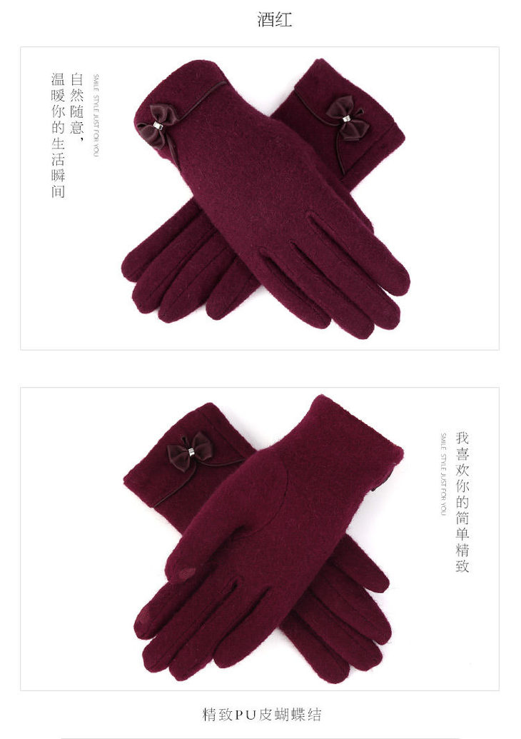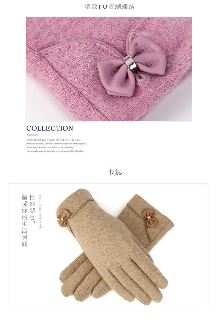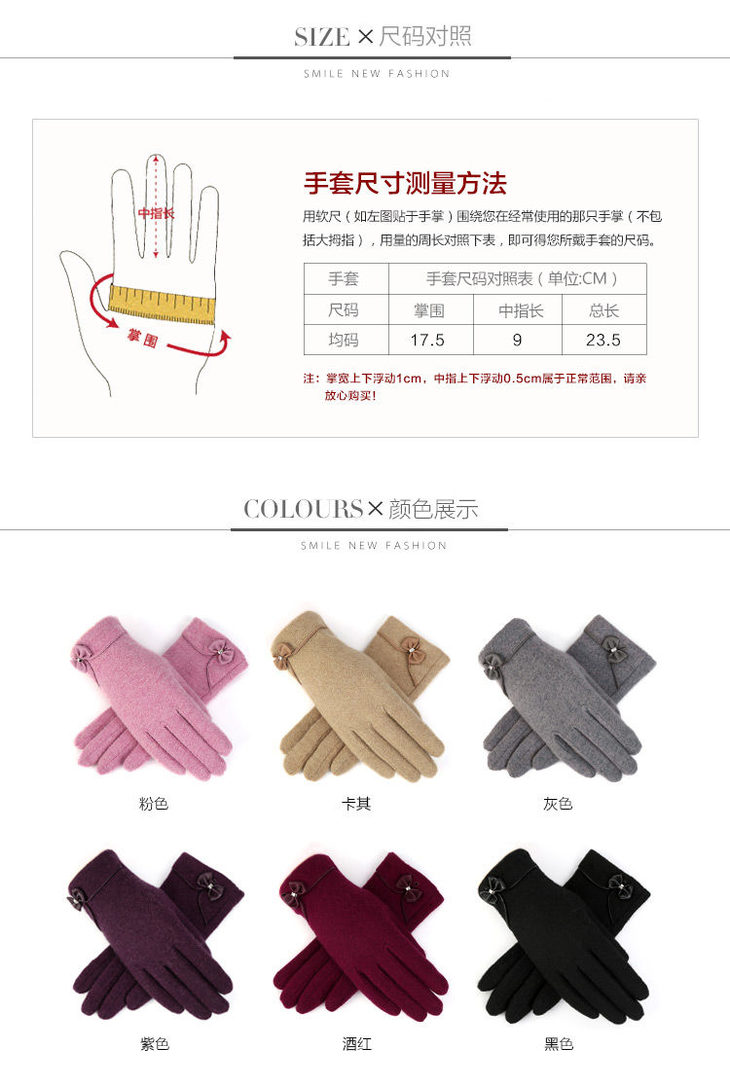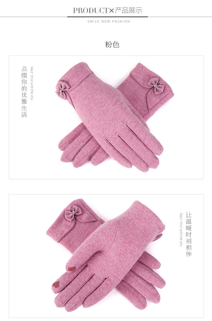 (11.11)TZW-新款蝴蝶结加绒加厚羊毛手套女