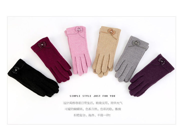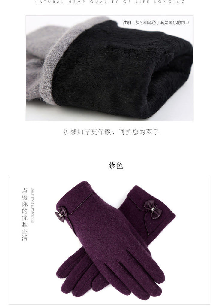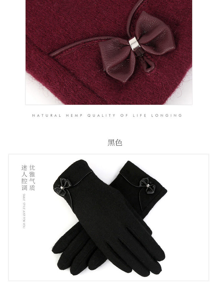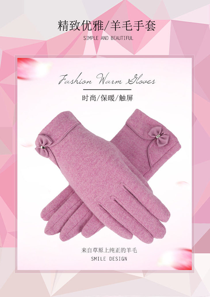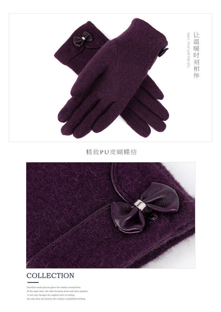 (11.11)TZW-新款蝴蝶结加绒加厚羊毛手套女