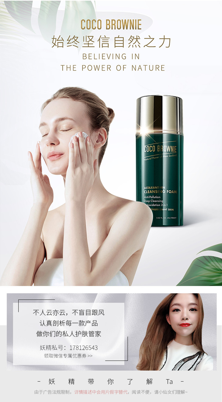【海外直邮】Coco Brownie 小绿瓶可莱尼抗初老虾青素氨基酸洁面乳洗面奶 100ml