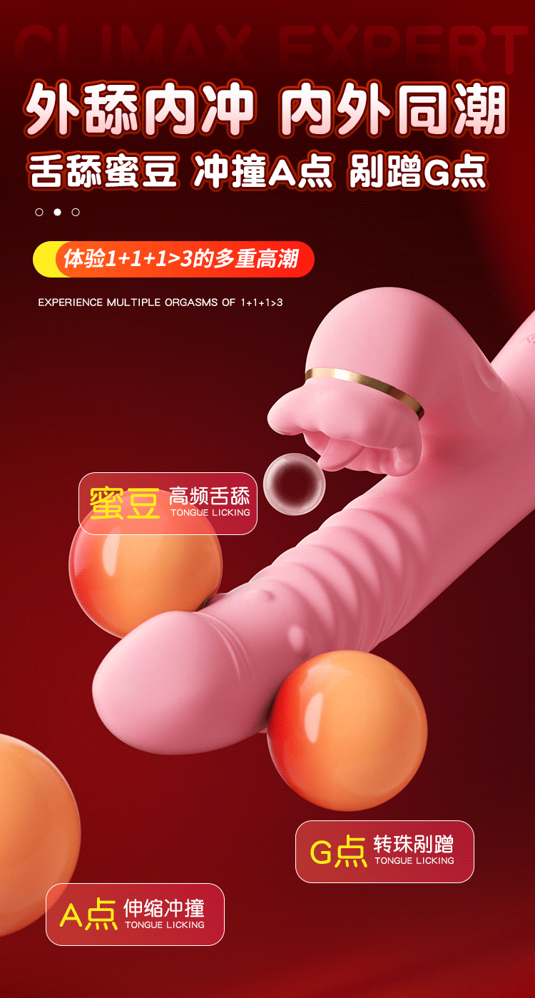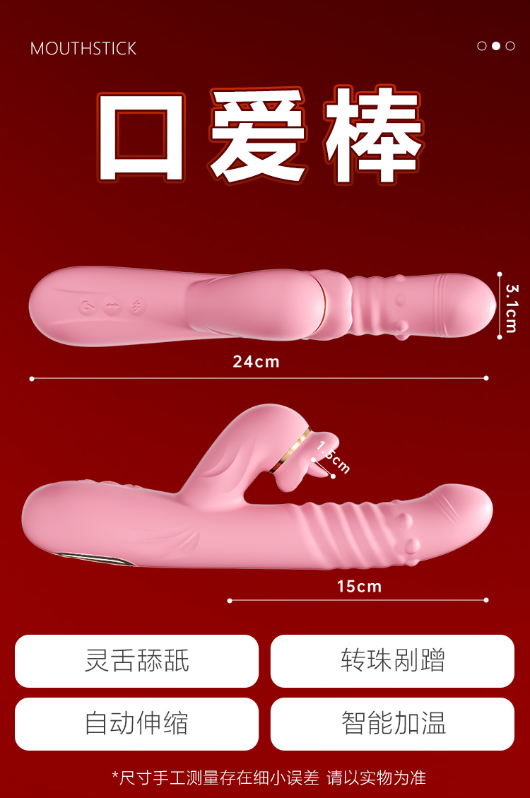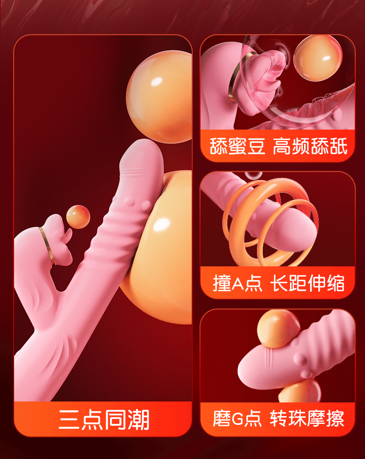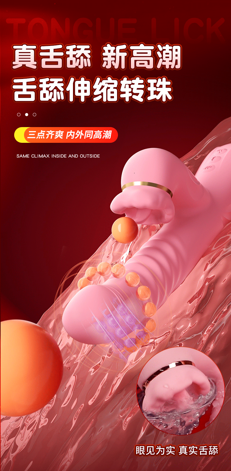 【转珠+伸缩+震动】谜姬口爱舌舔棒加温震动电动成人玩具