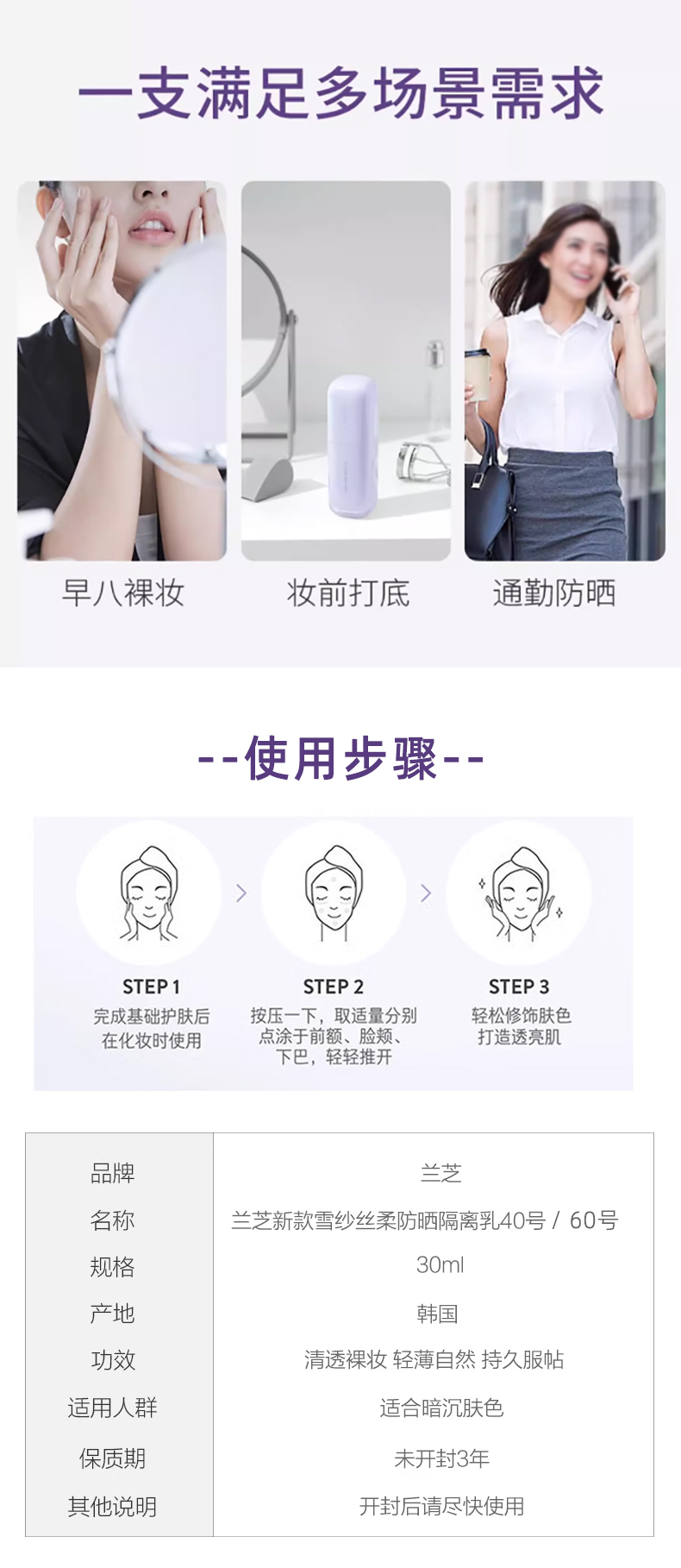 【新版】LΛNEIGE兰芝 雪纱丝柔防晒隔离乳30ml