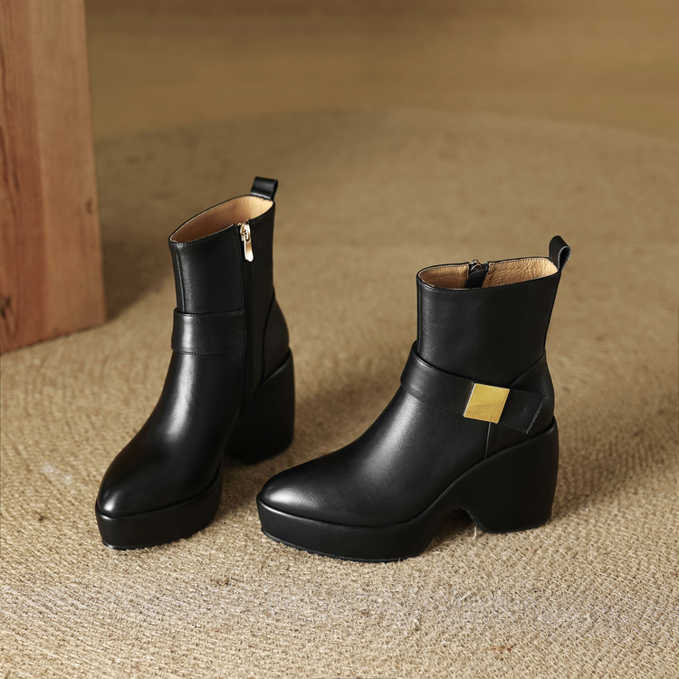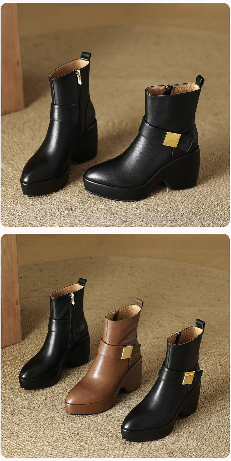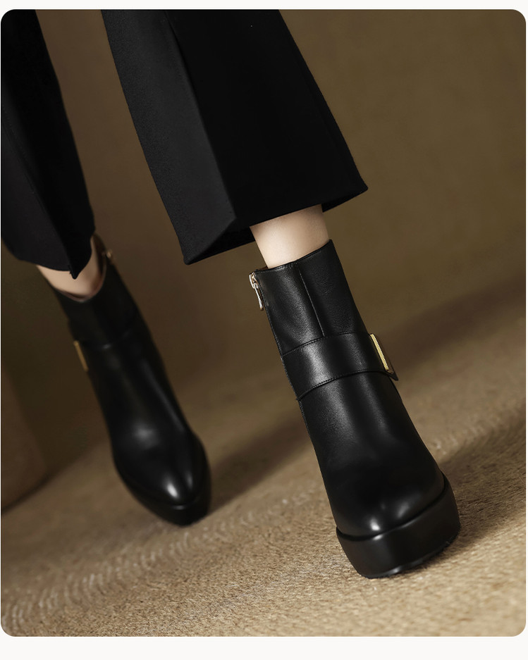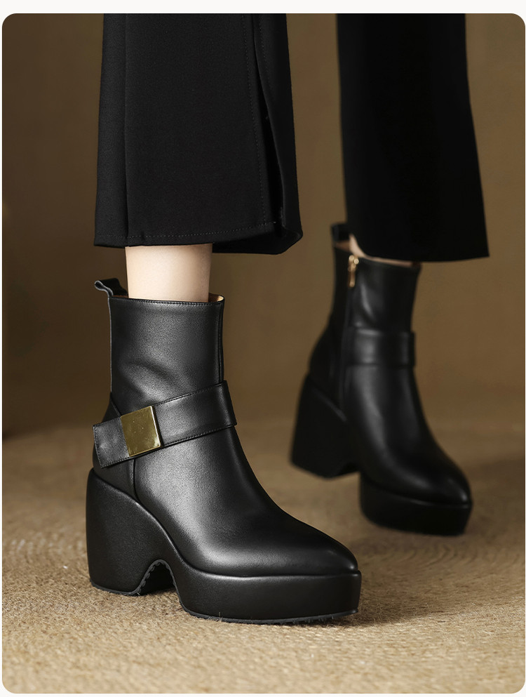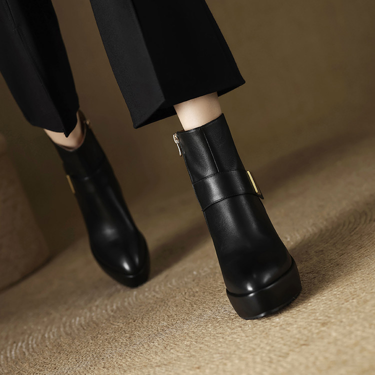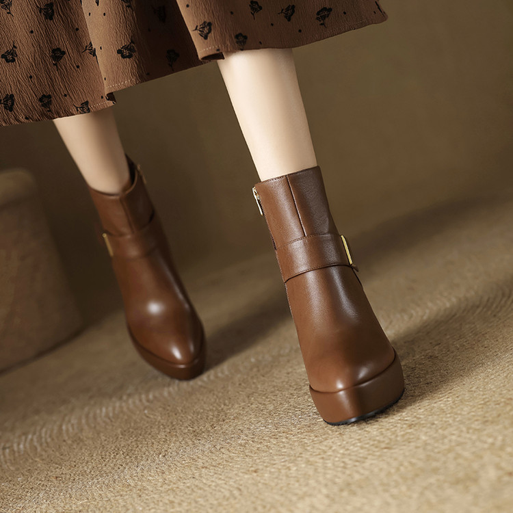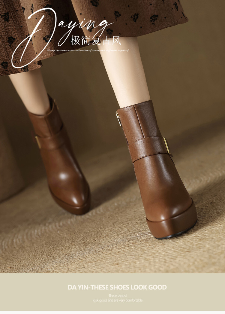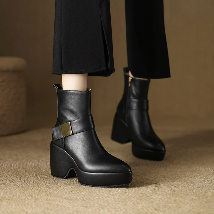 【预售5天】9cm英伦尖头厚底高跟马丁靴女秋冬新款真皮气质百搭粗跟短靴NWS1&9655