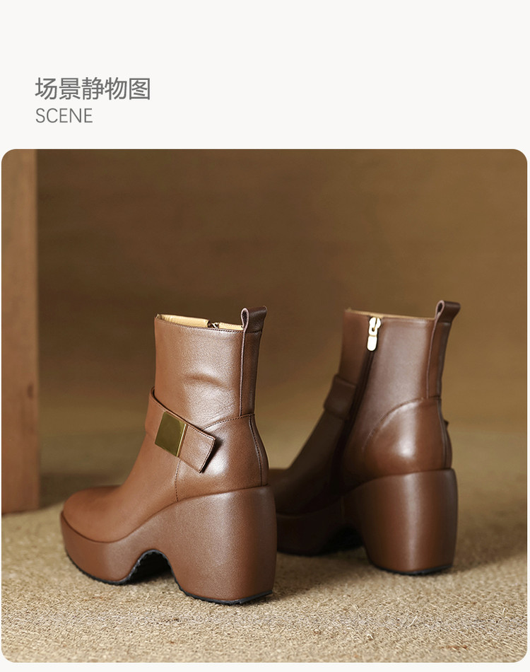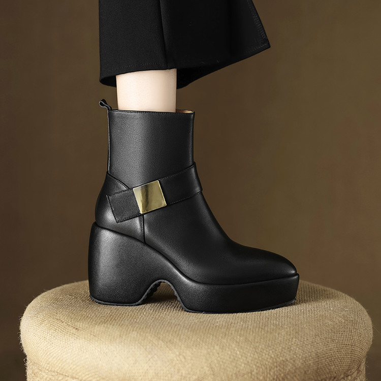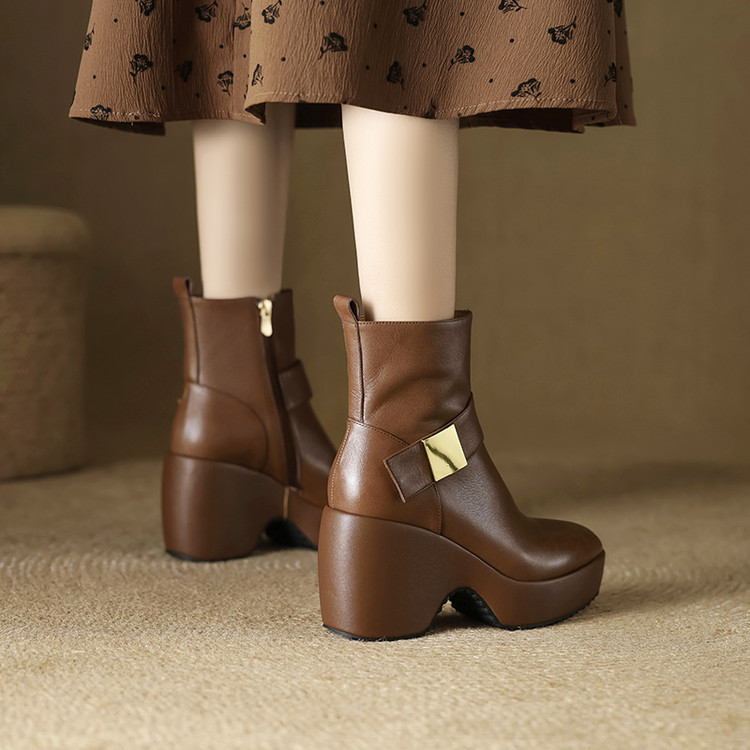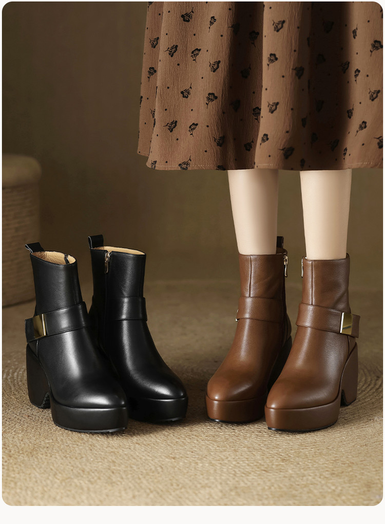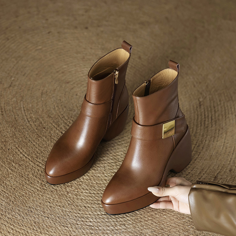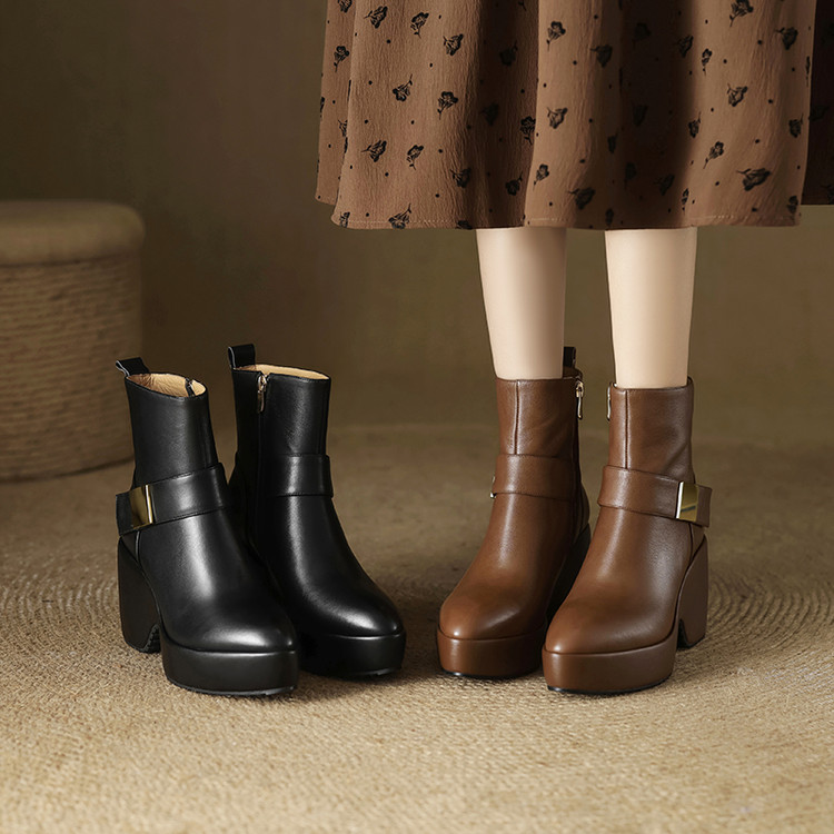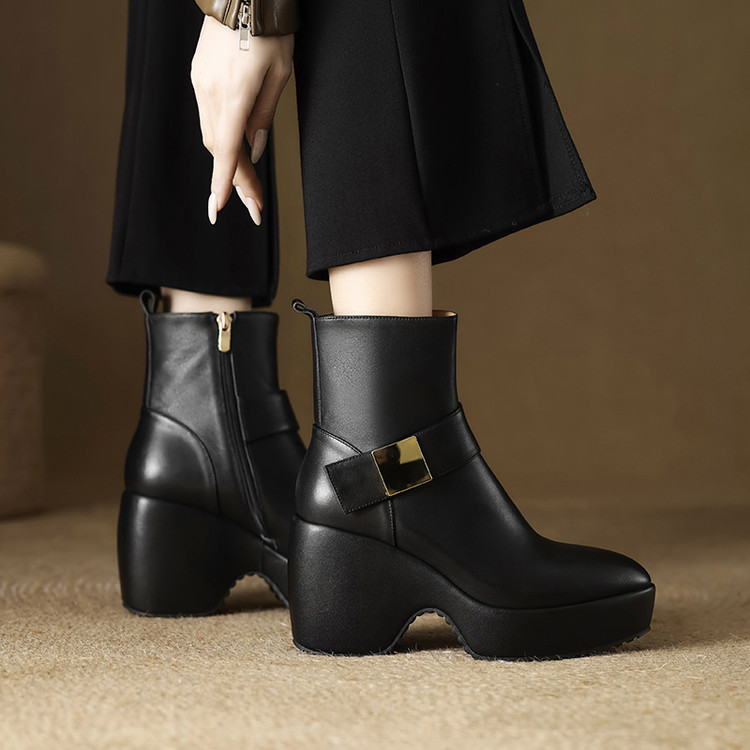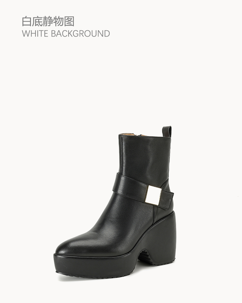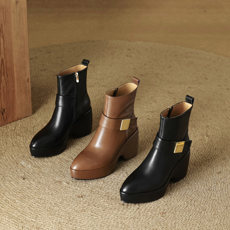 【预售5天】9cm英伦尖头厚底高跟马丁靴女秋冬新款真皮气质百搭粗跟短靴NWS1&9655