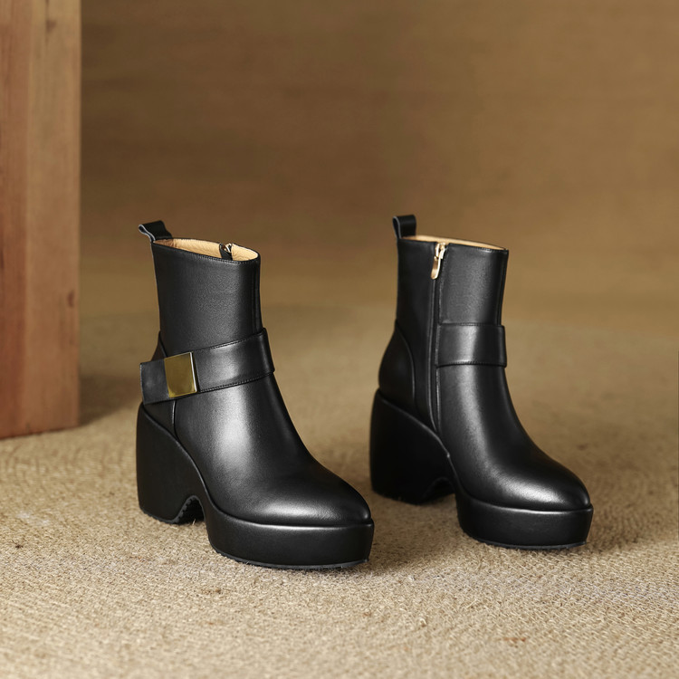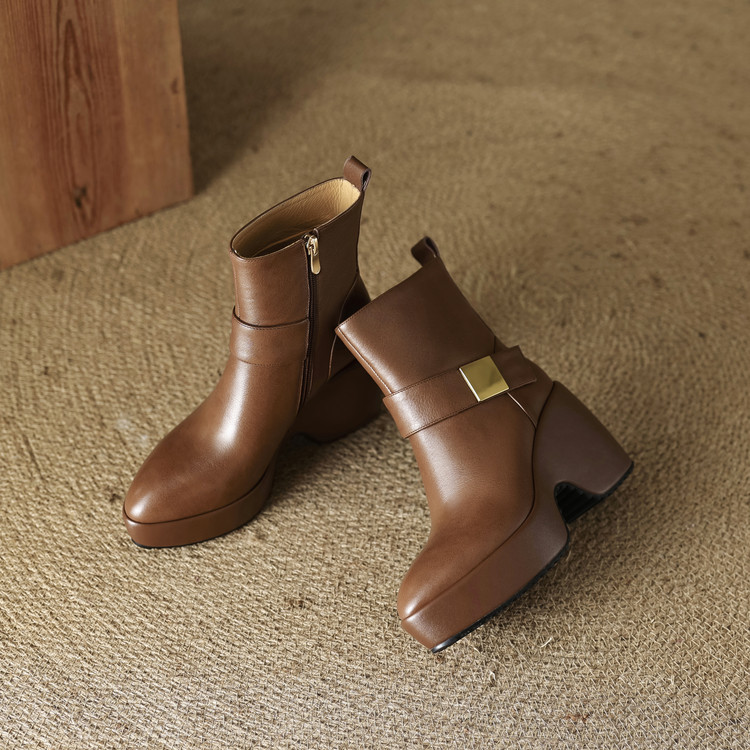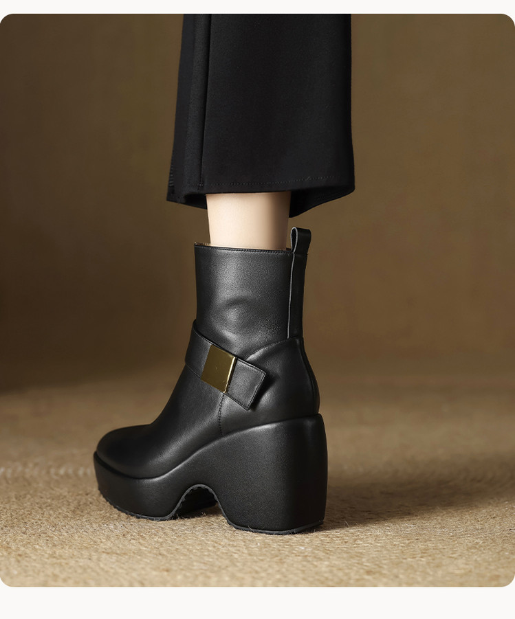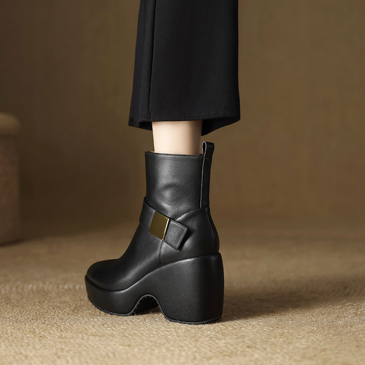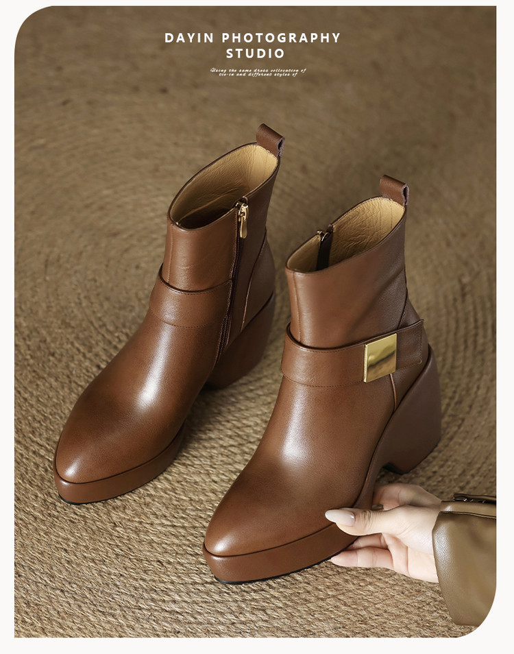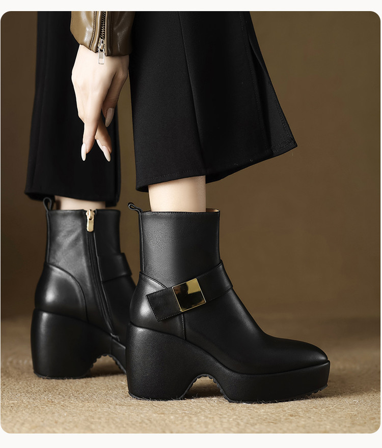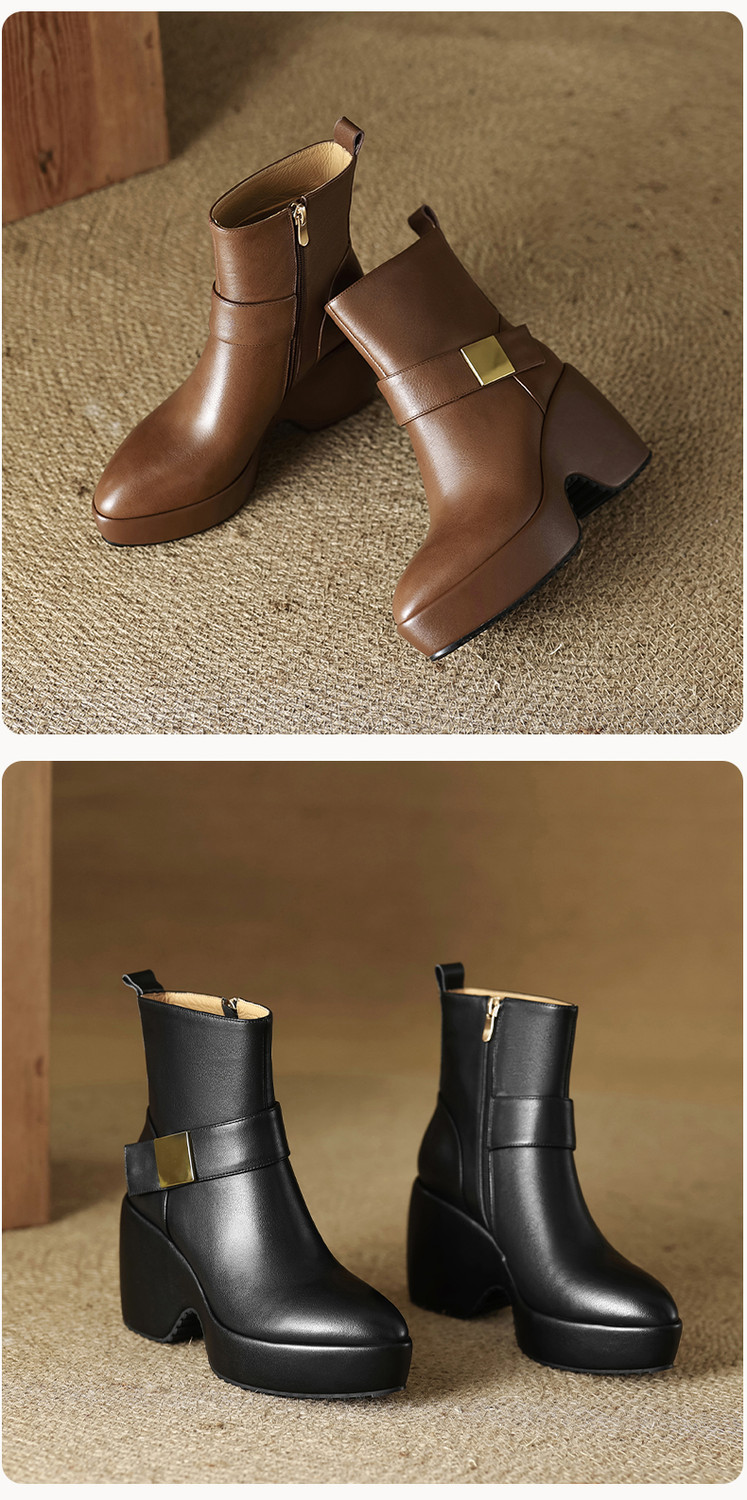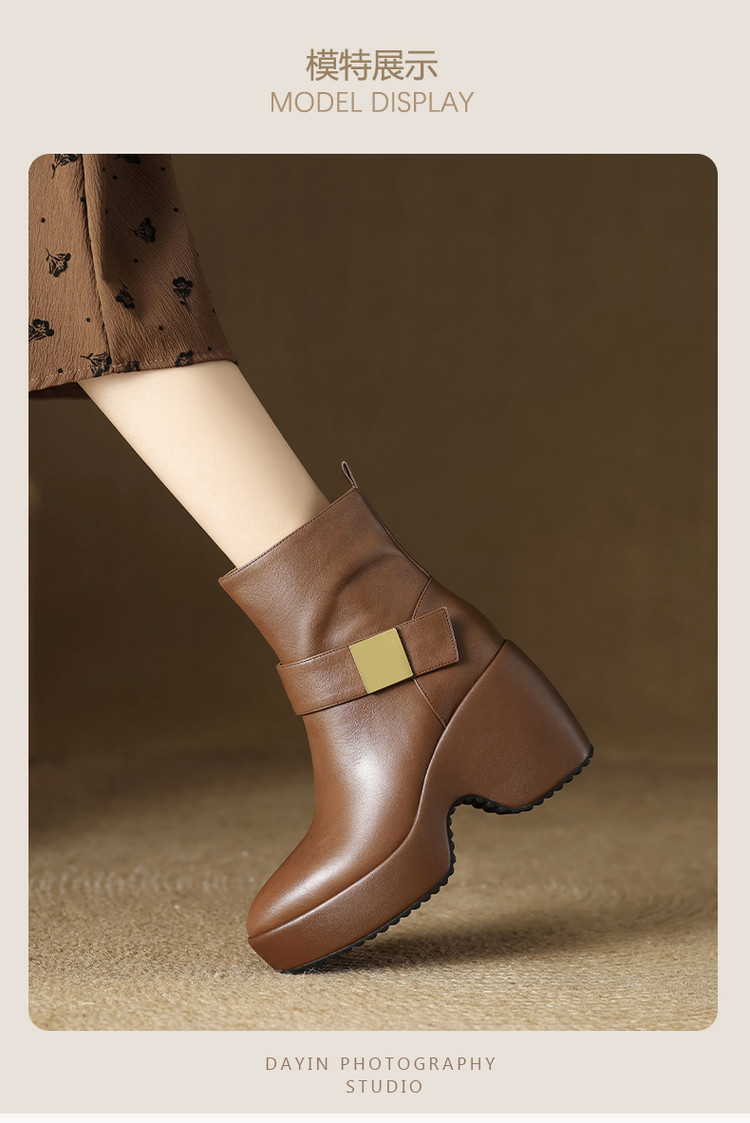 【预售5天】9cm英伦尖头厚底高跟马丁靴女秋冬新款真皮气质百搭粗跟短靴NWS1&9655