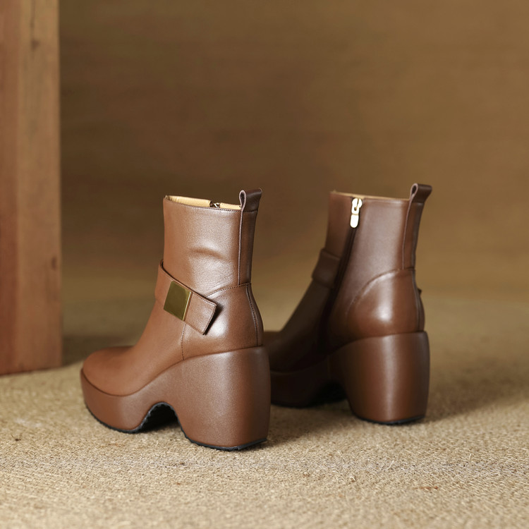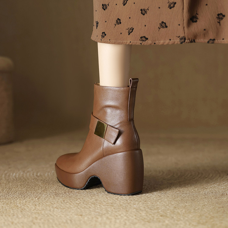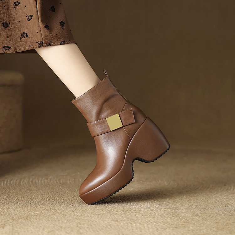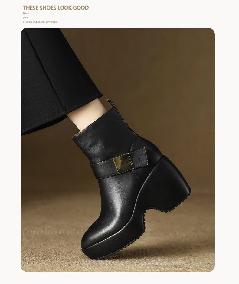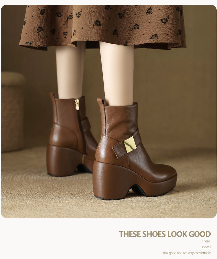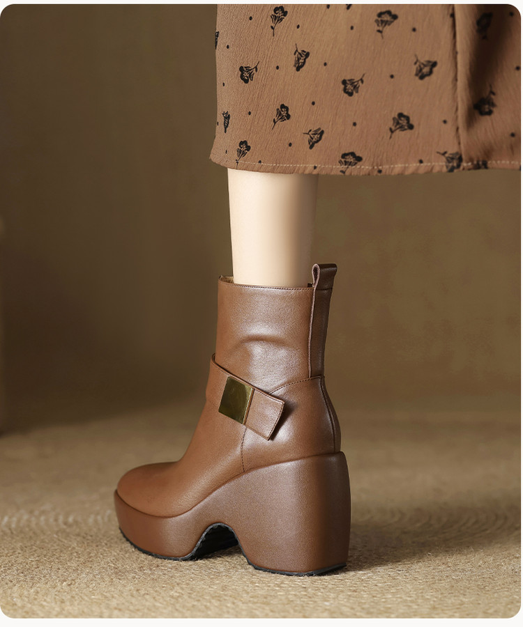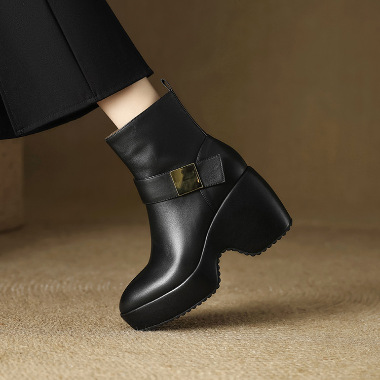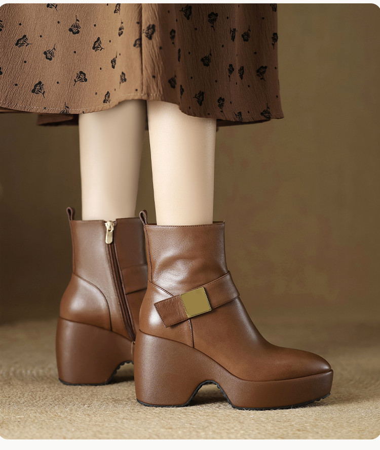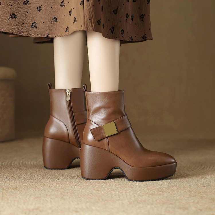 【预售5天】9cm英伦尖头厚底高跟马丁靴女秋冬新款真皮气质百搭粗跟短靴NWS1&9655