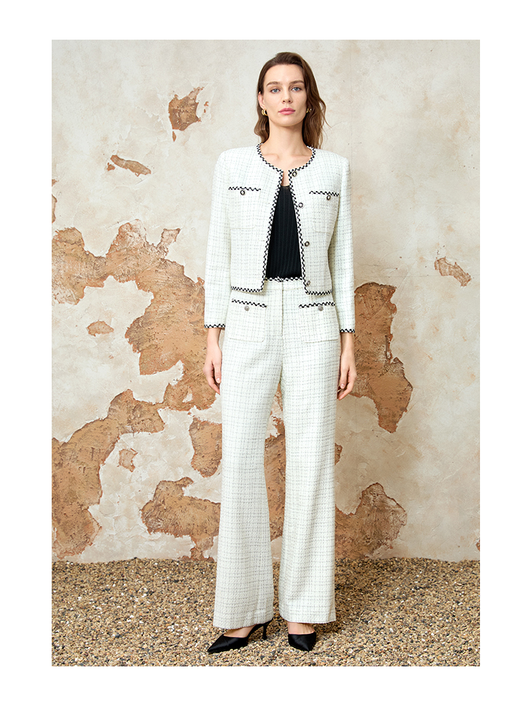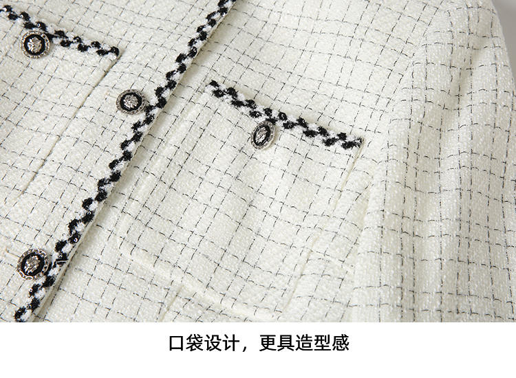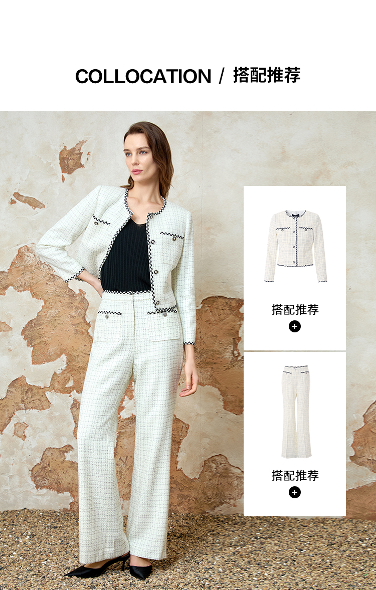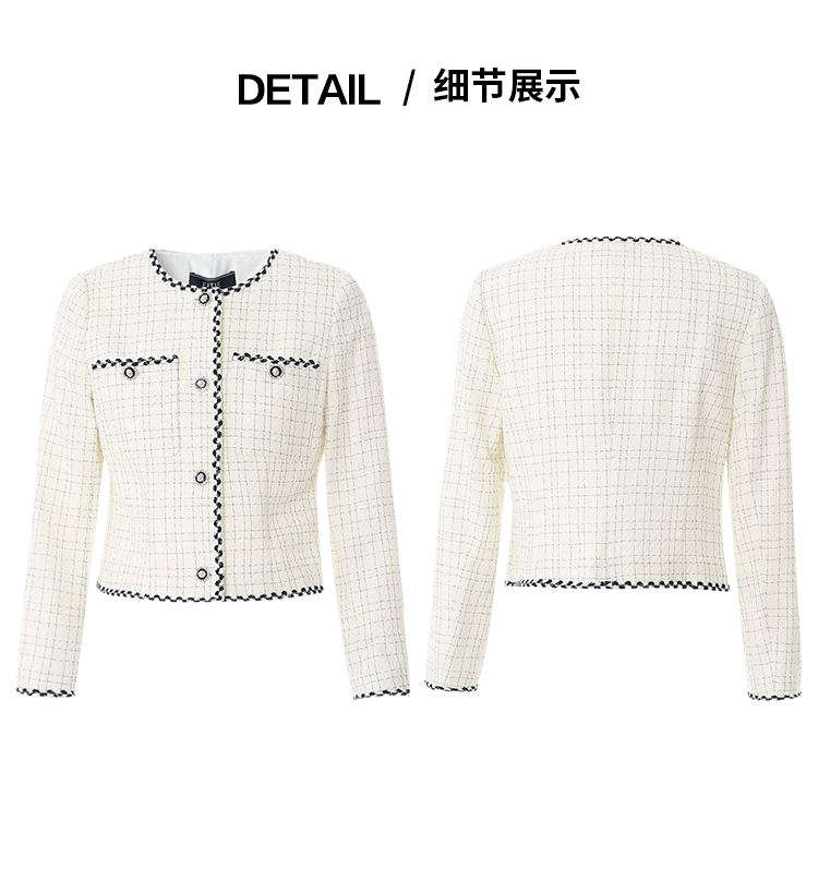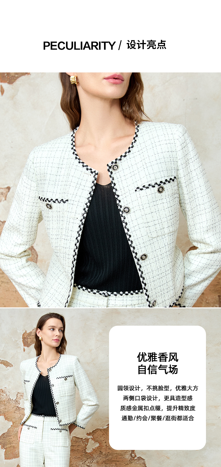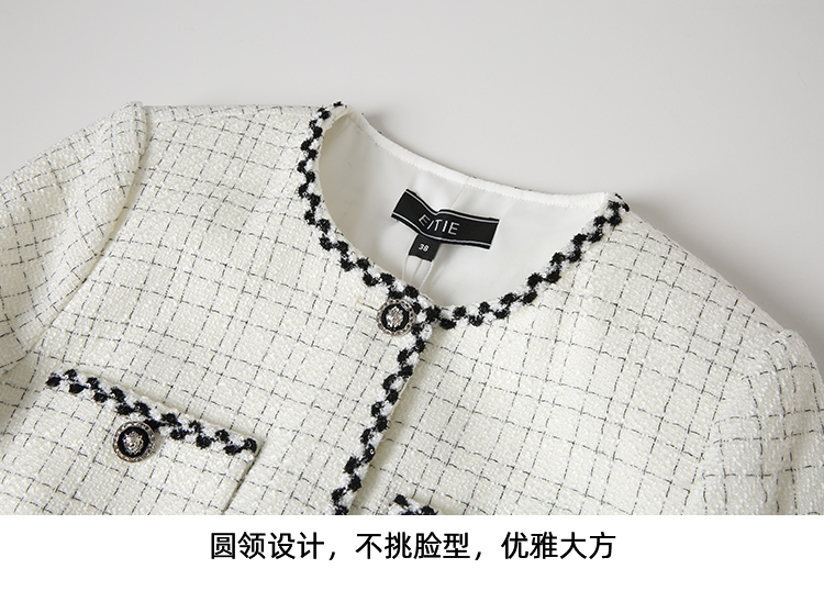 EITIE爱特爱气质圆领小香风撞色百搭显瘦通勤短外套2025春季新款8103801