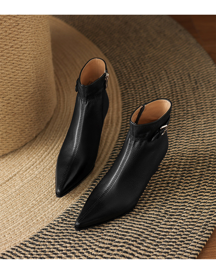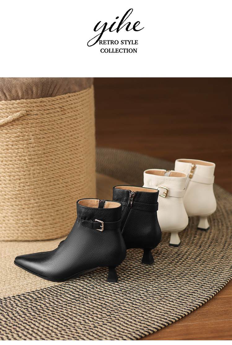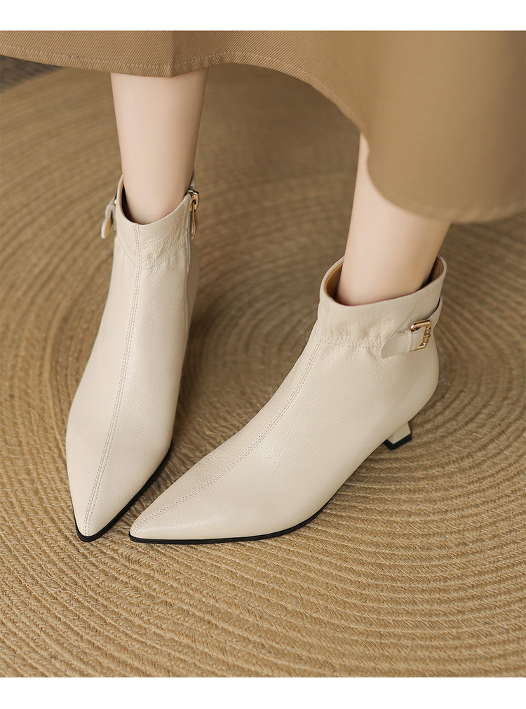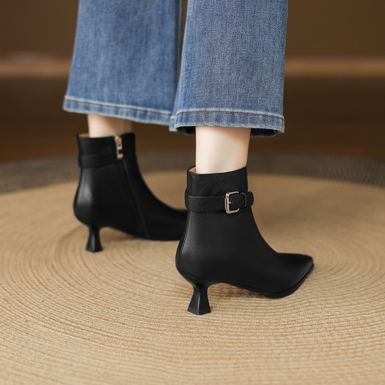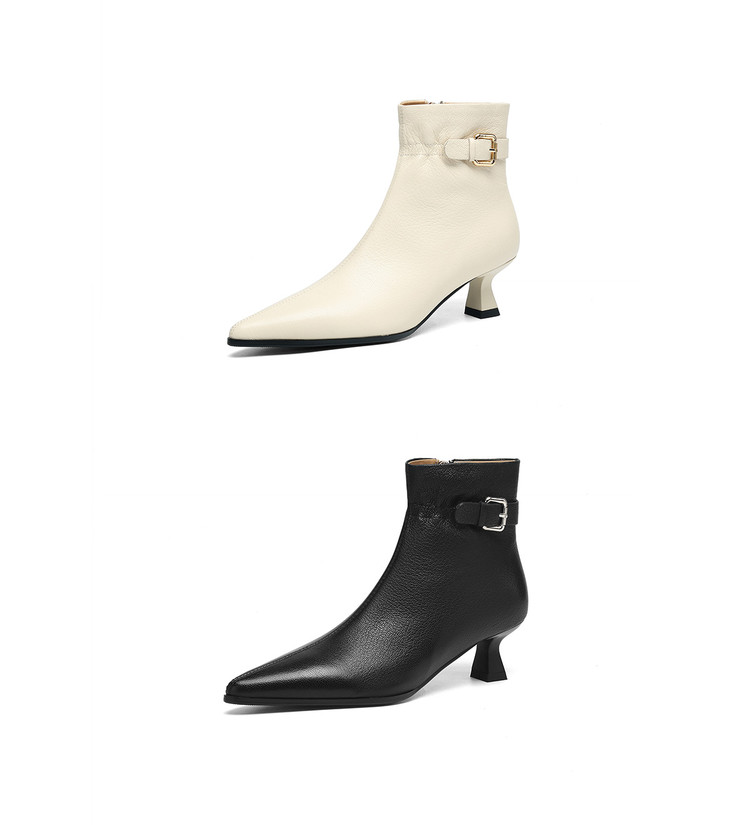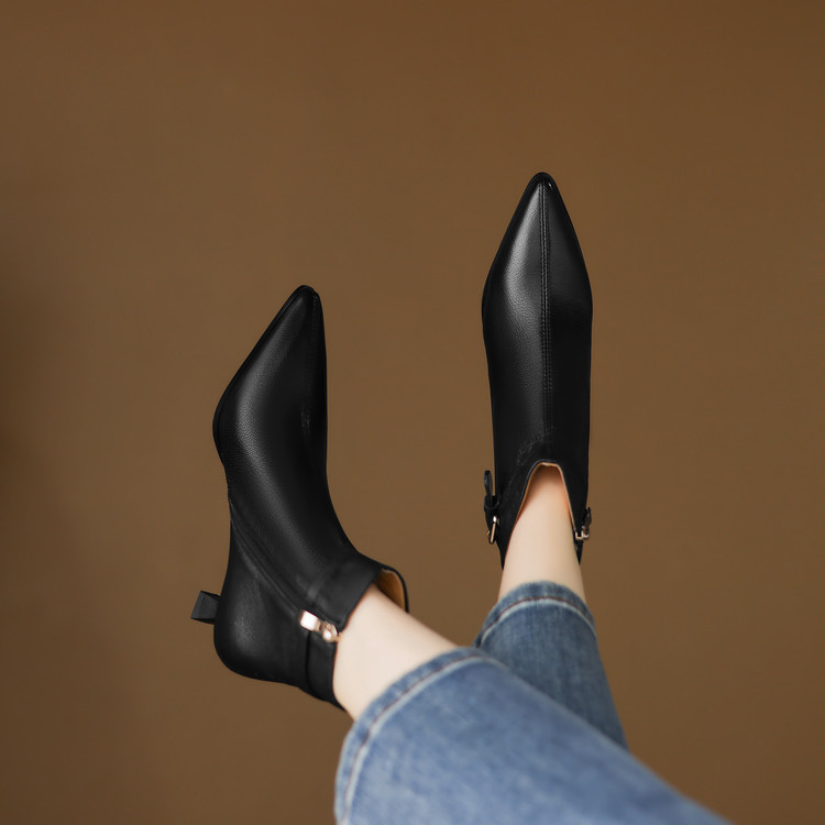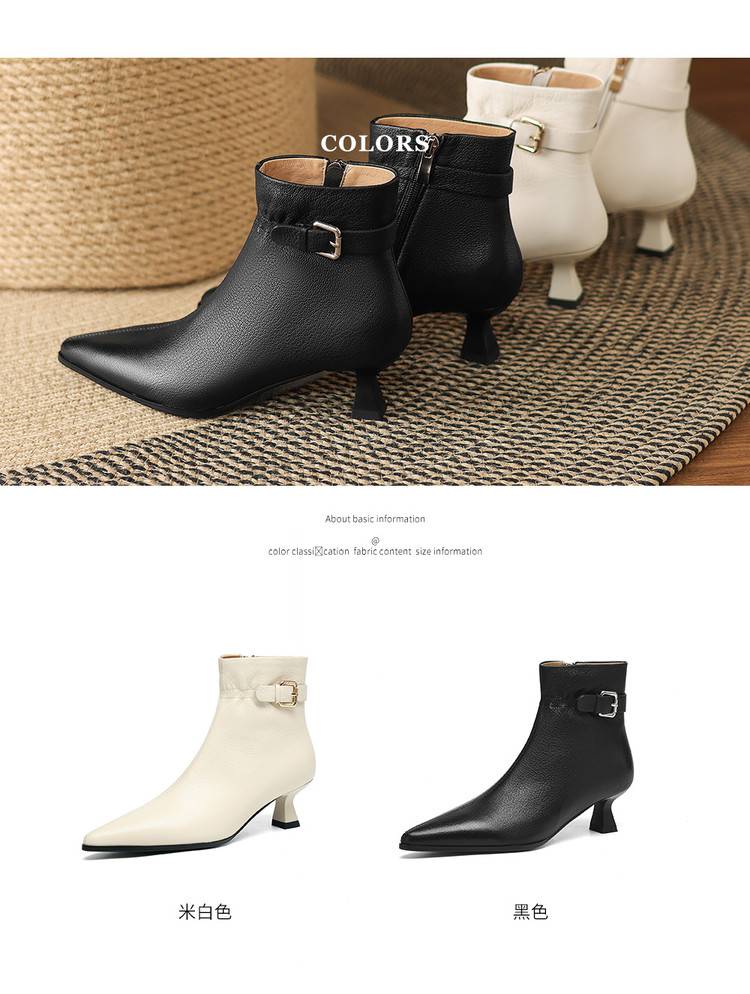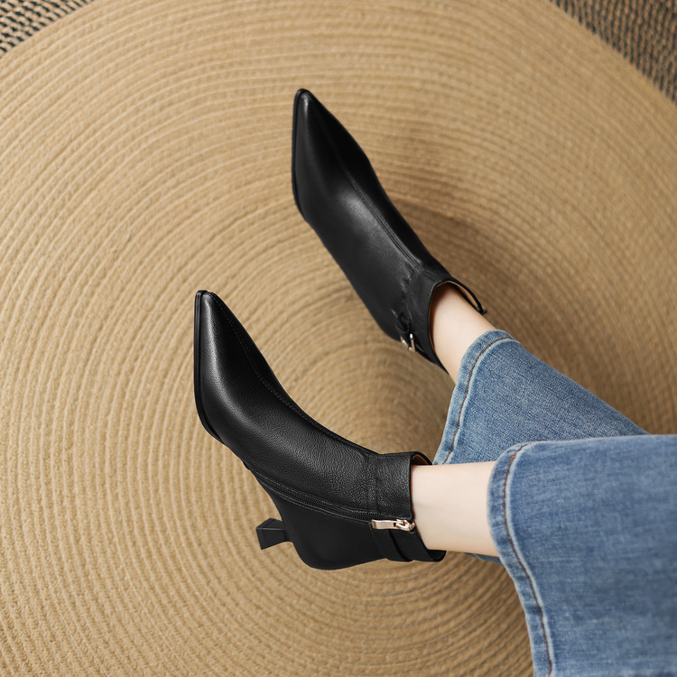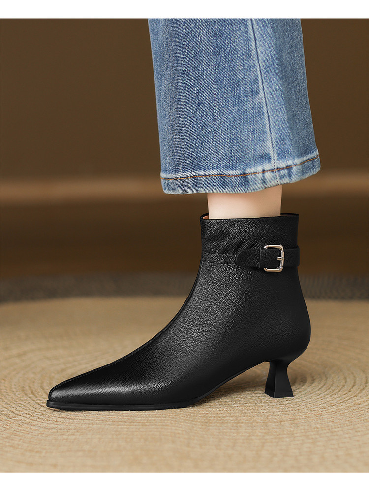 【预售5天】法式洋气小短靴女秋冬季加绒细跟高跟鞋尖头软底不累脚羊皮及踝靴DS&675