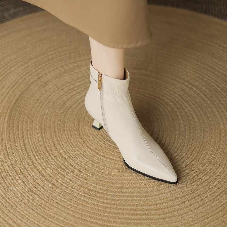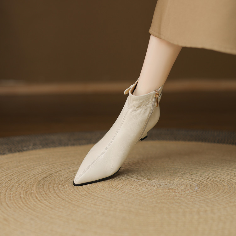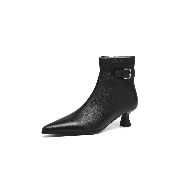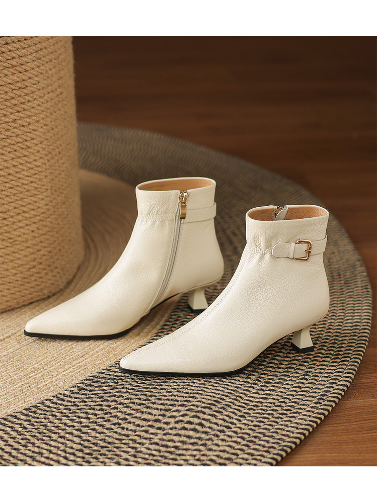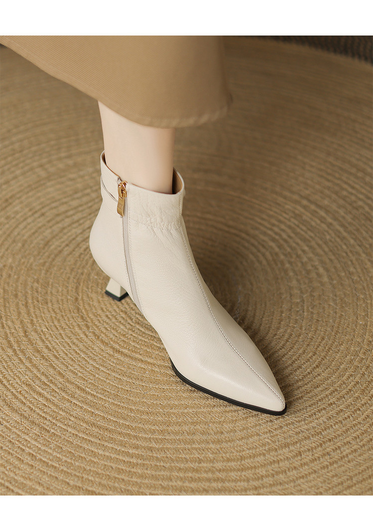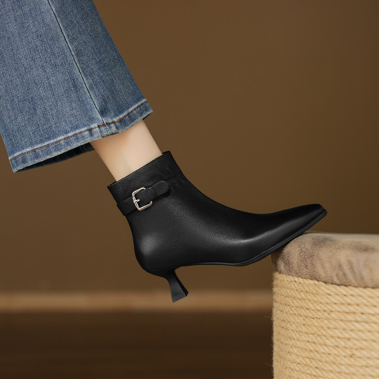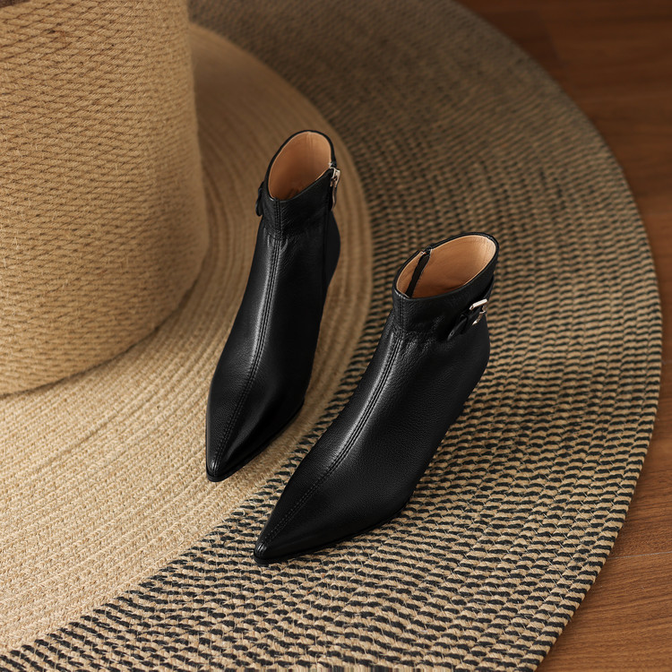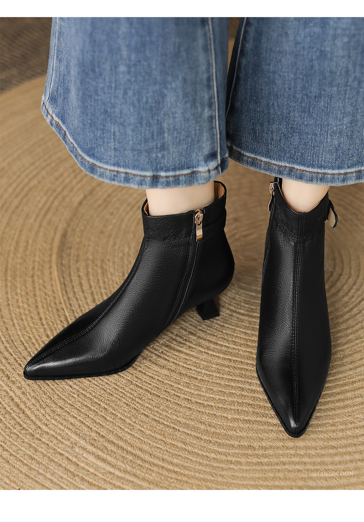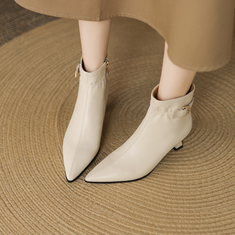 【预售5天】法式洋气小短靴女秋冬季加绒细跟高跟鞋尖头软底不累脚羊皮及踝靴DS&675