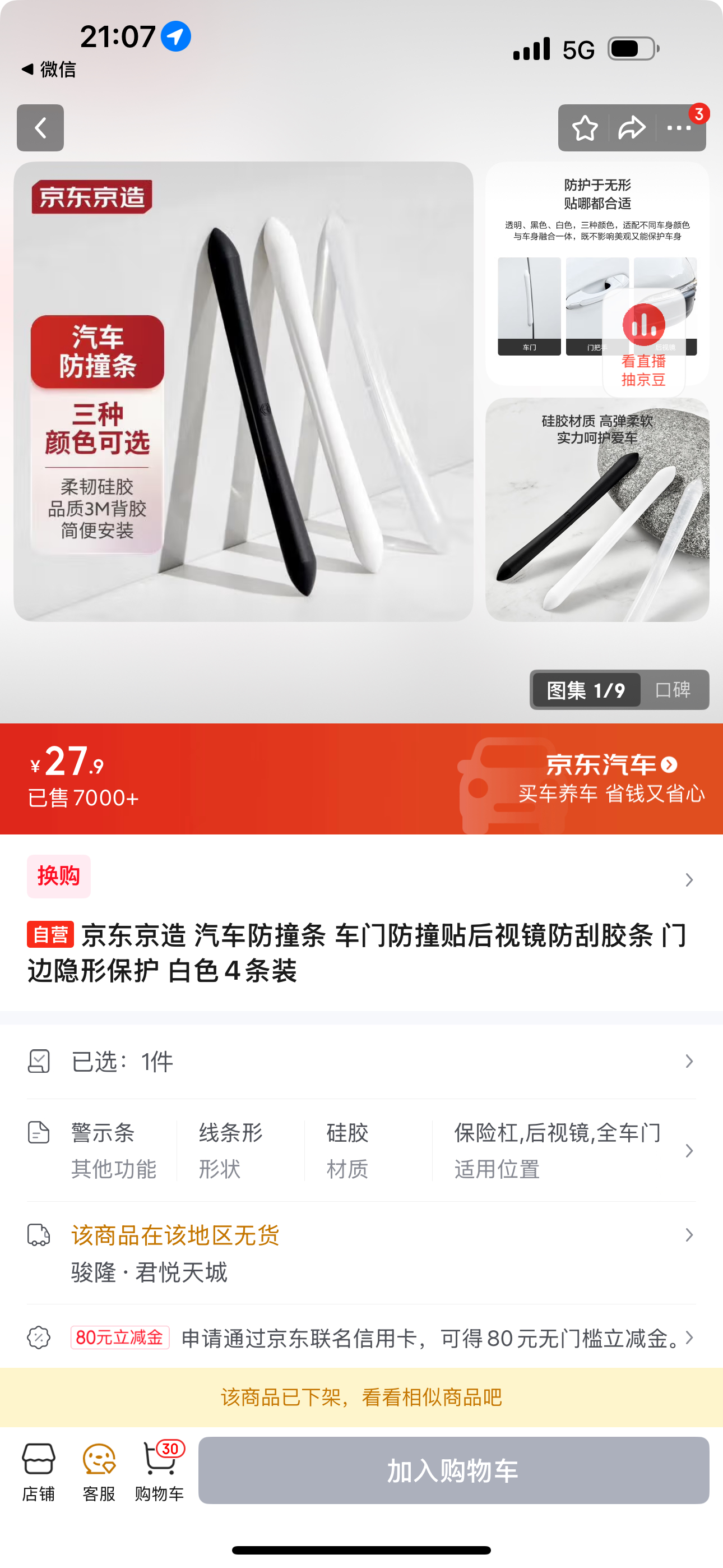 京造 汽车防撞条 车门防撞贴后视镜防刮胶条 门边隐形保护