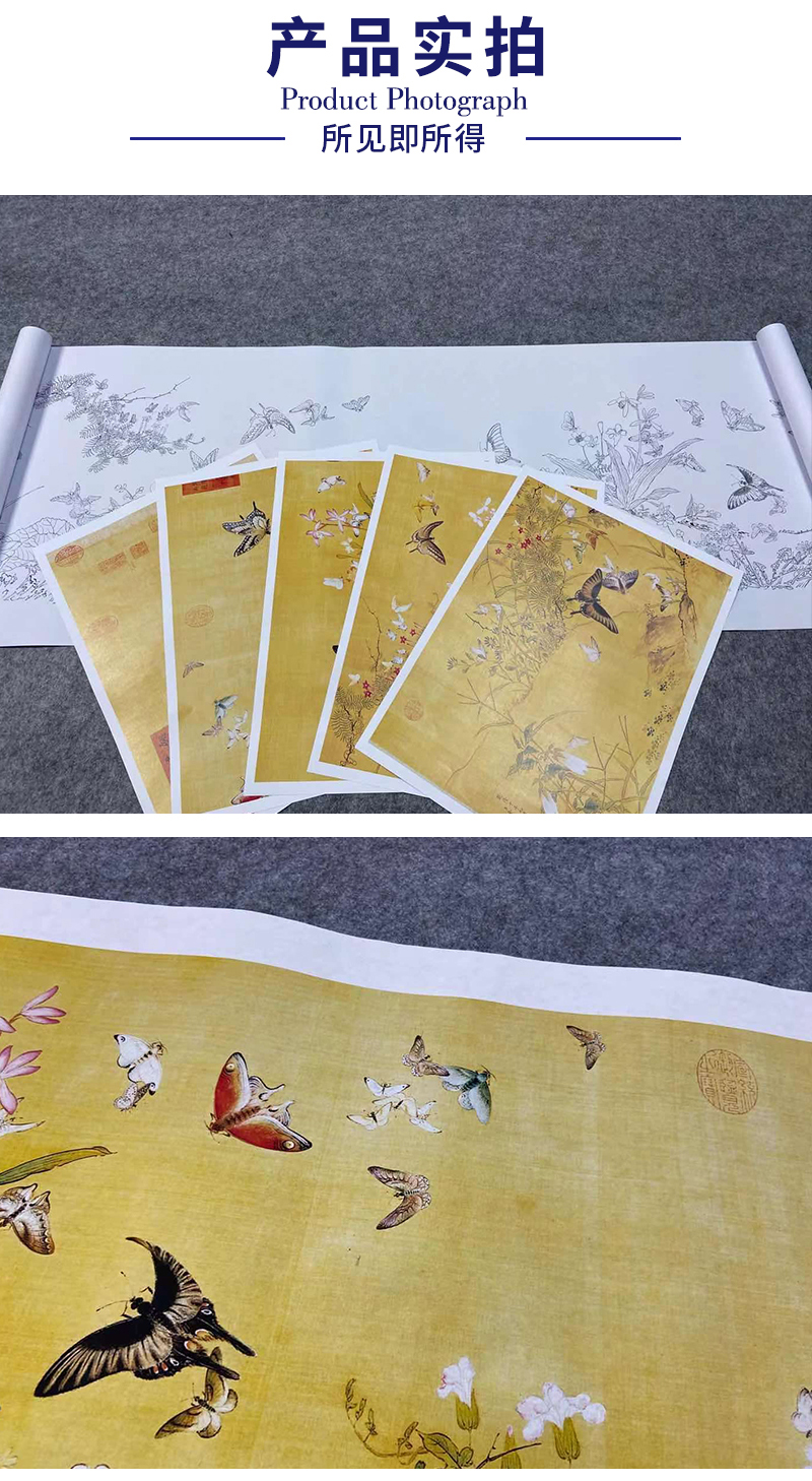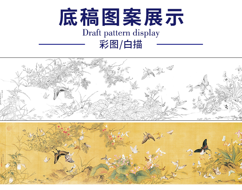 【长卷】工笔花鸟画白描底稿国画长卷郎世宁余省《百蝶图》多种白描尺寸可选G021