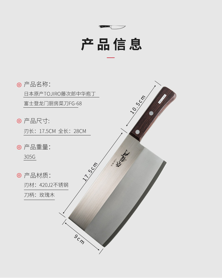 日本原产 | Tojiro藤次郎不锈钢,富士登龙门菜刀厨刀 | 切片刀 | FG-68 | 源产喜递