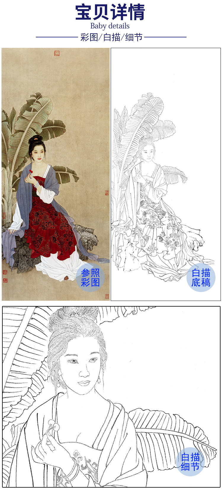 王美芳竖幅工笔传统仕女人物白描底稿《解语花之三》-多种白描尺寸可选-B177